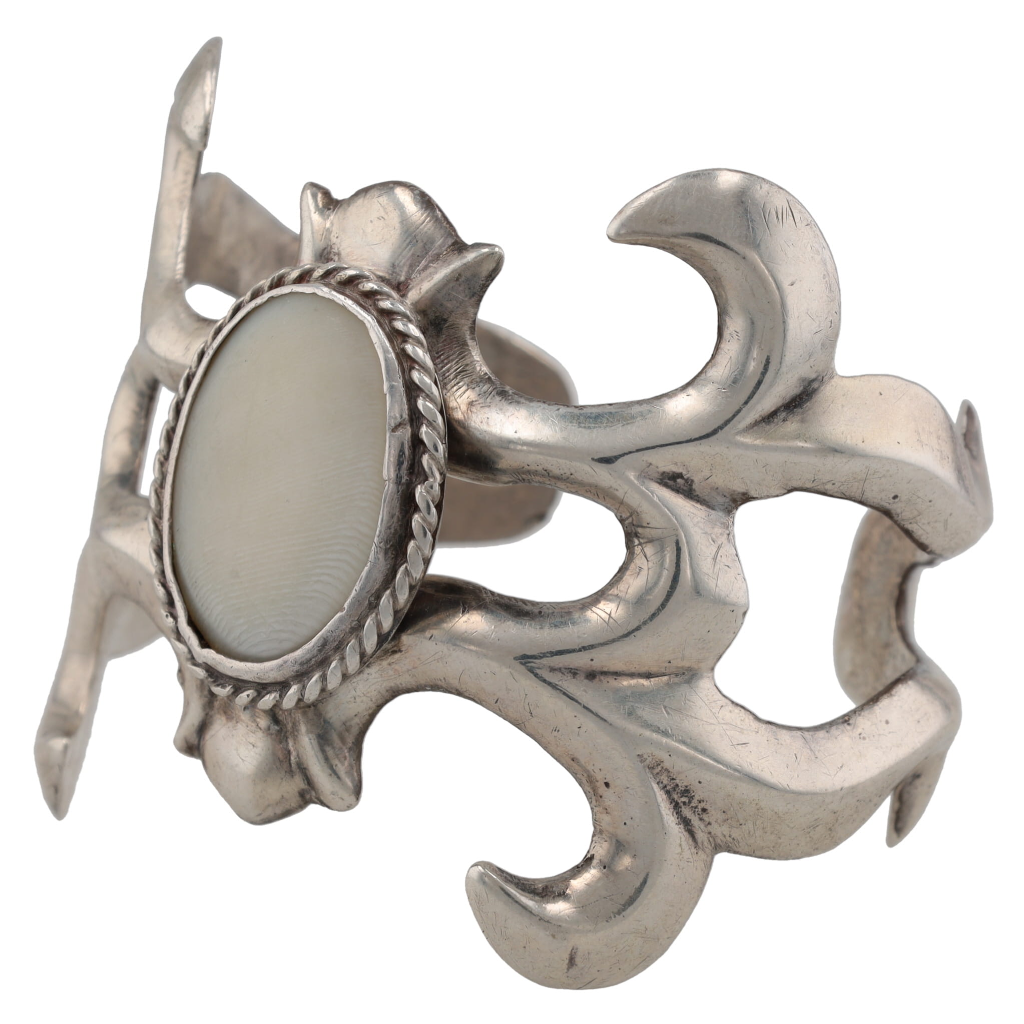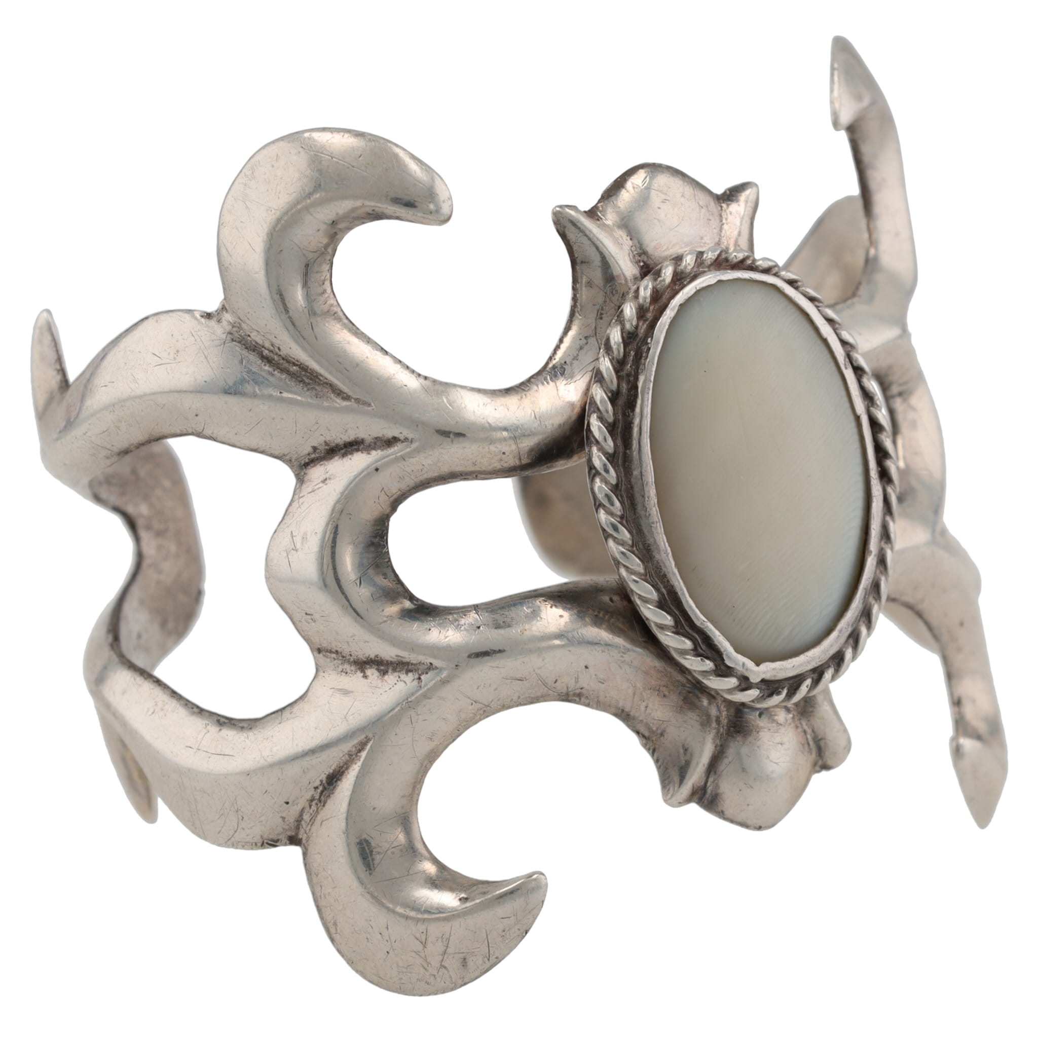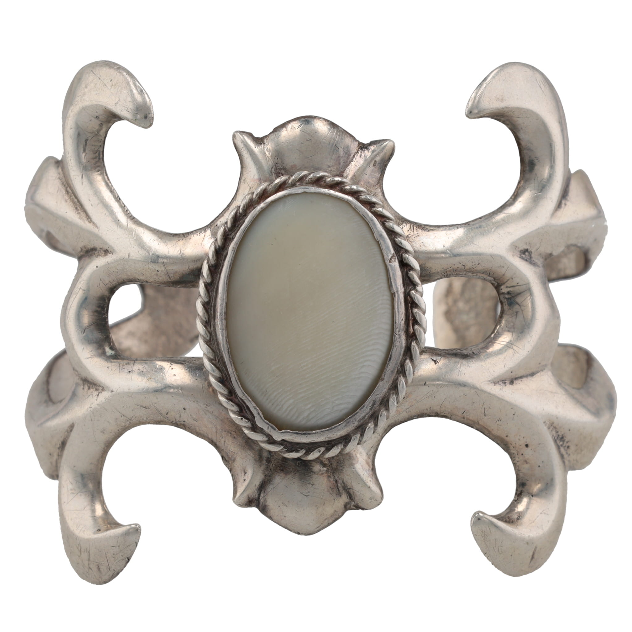Vintage Navajo Mother of Pearl Sandcast Sterling Cuff Bracelet 64g