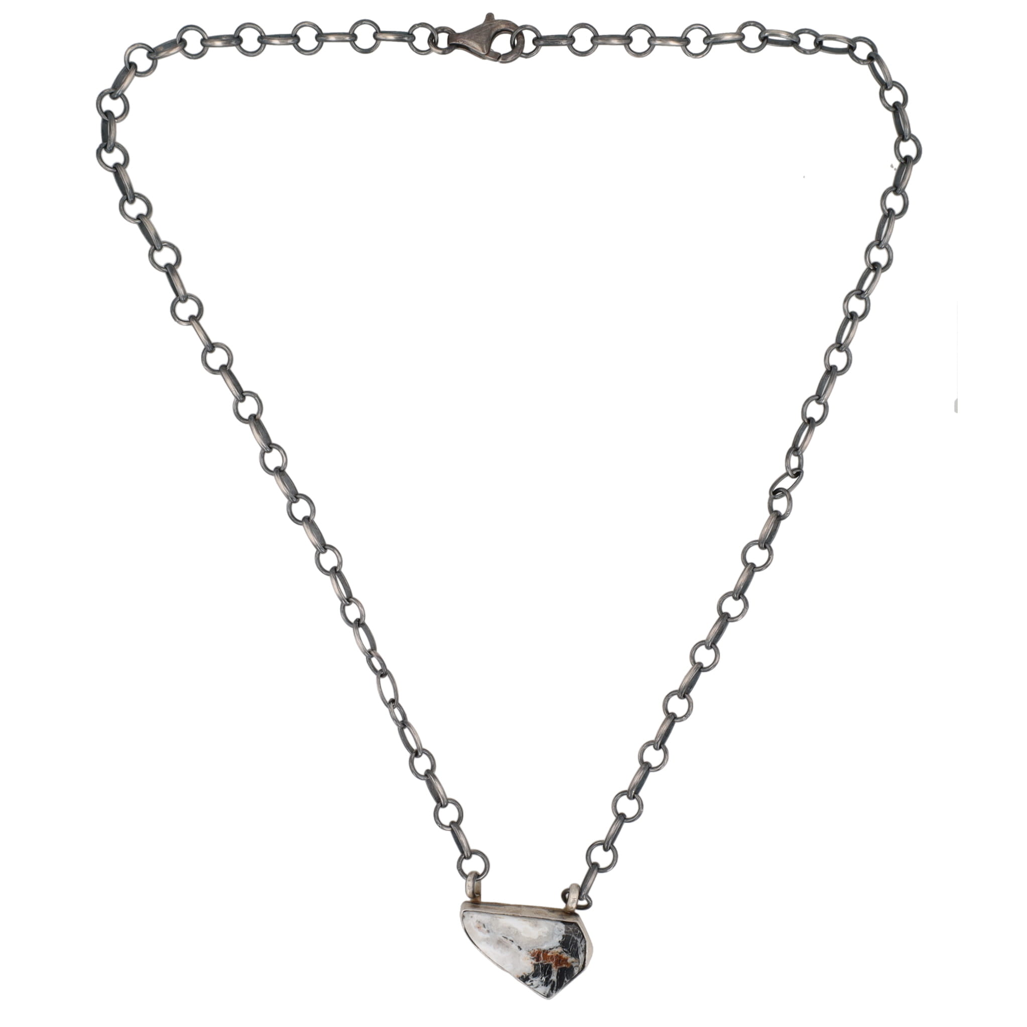 Eli Skeets Navajo White Buffalo Turquoise Sterling Necklace 13g