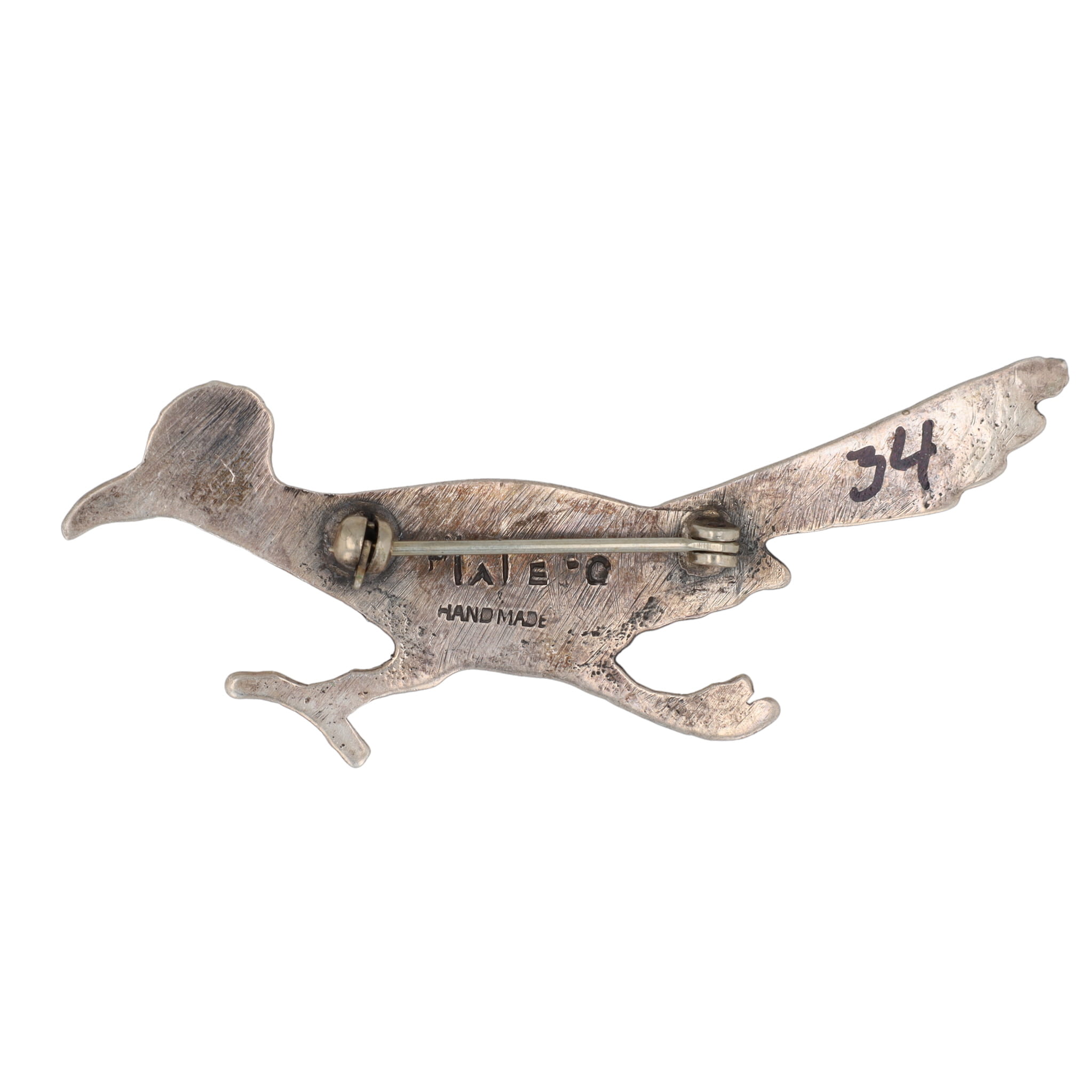 Ramone Platero Navajo Turquoise Sterling Roadrunner Brooch 9.5g