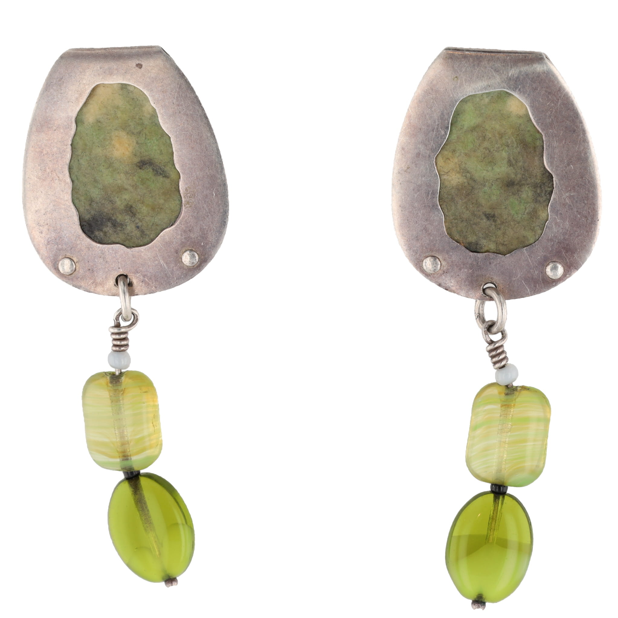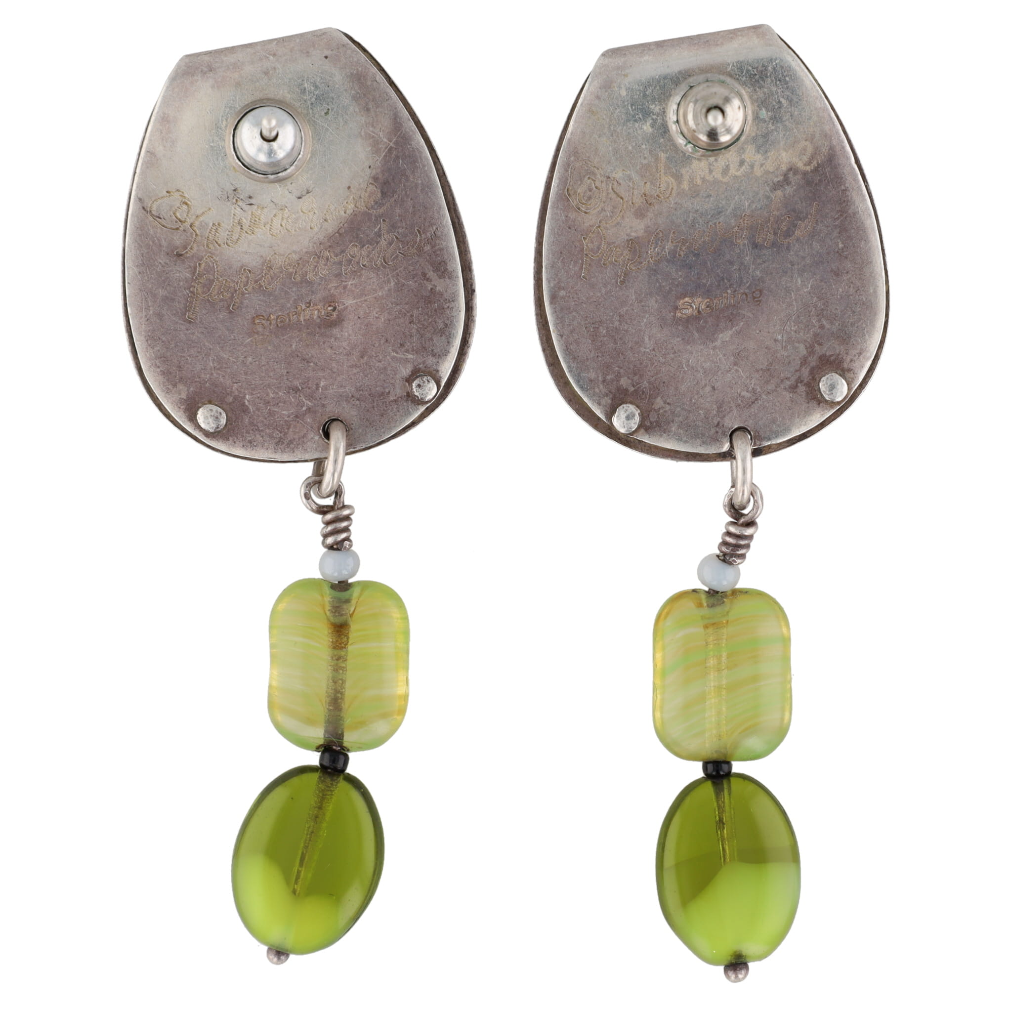 Submarine Paperworks Sterling Green Glass Dangle Earrings 8.5g