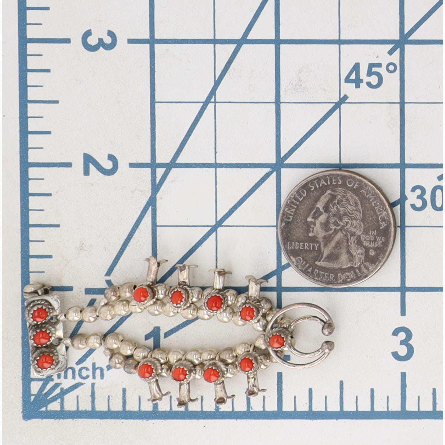 Vintage Navajo Snake Eye Coral Sterling Squash Blossom Brooch 9g