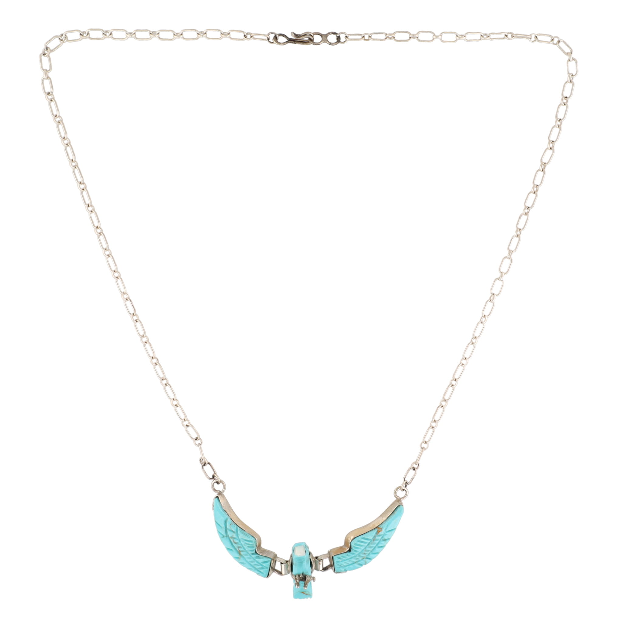Signed AB Sterling Navajo Carved Turquoise Eagle Necklace