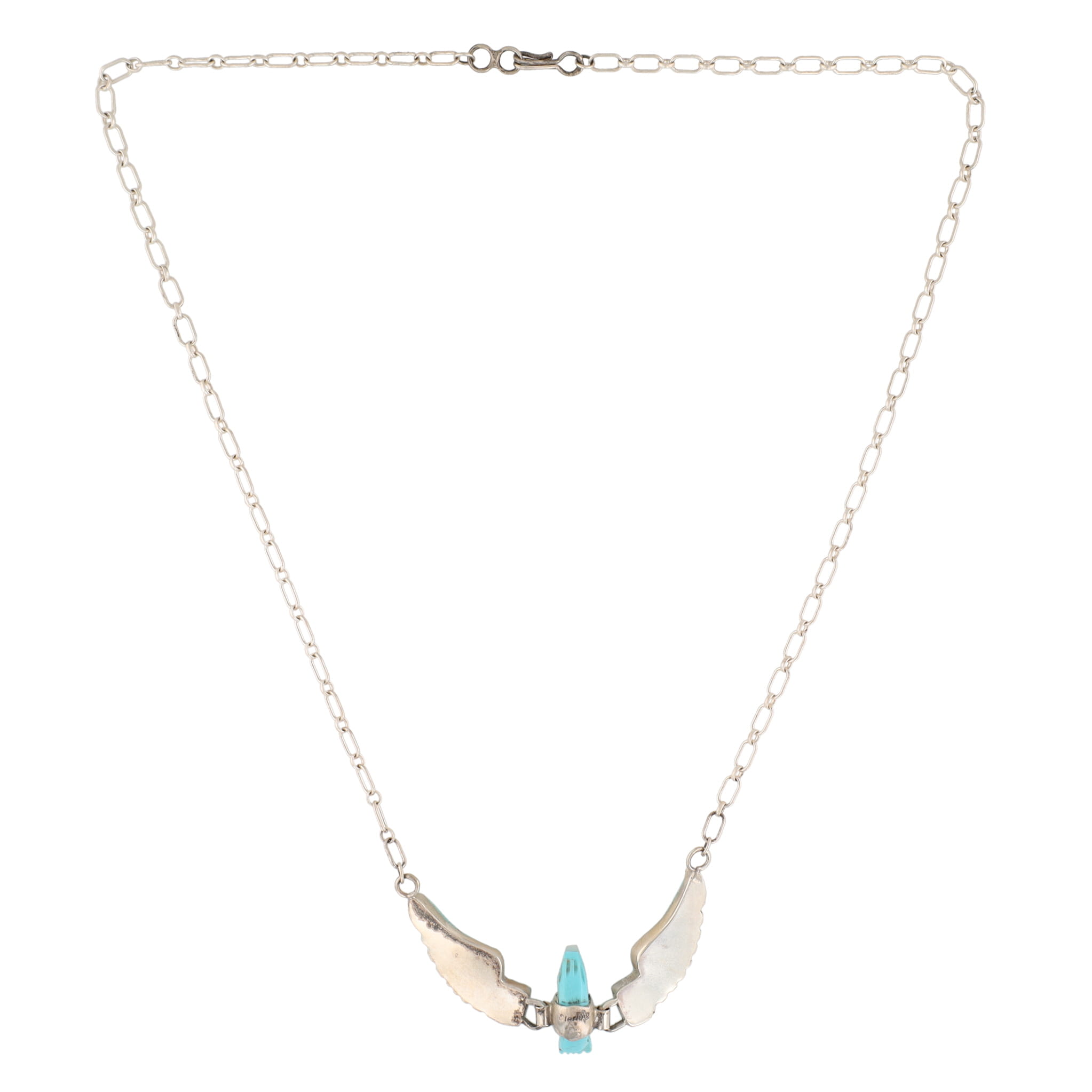 Signed AB Navajo Carved Turquoise Sterling Eagle Necklace 12g