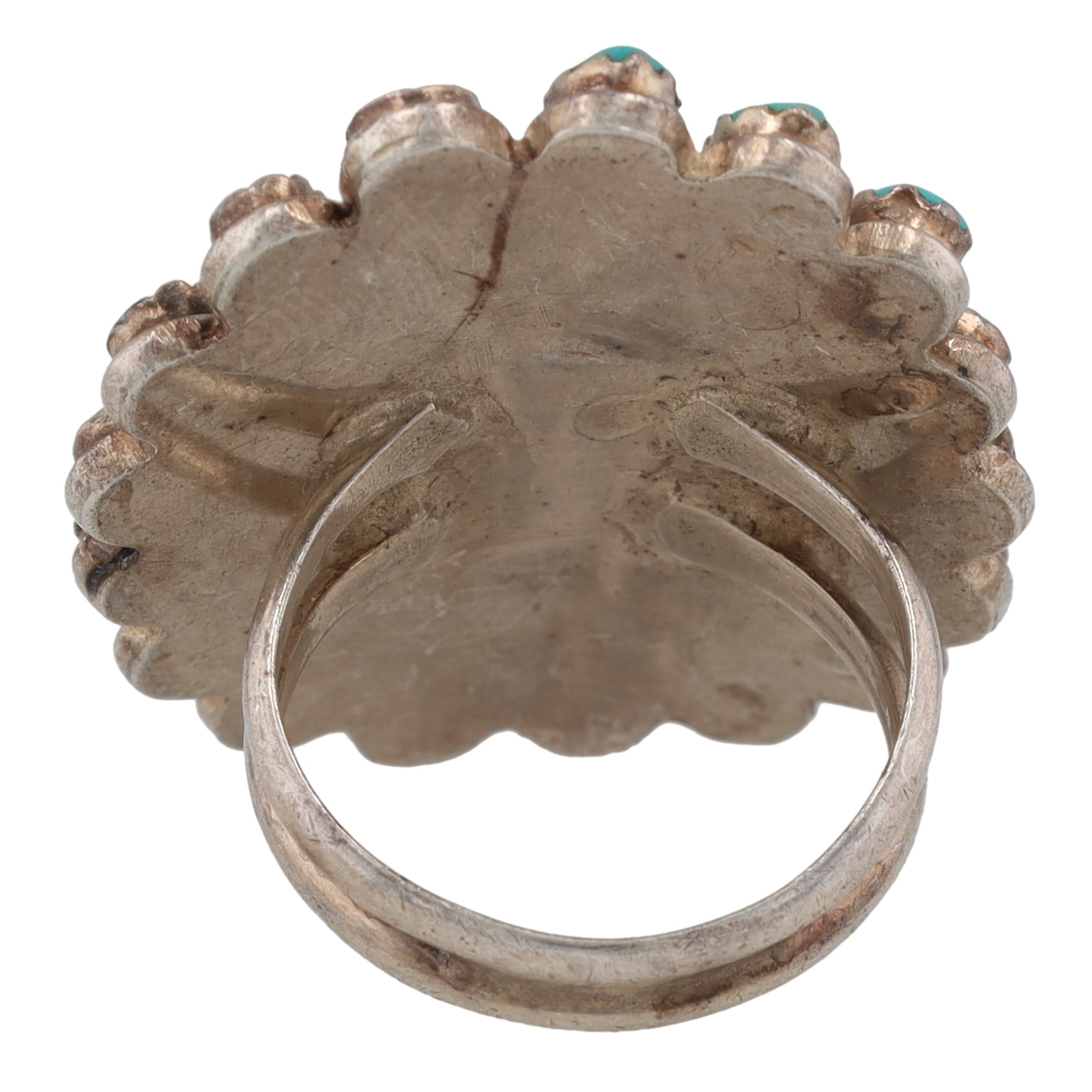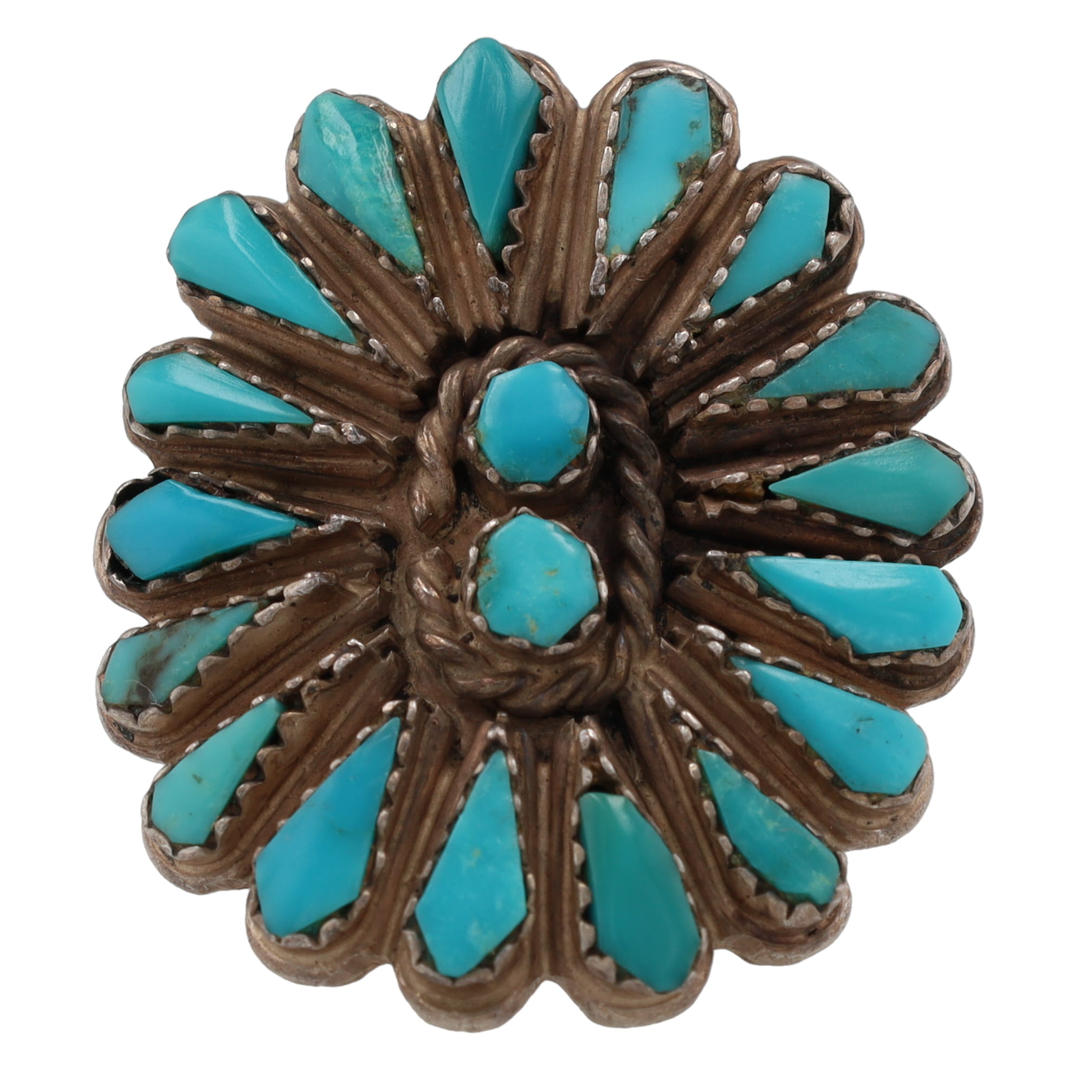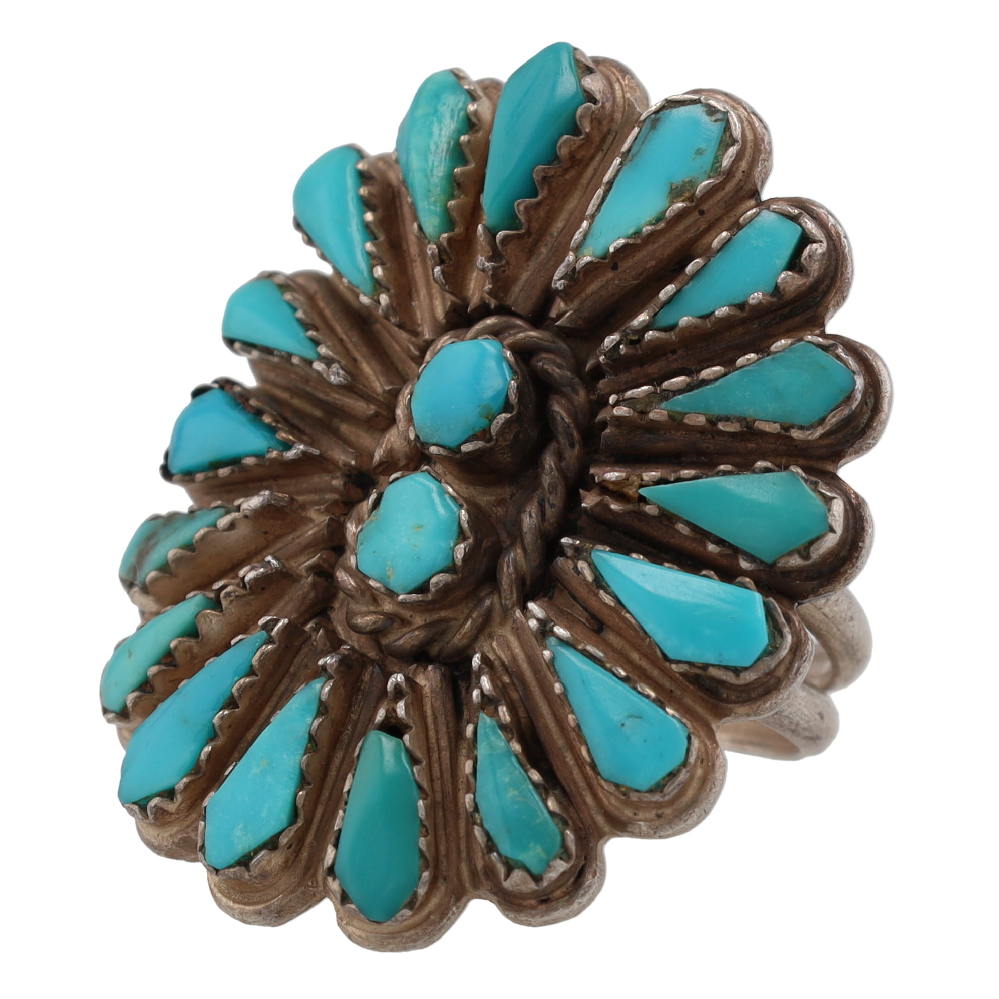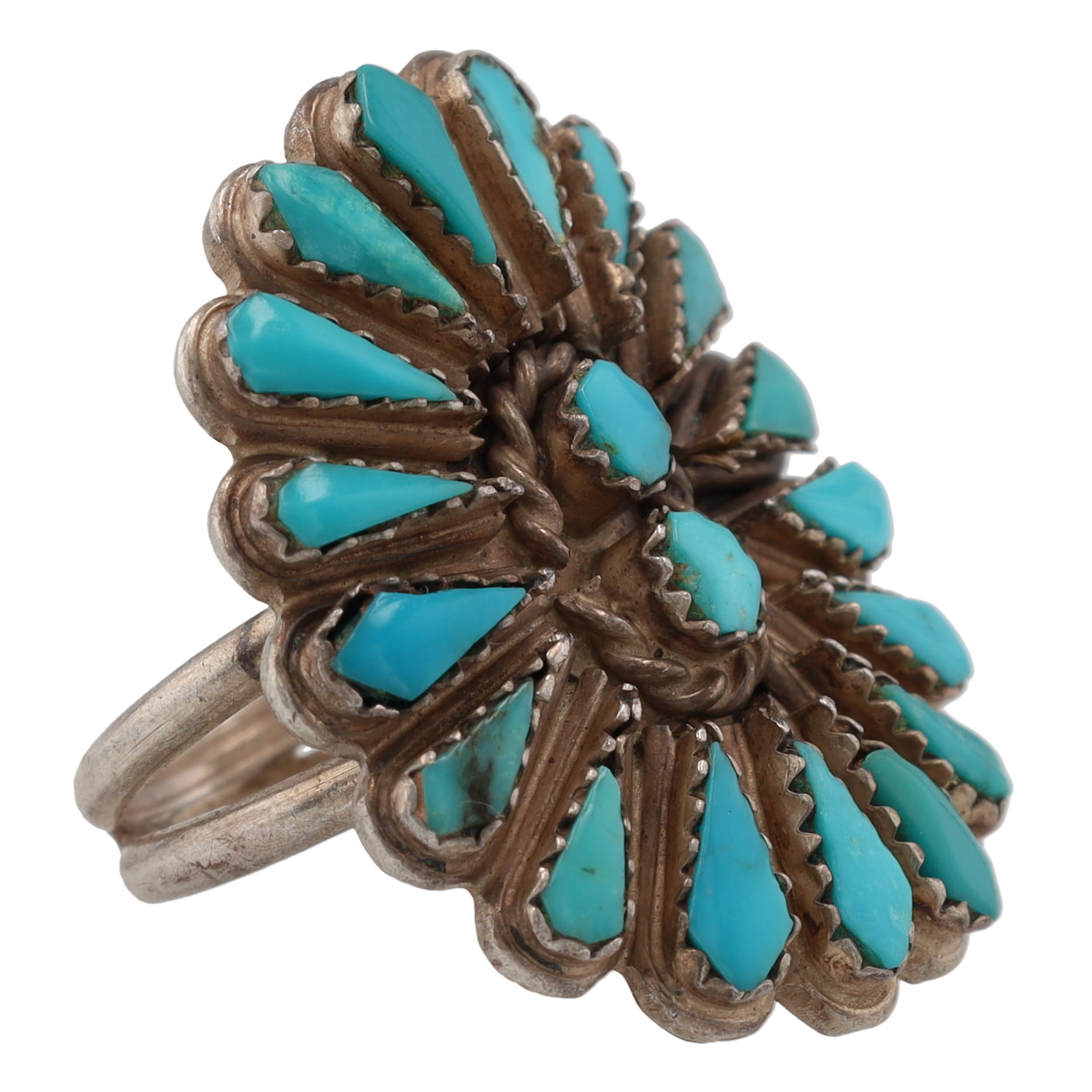 Vintage Zuni Petit Point Turquoise Sterling Ring Sz 7.25, 11.5g