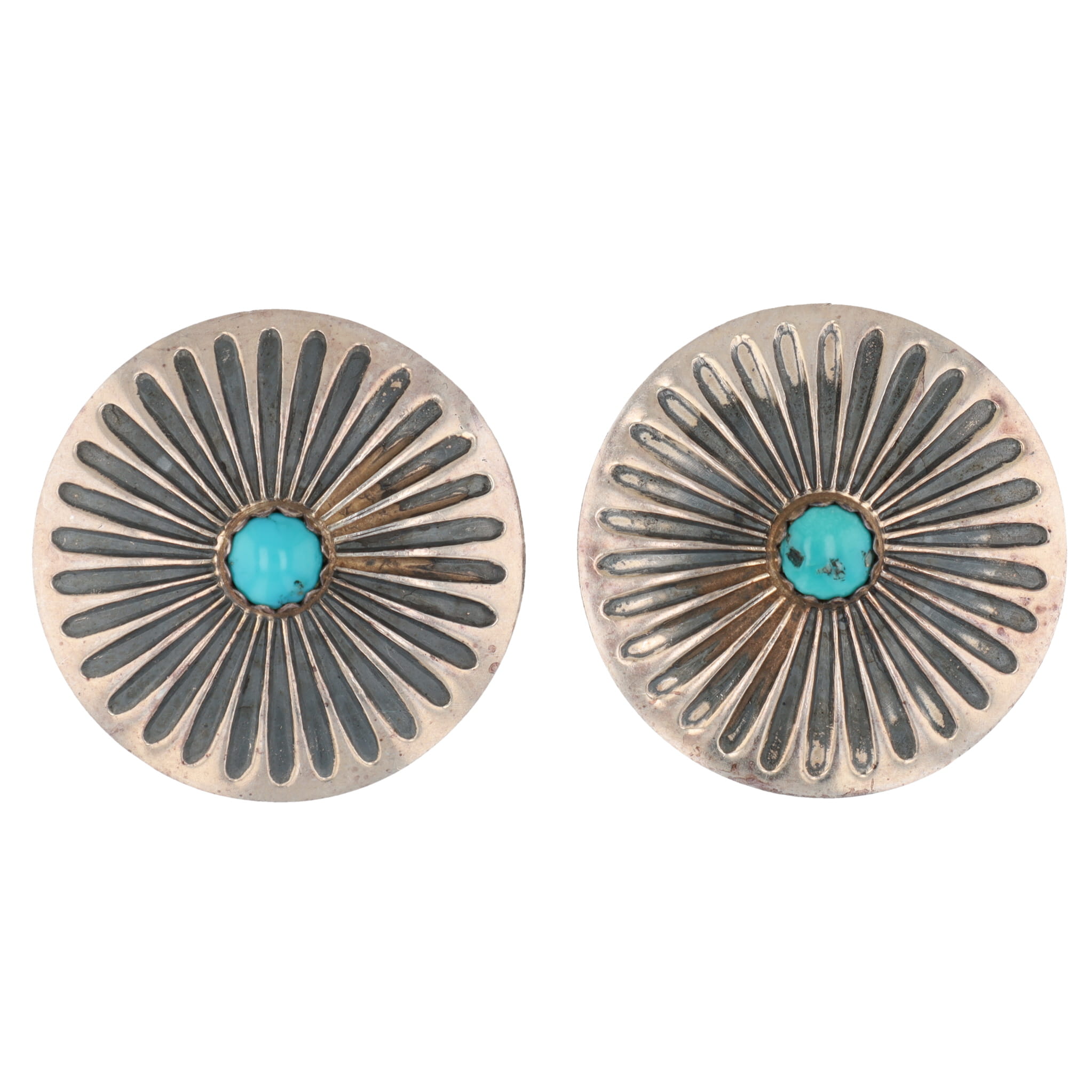 Vintage Navajo Turquoise Sterling Clip On Earrings 8g
