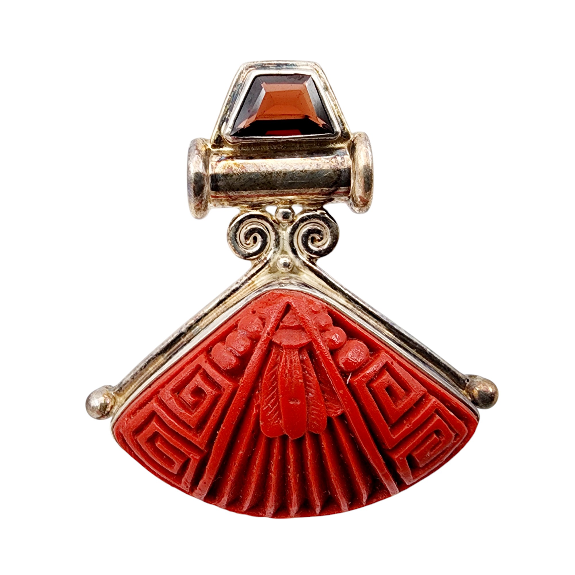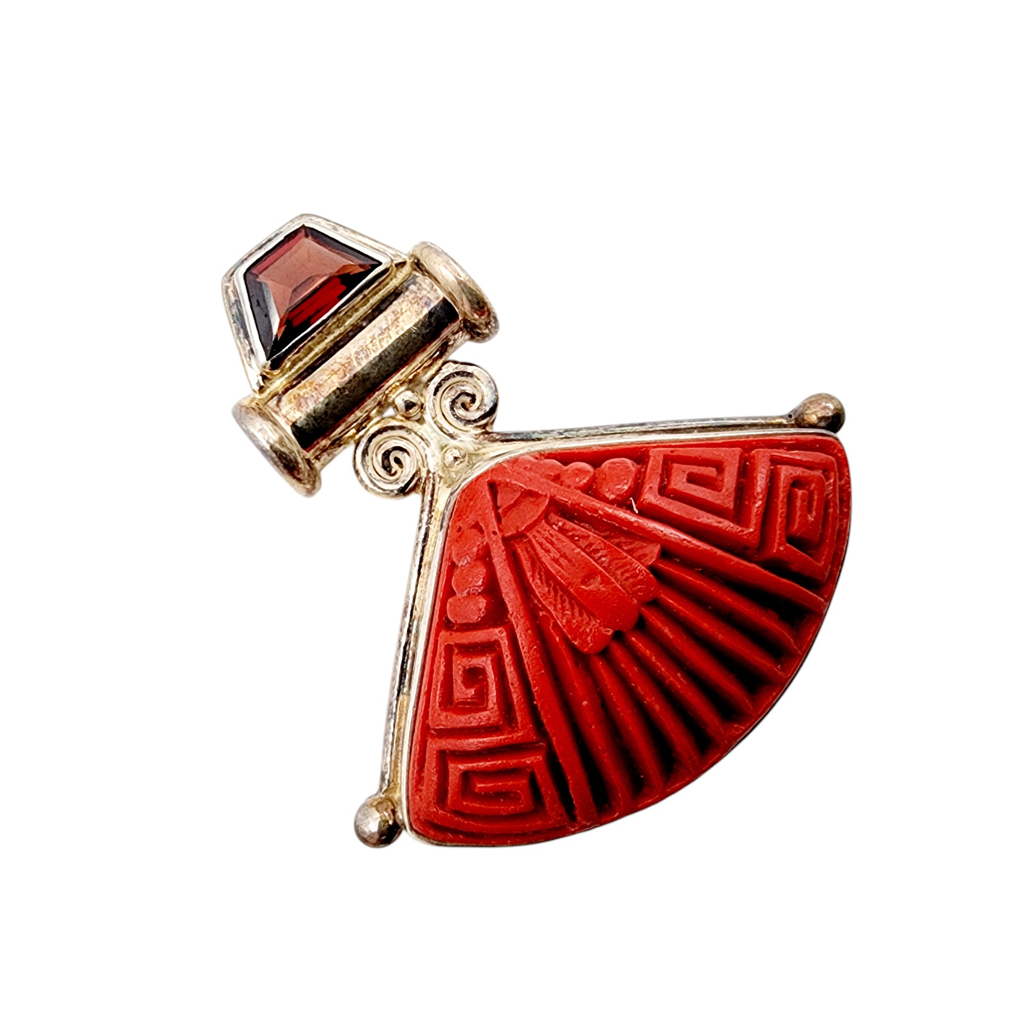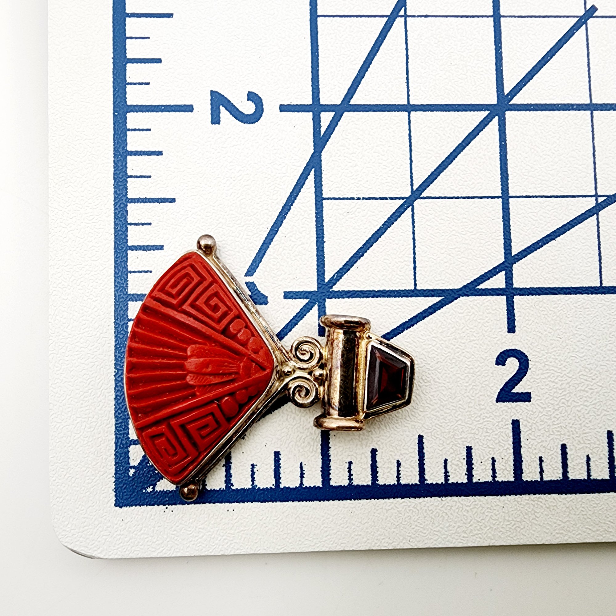 Sajen Sterling Cinnabar Garnet Fan Pendant 9.2g