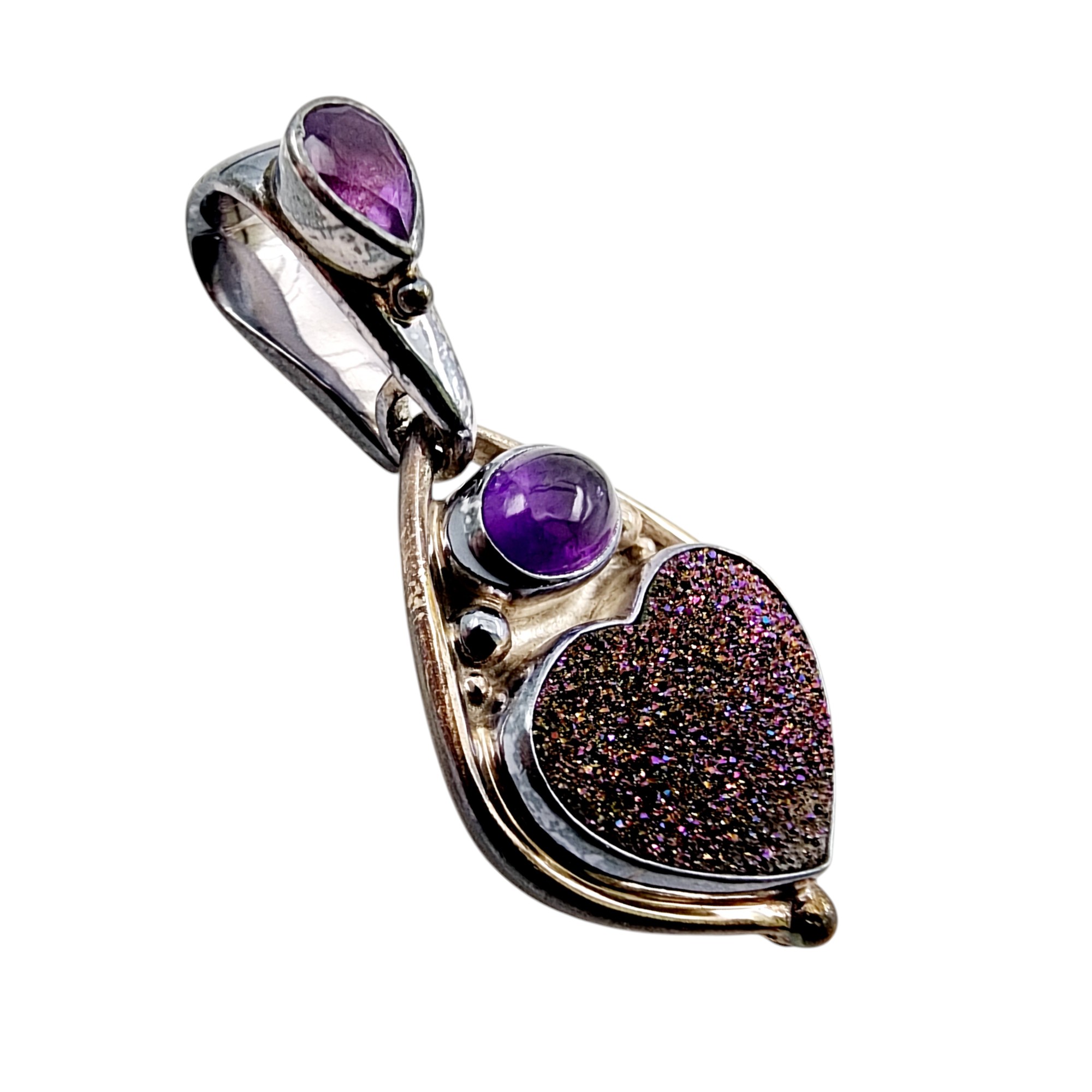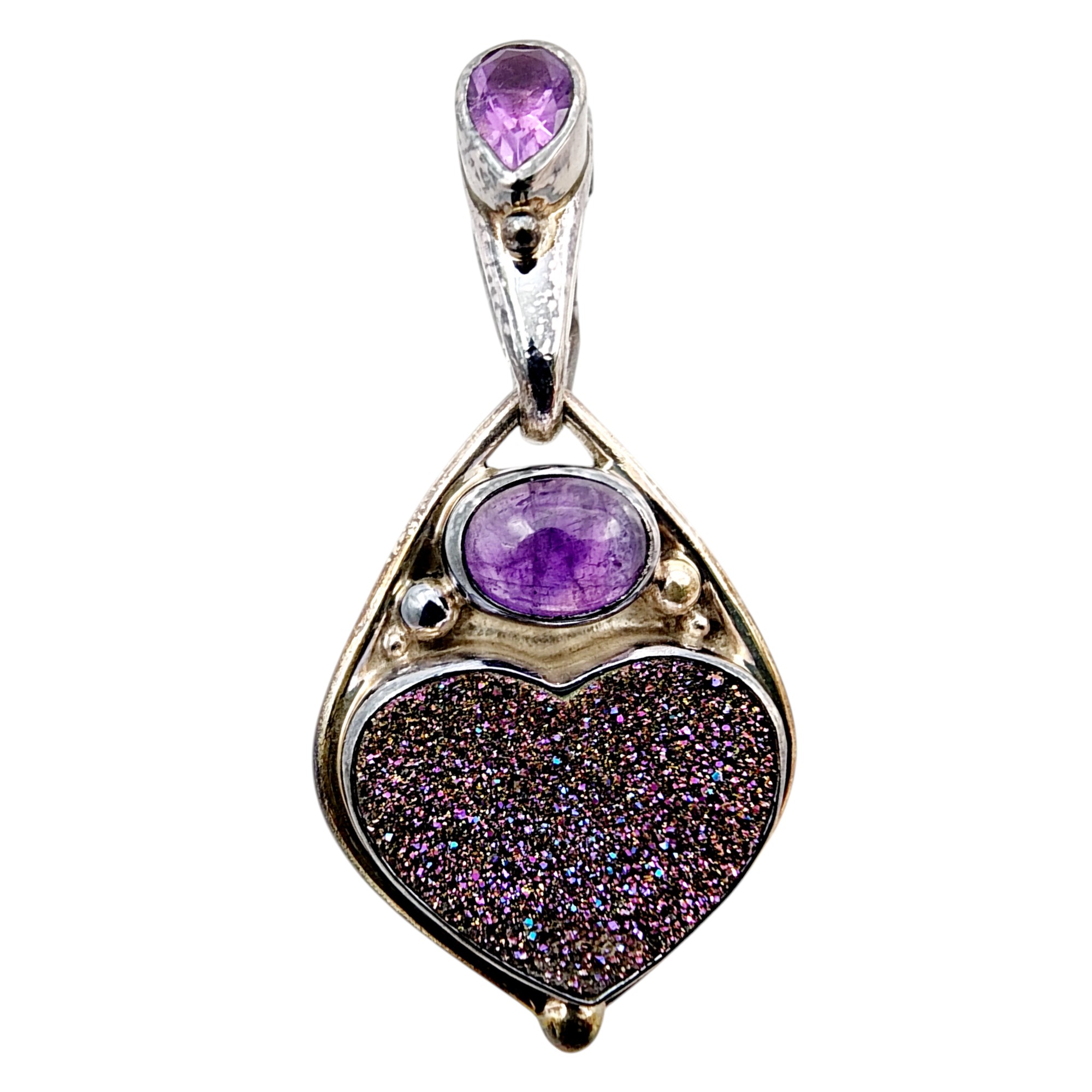 Sajen Sterling Amethyst Druzy Heart Pendant 7.3g