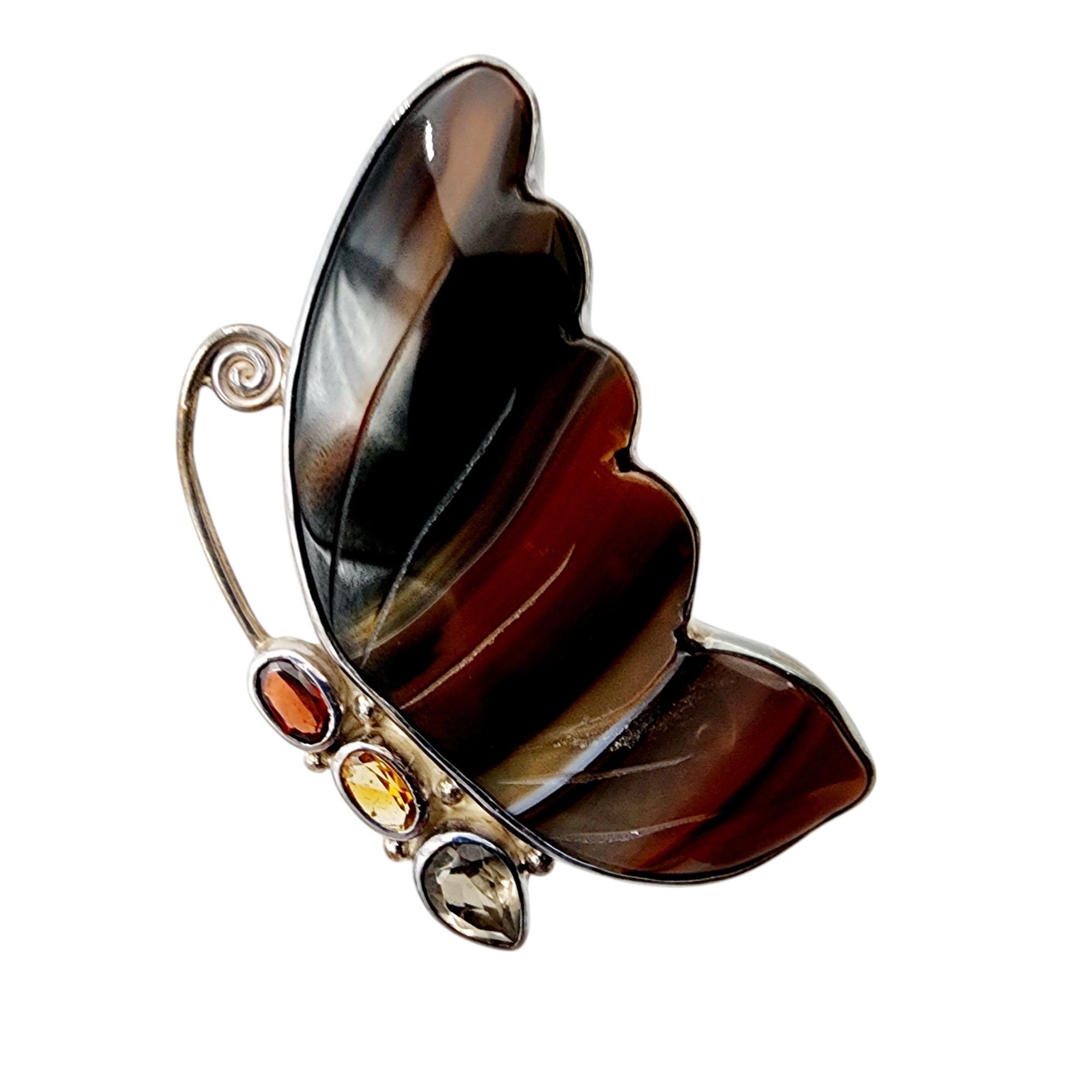 Amazing! Rare Sajen Sterling Garnet Citrine Smoky Quartz Butterfly Earrings 26.8g
