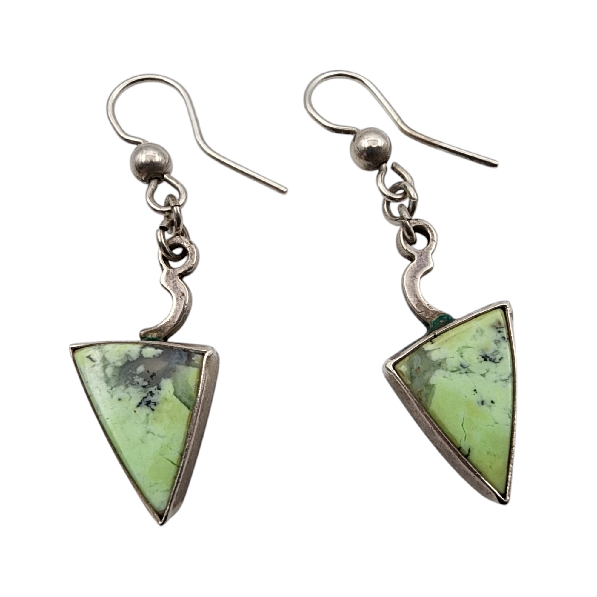 Sterling Signed Lemon Chrysoprase Earrings 4.8g