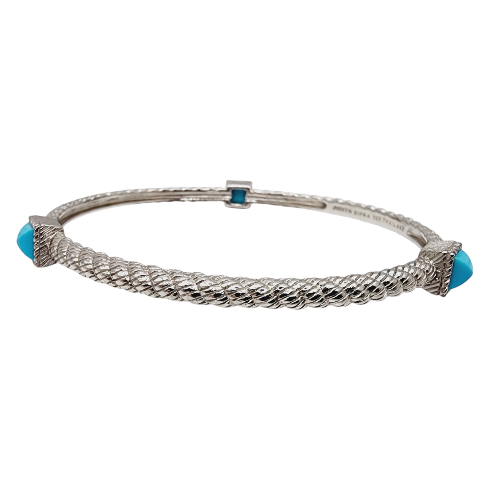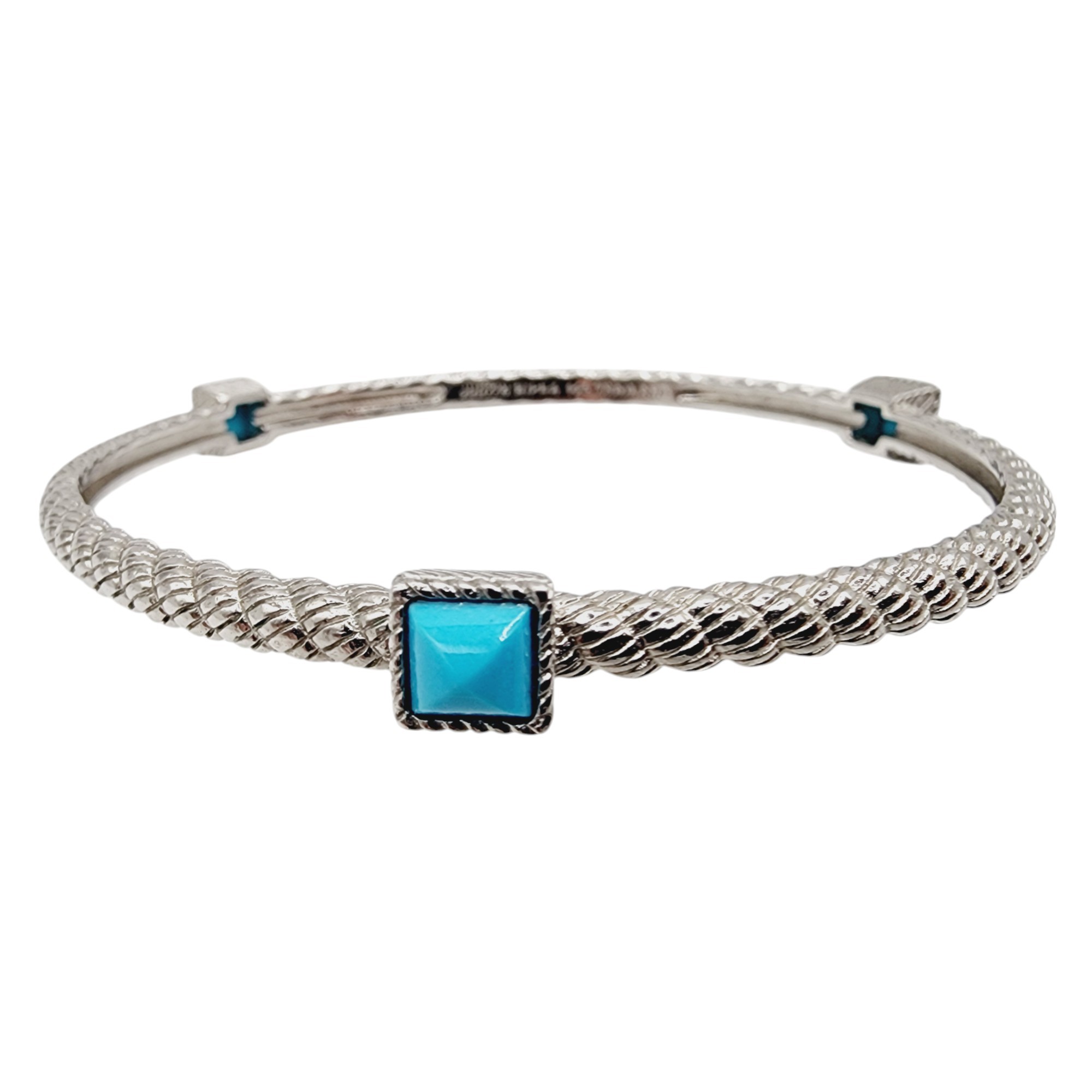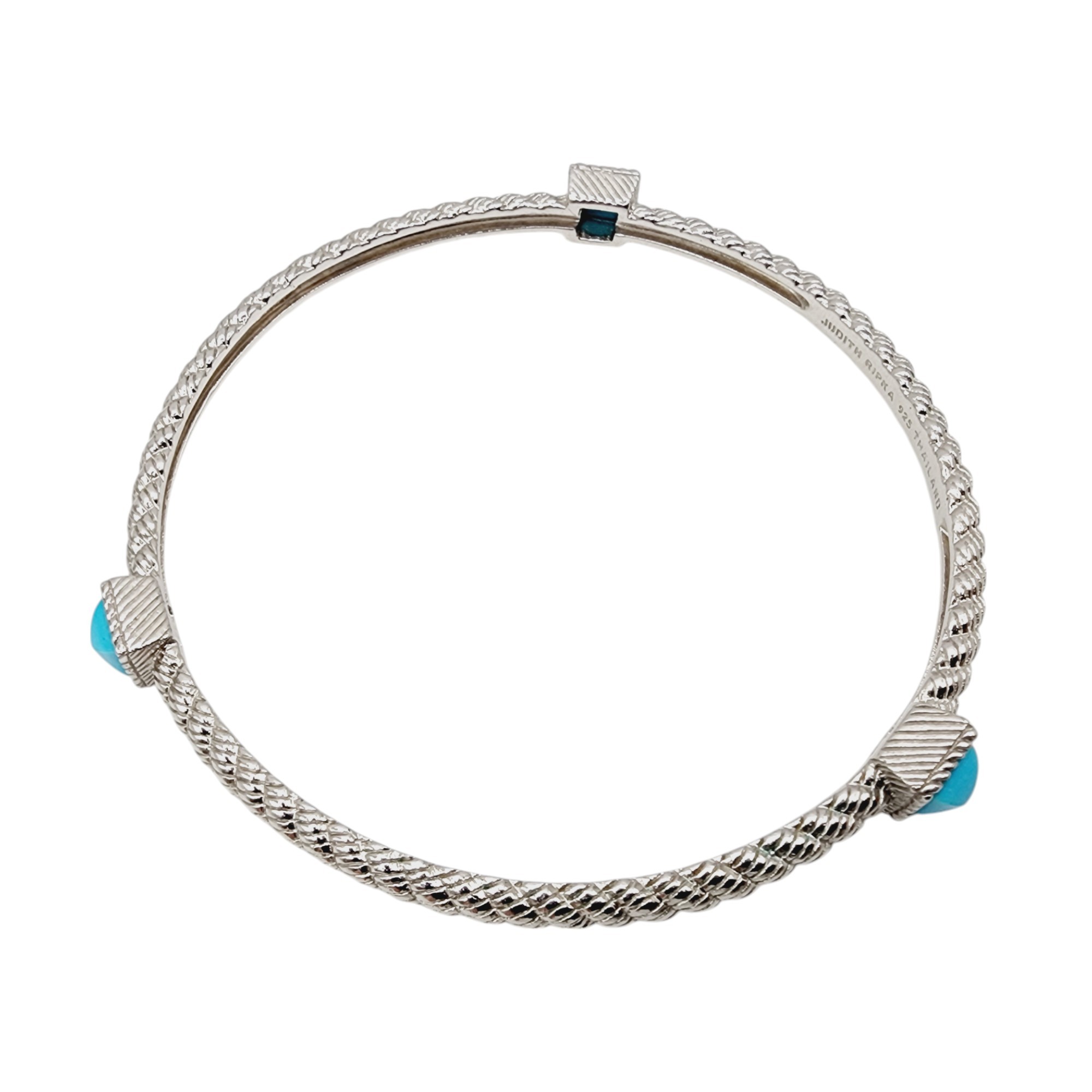 Judith Ripka Sterling Turquoise Cabachon Bangle Bracelet 14.6g