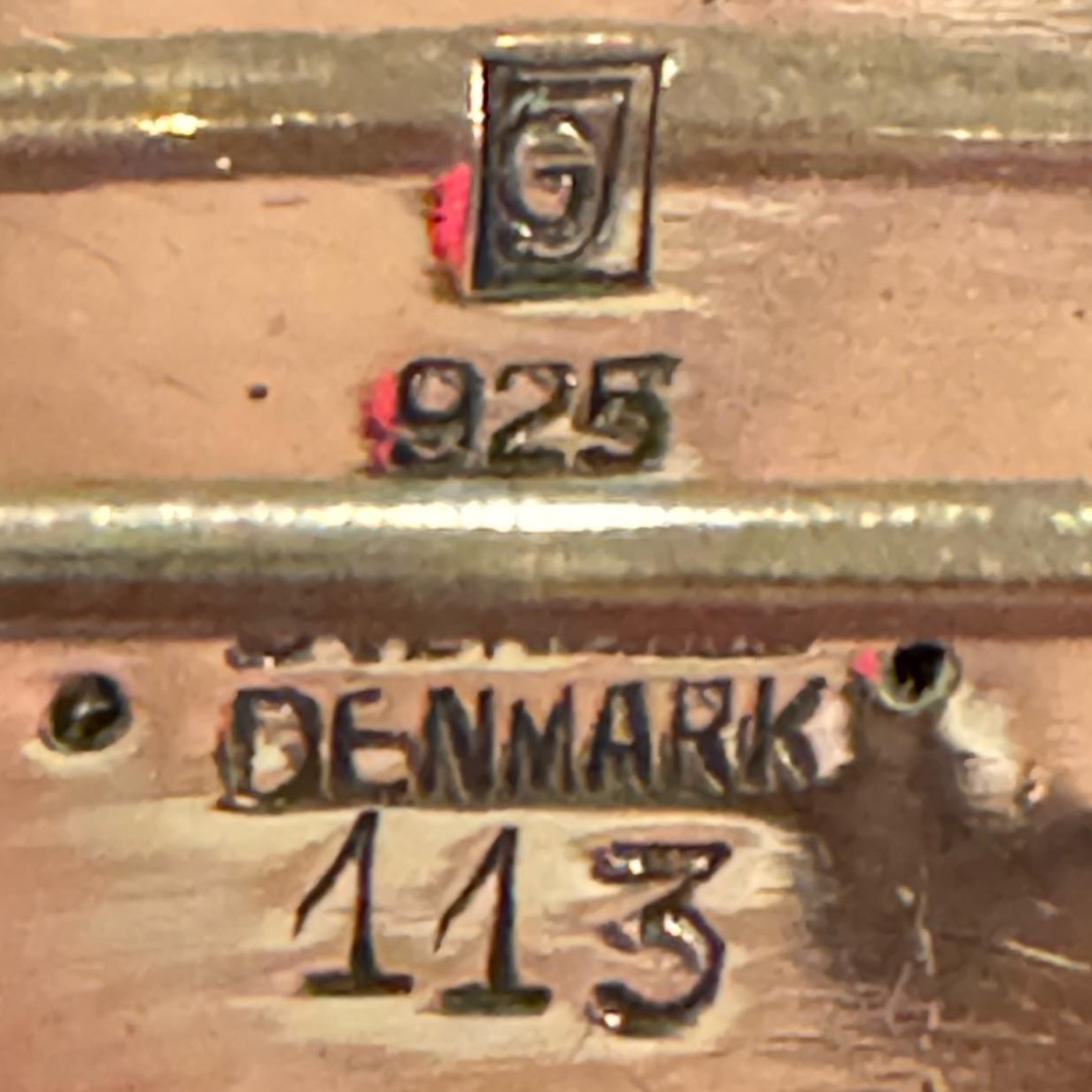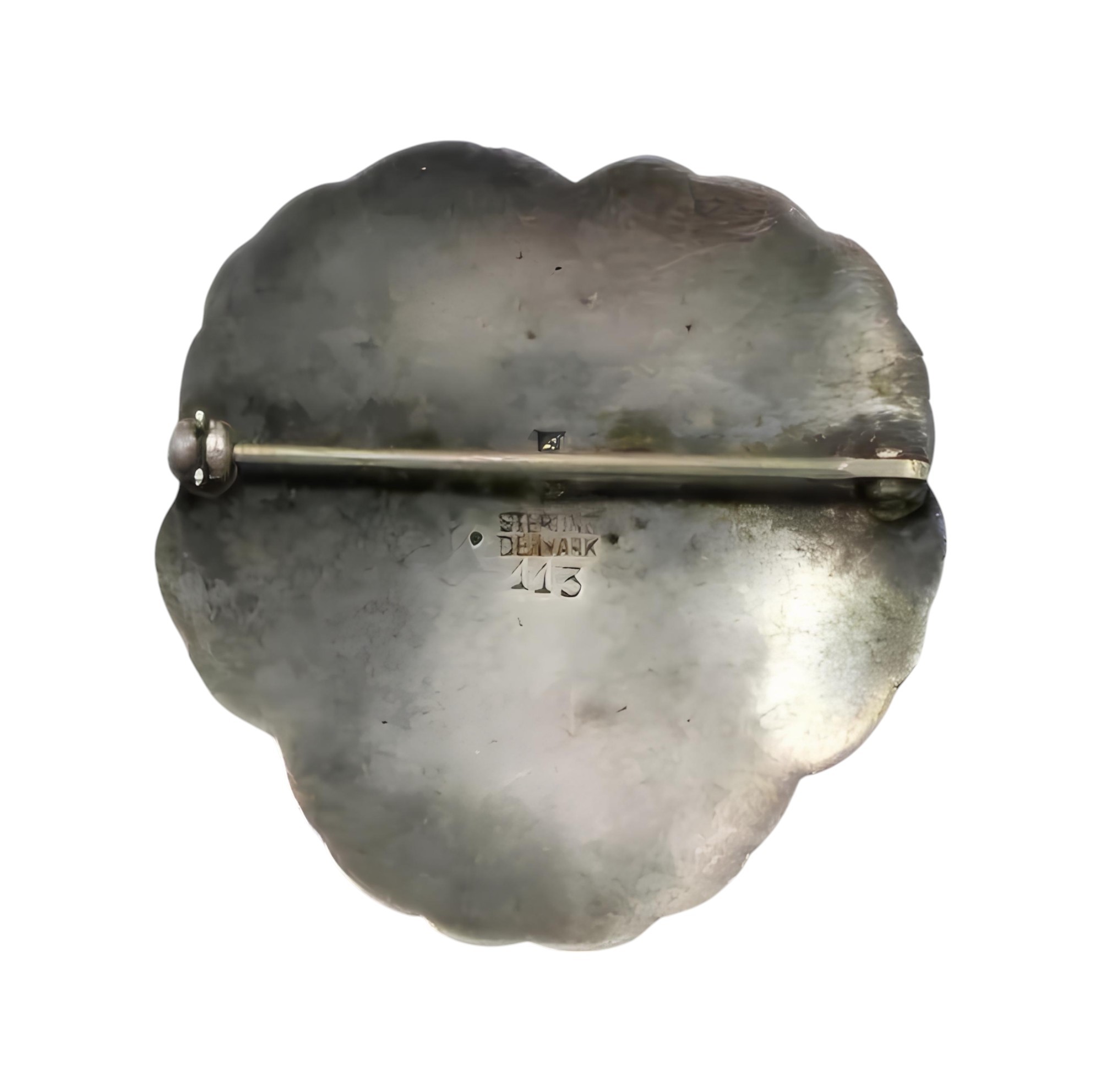 Georg Jensen #113 Sterling Coral Pansy Brooch, signature dates to approximately 1933-1944, approx. 41 x 39mm