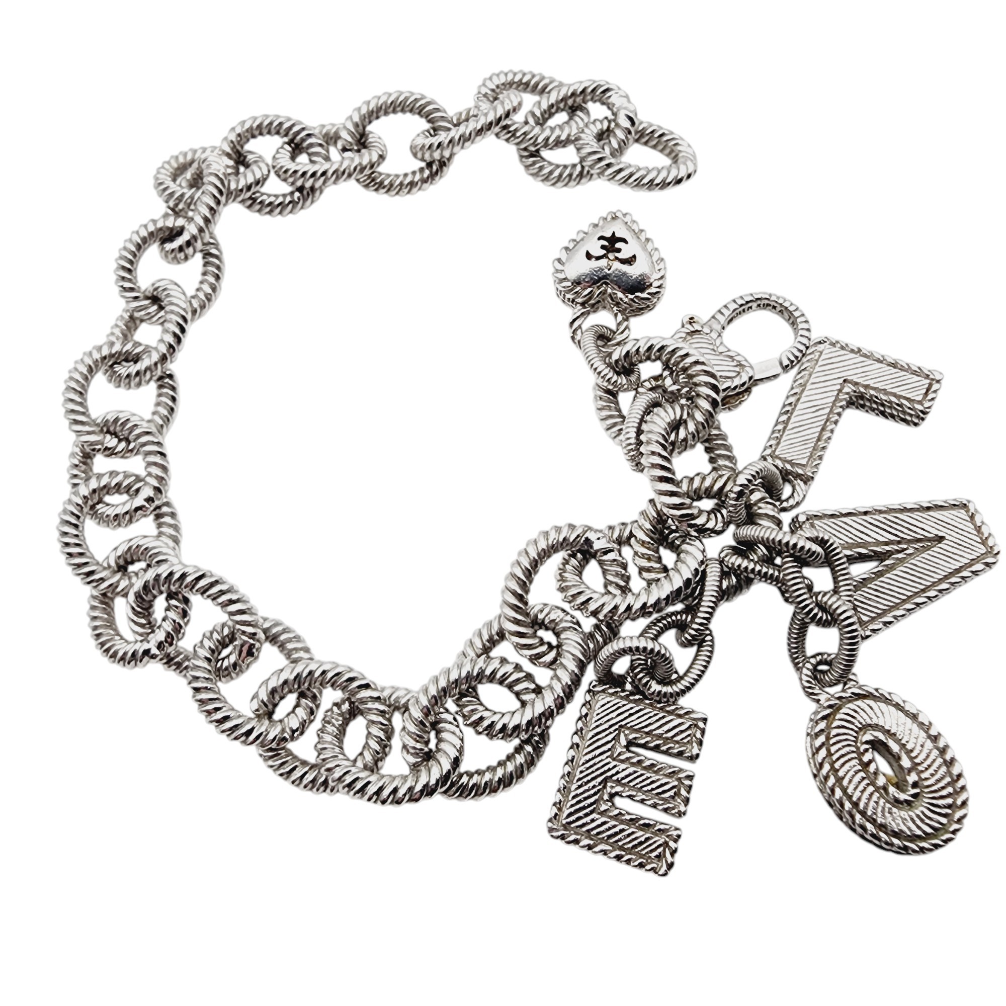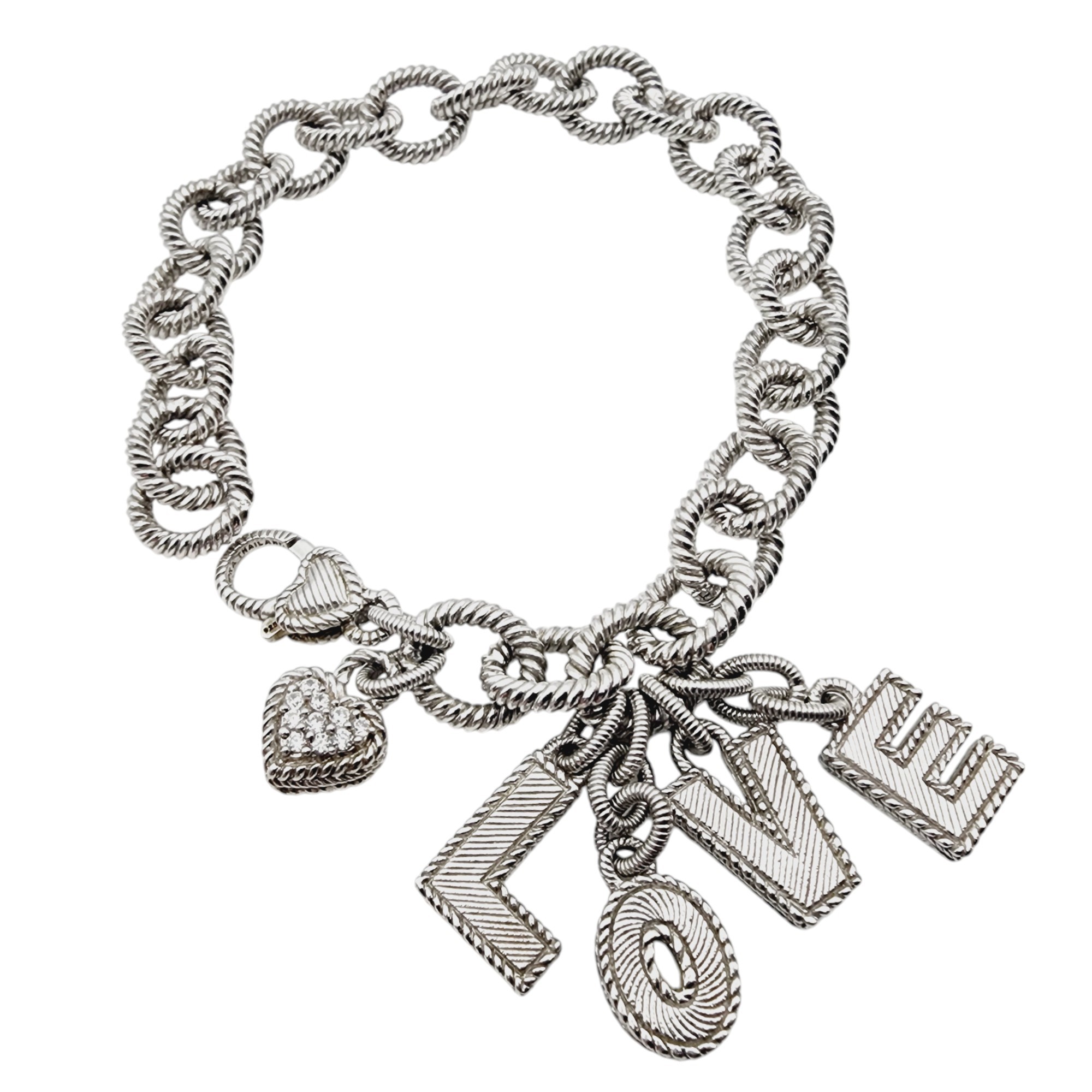 Judith Ripka Sterling Cubic Zirconia Love Charm Bracelet 38.5g