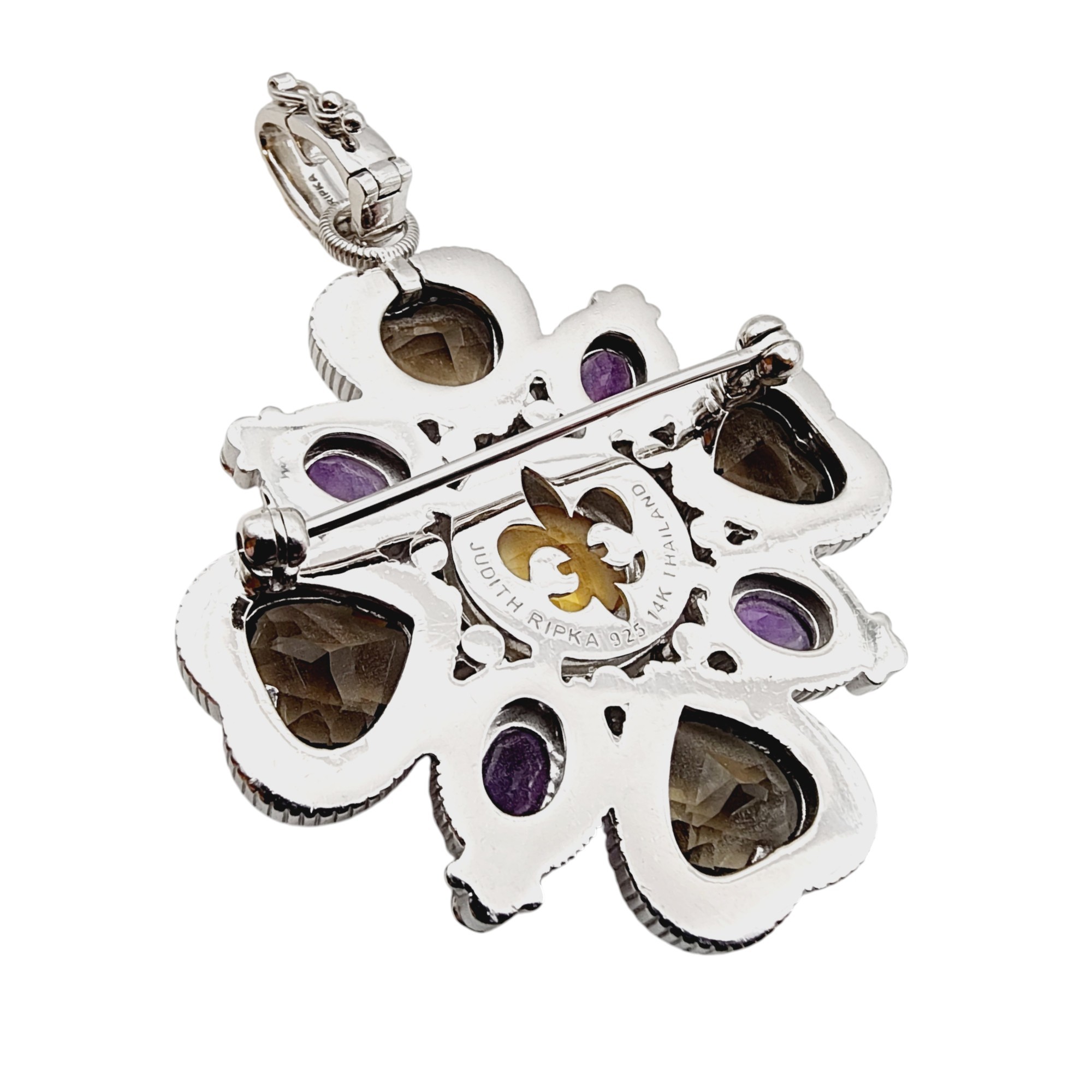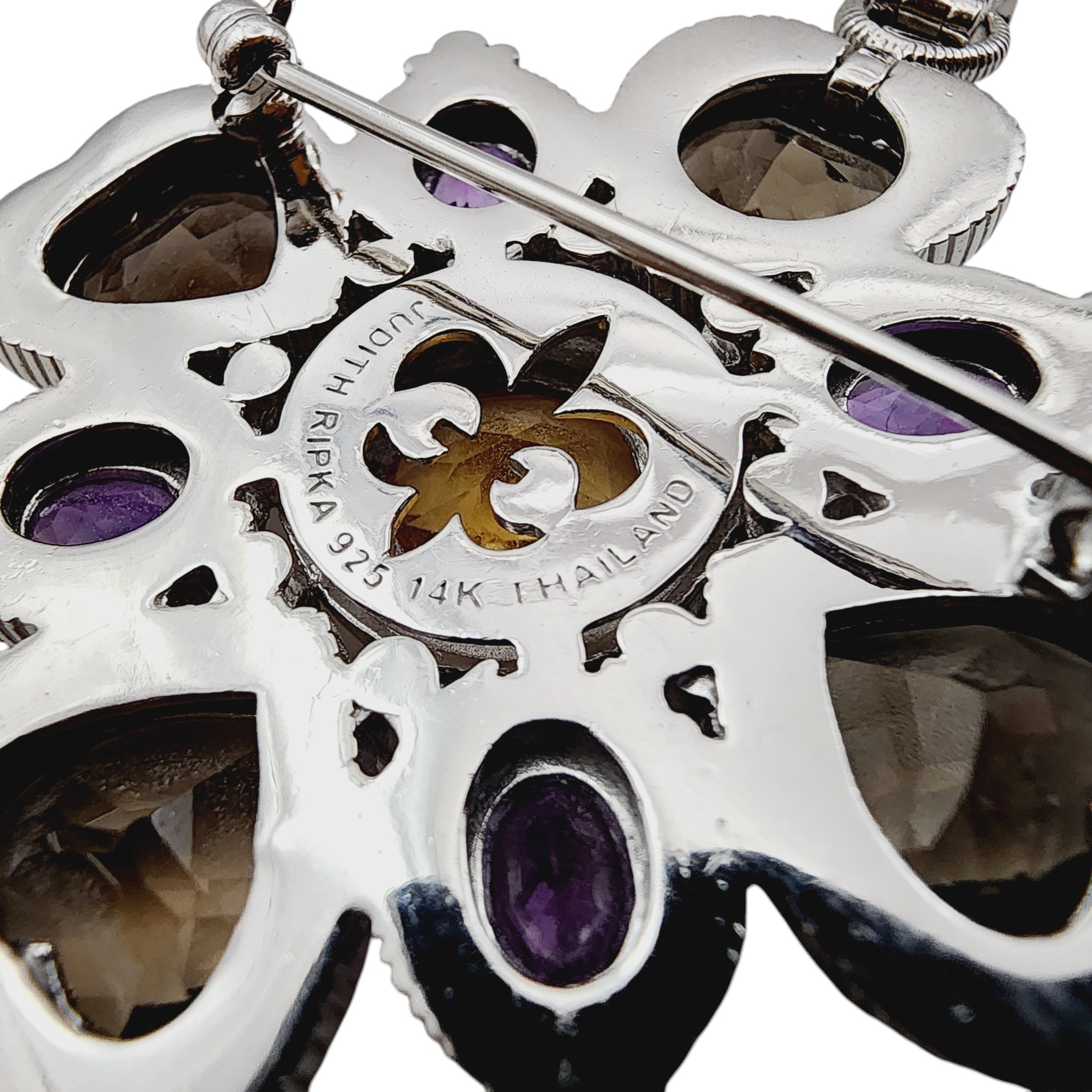 Judith Ripka 14k Gold Sterling Multi Stone Large Cluster Pendant/Brooch- citrine, smoky quartz, amethyst 29.7g