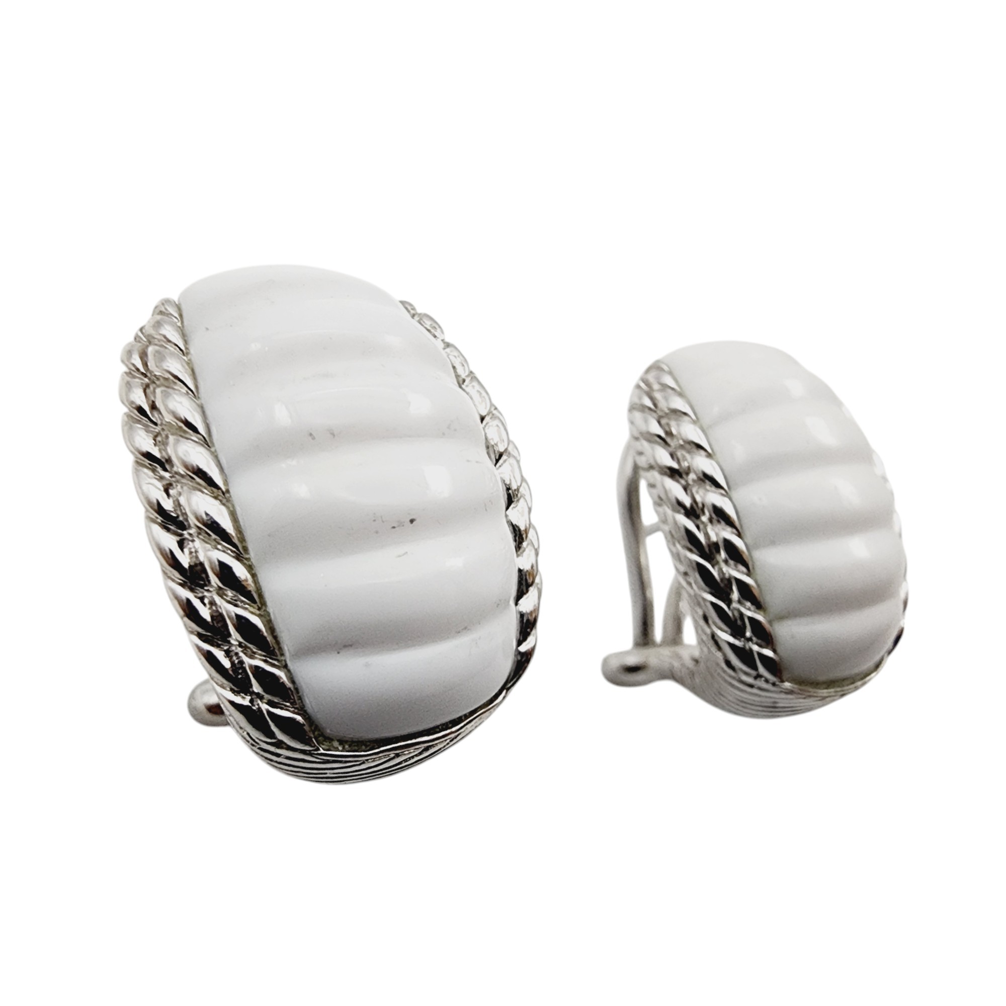 Judith Ripka Sterling White Agate Earrings 12.2g