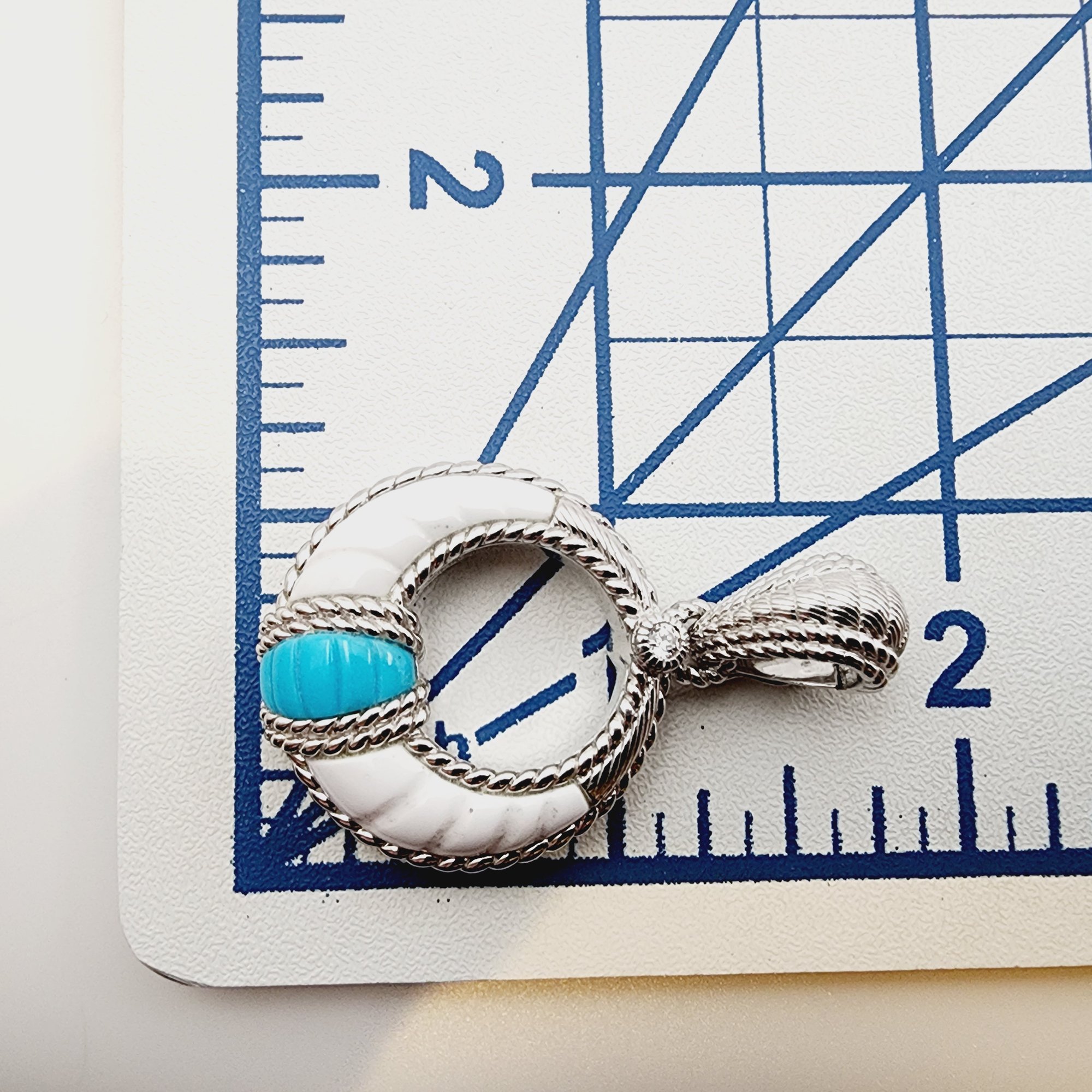 Judith Ripka Sterling Carved Milky Quartz Turquoise Pendant 17.2g