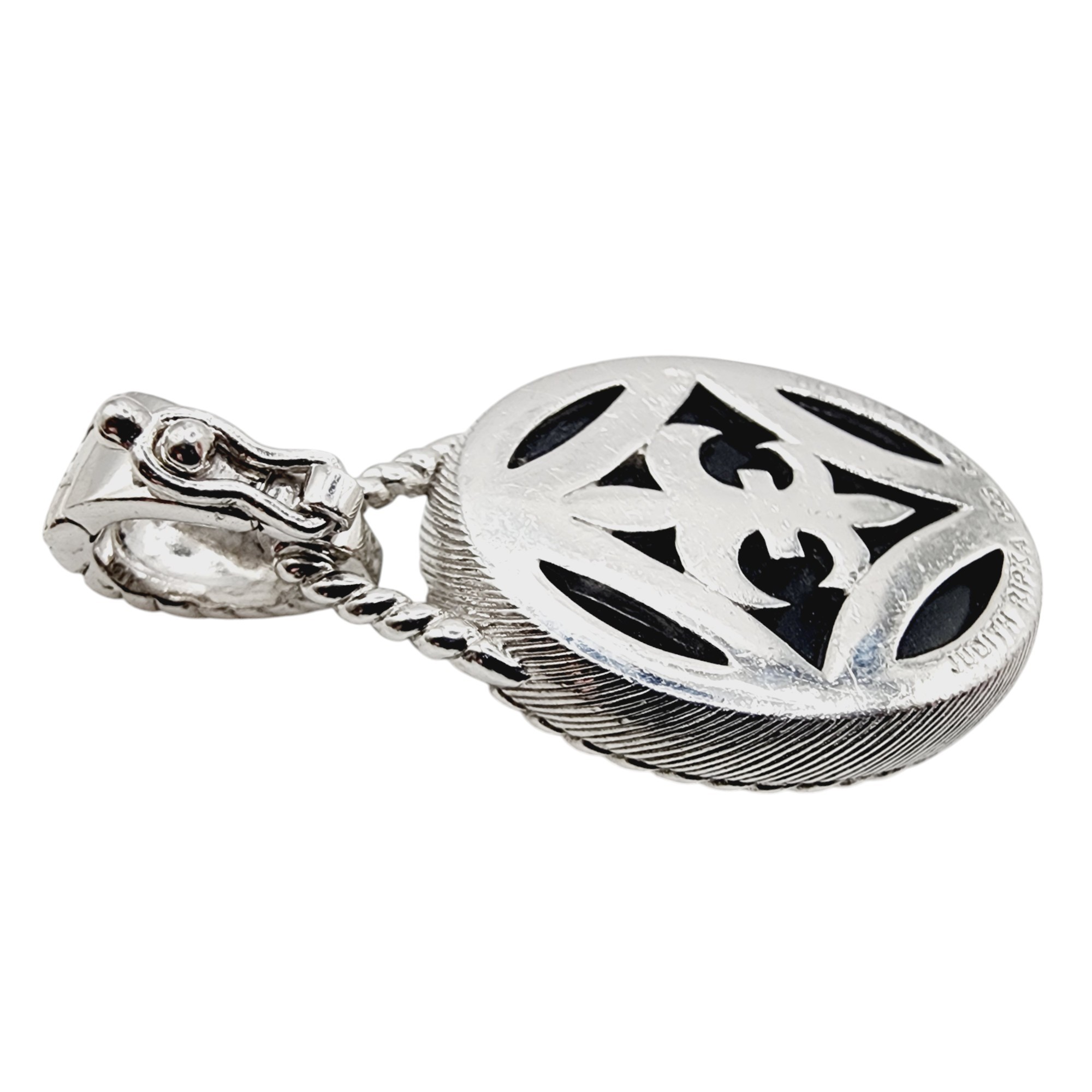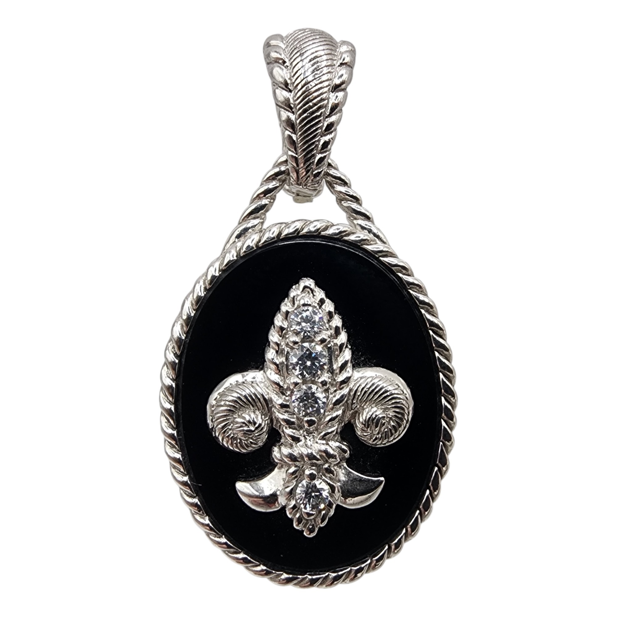 Judith Ripka Sterling Onyx CZ Fleur-de-Lis Pendant 11g