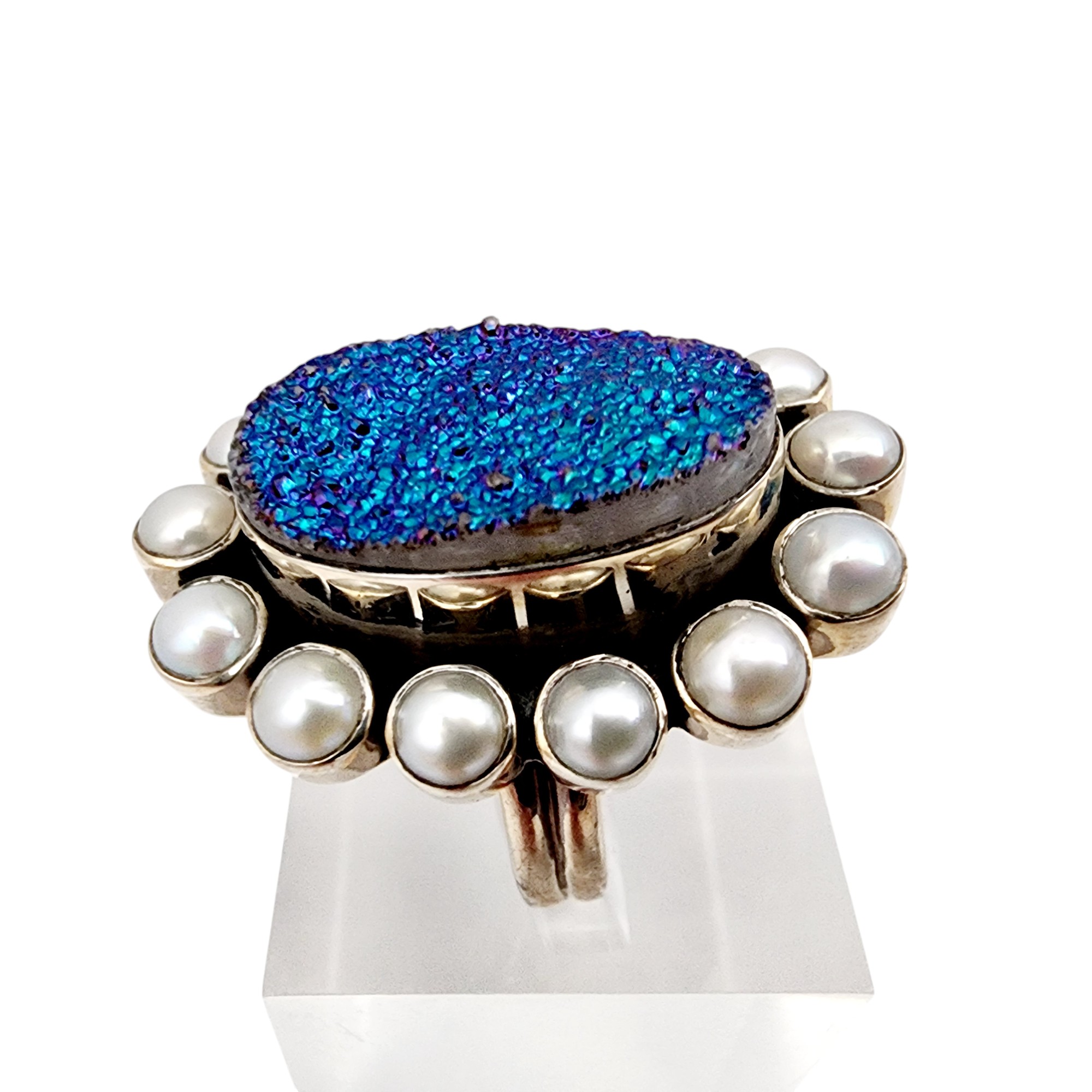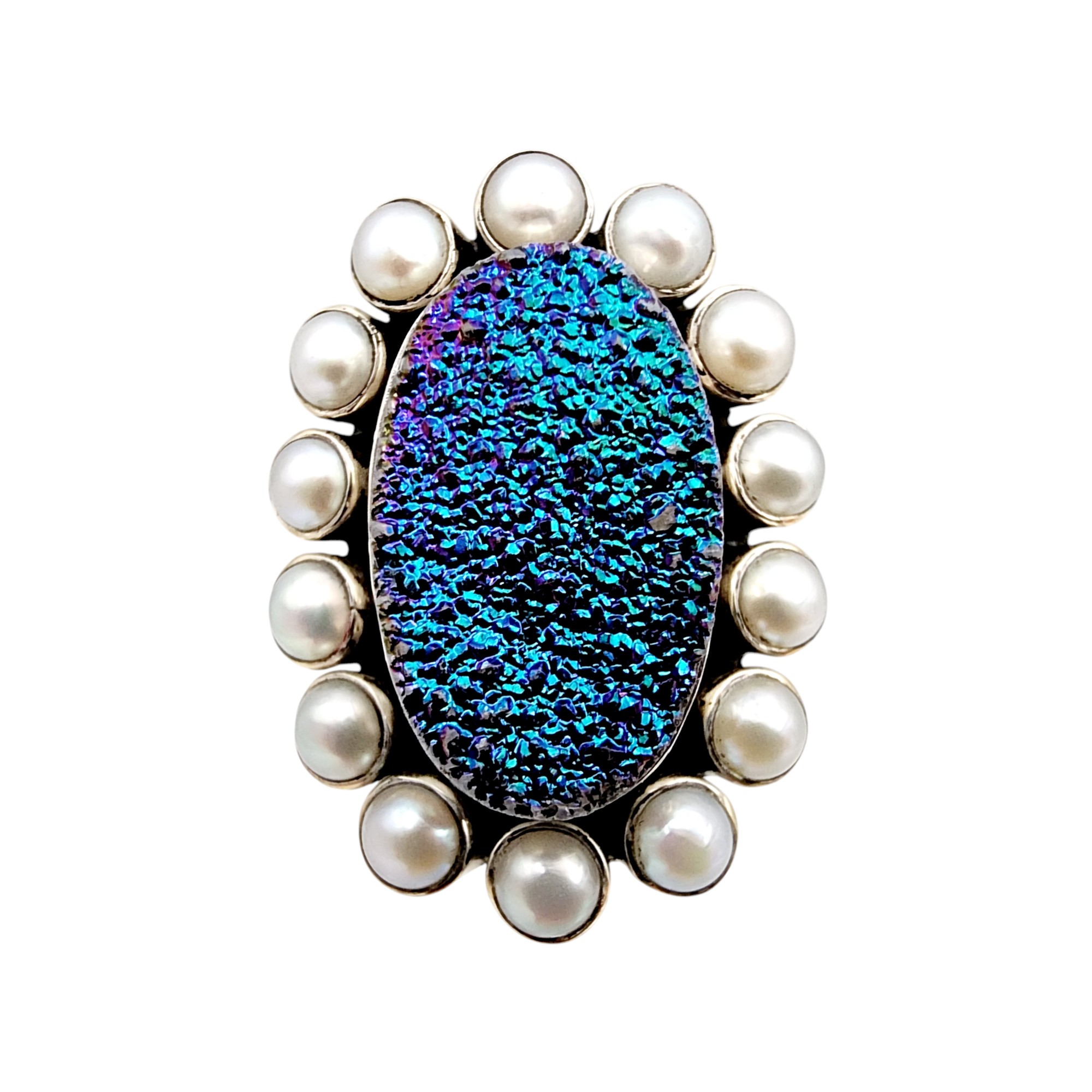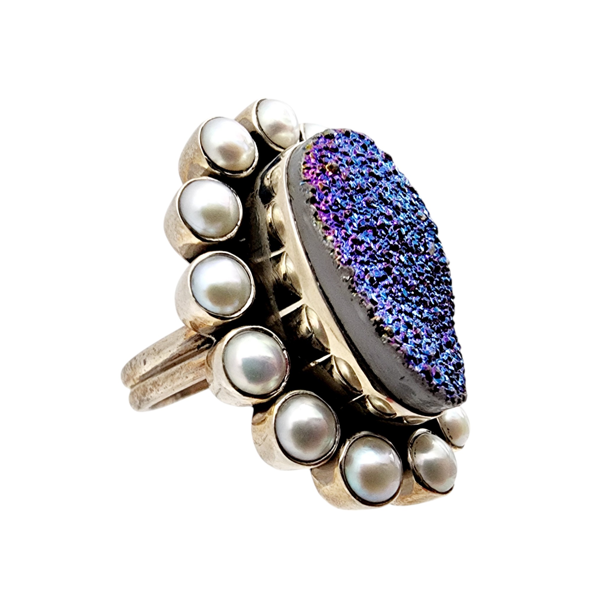 Nicky Butler Sterling Druzy Pearl Ring Sz 7 11.1g