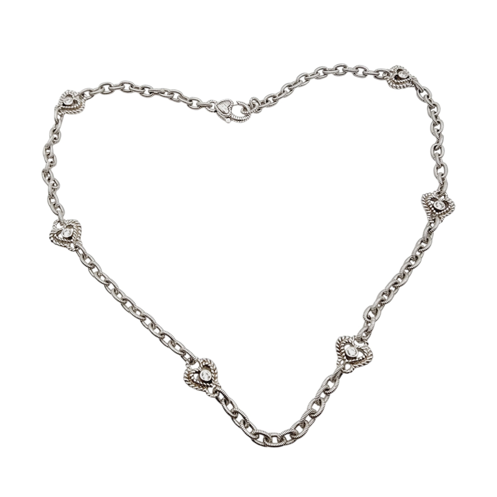 Judith Ripka Sterling Cubic Zirconia Heart Link Necklace 26.8g