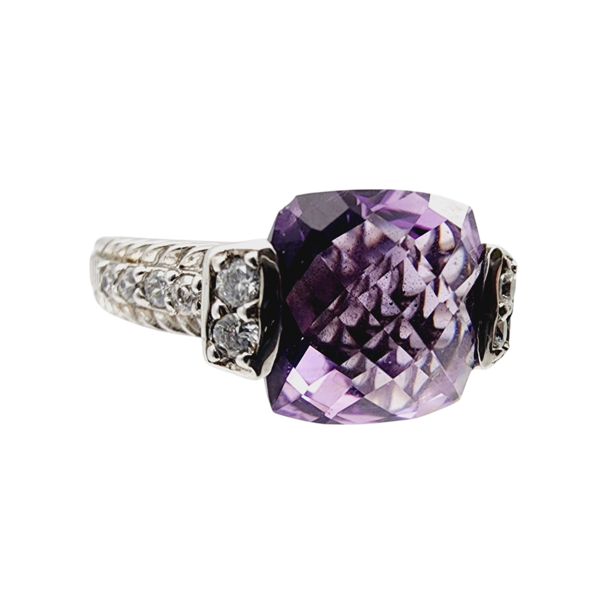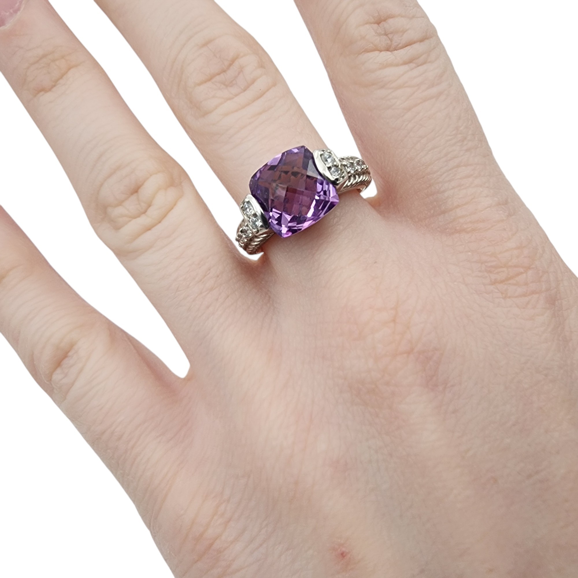 Judith Ripka Sterling Amethyst Diamonique CZ Ring Sz 8 7.2g