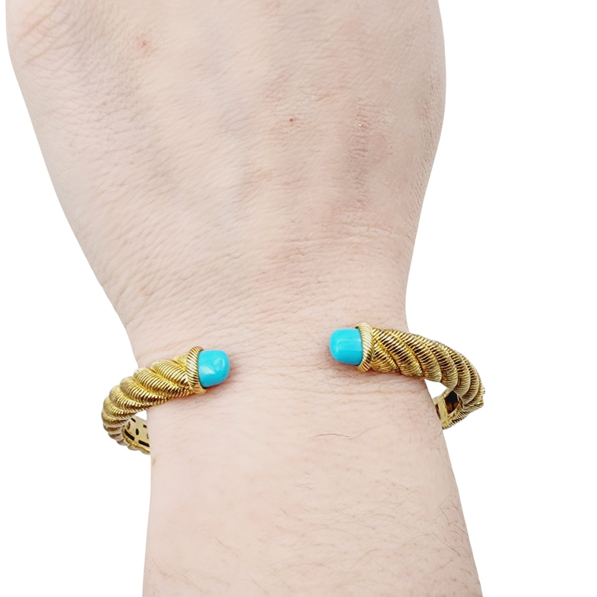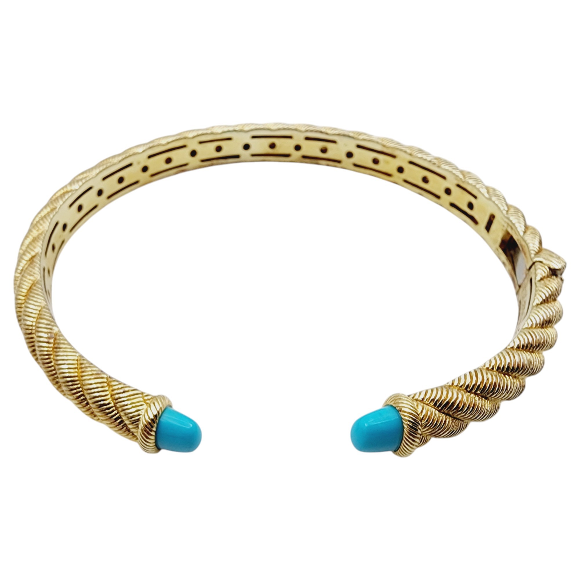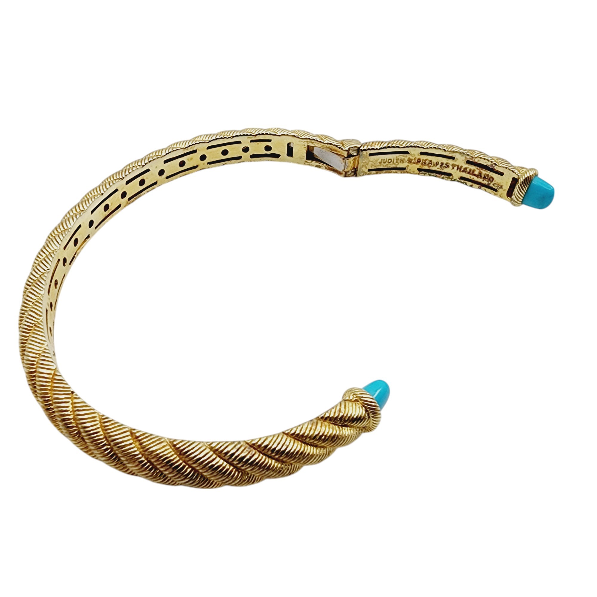 Judith Ripka Gold over Sterling Turquoise Hinge Cuff Bracelet 26.5g