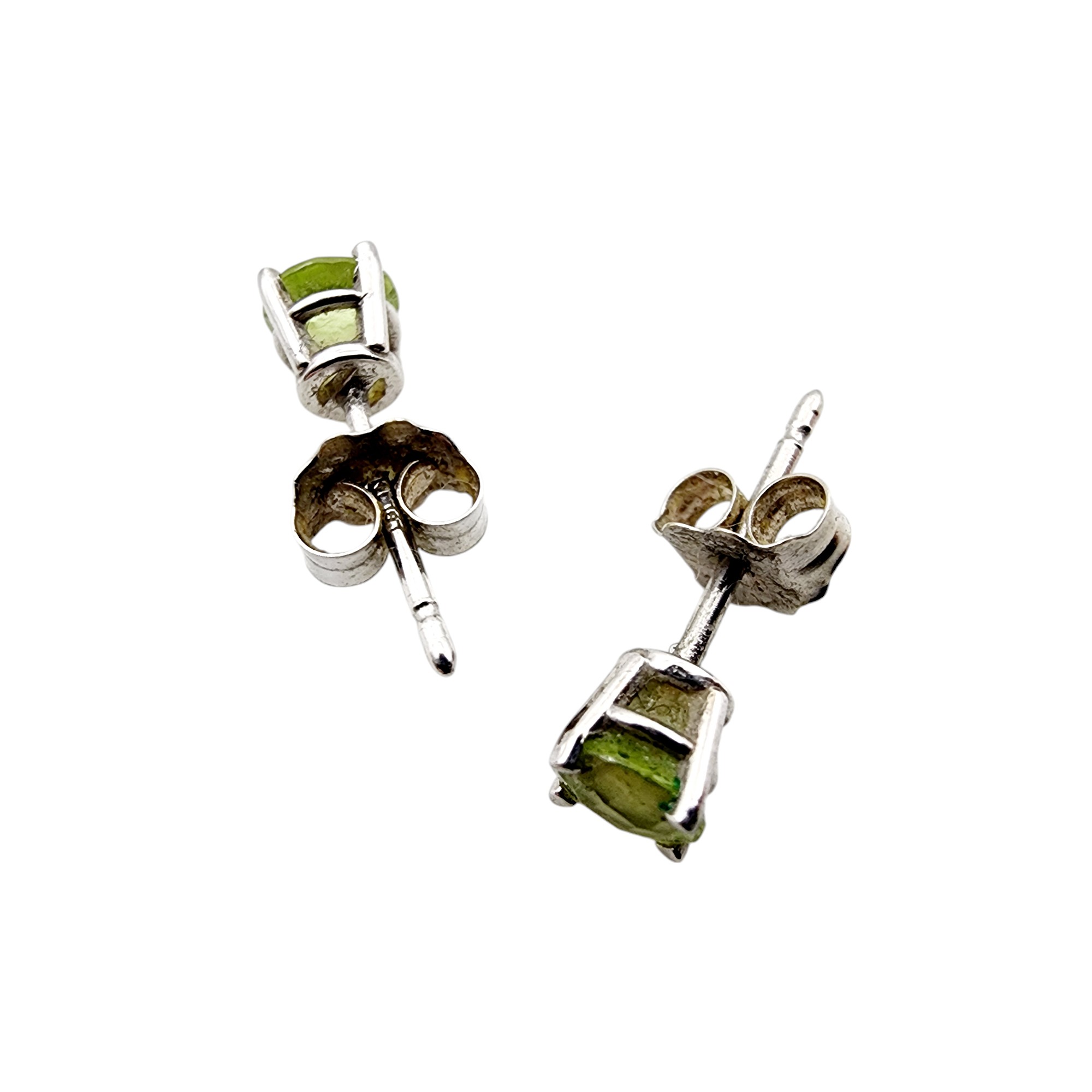 14k White Gold Peridot Stud Earrings .6g w/backs