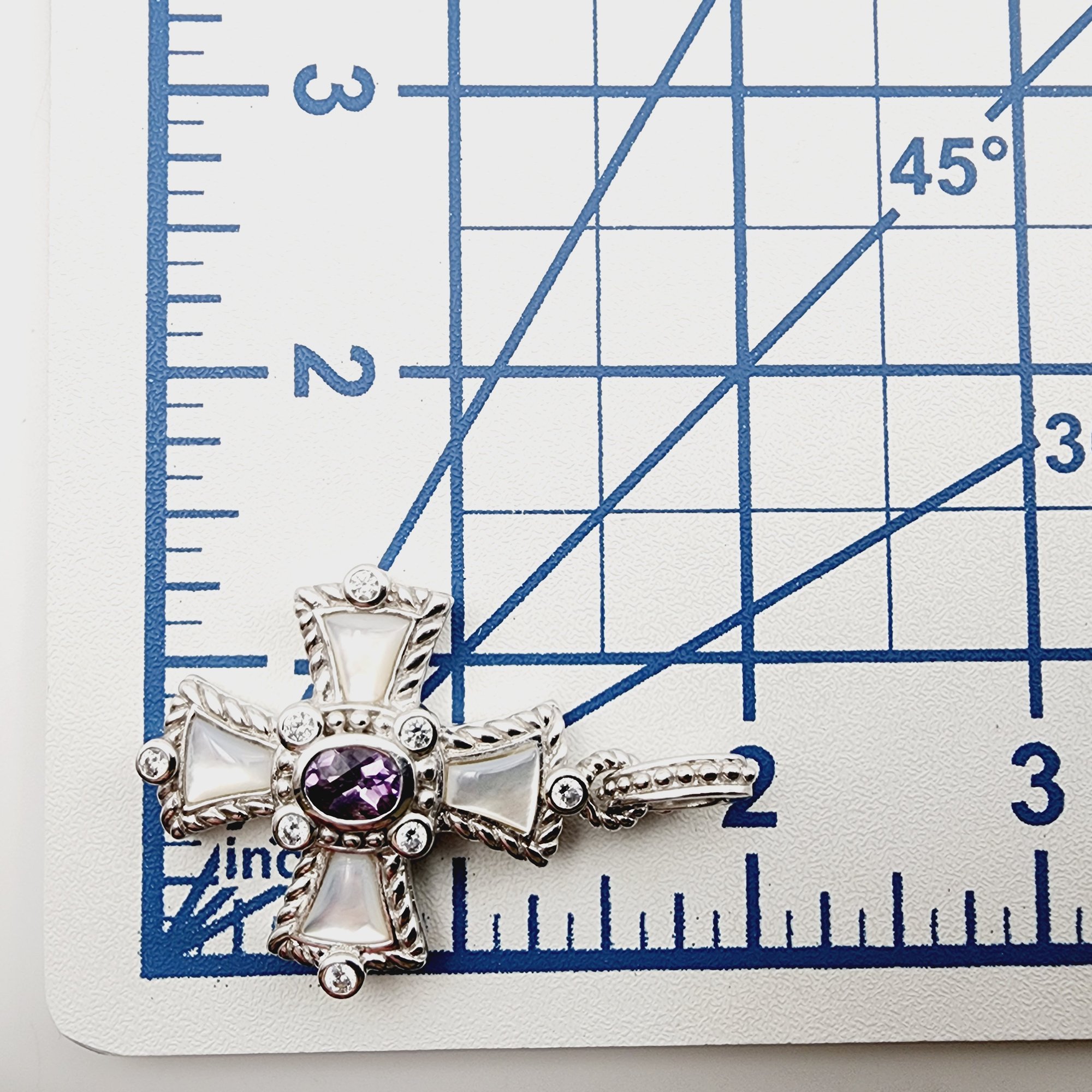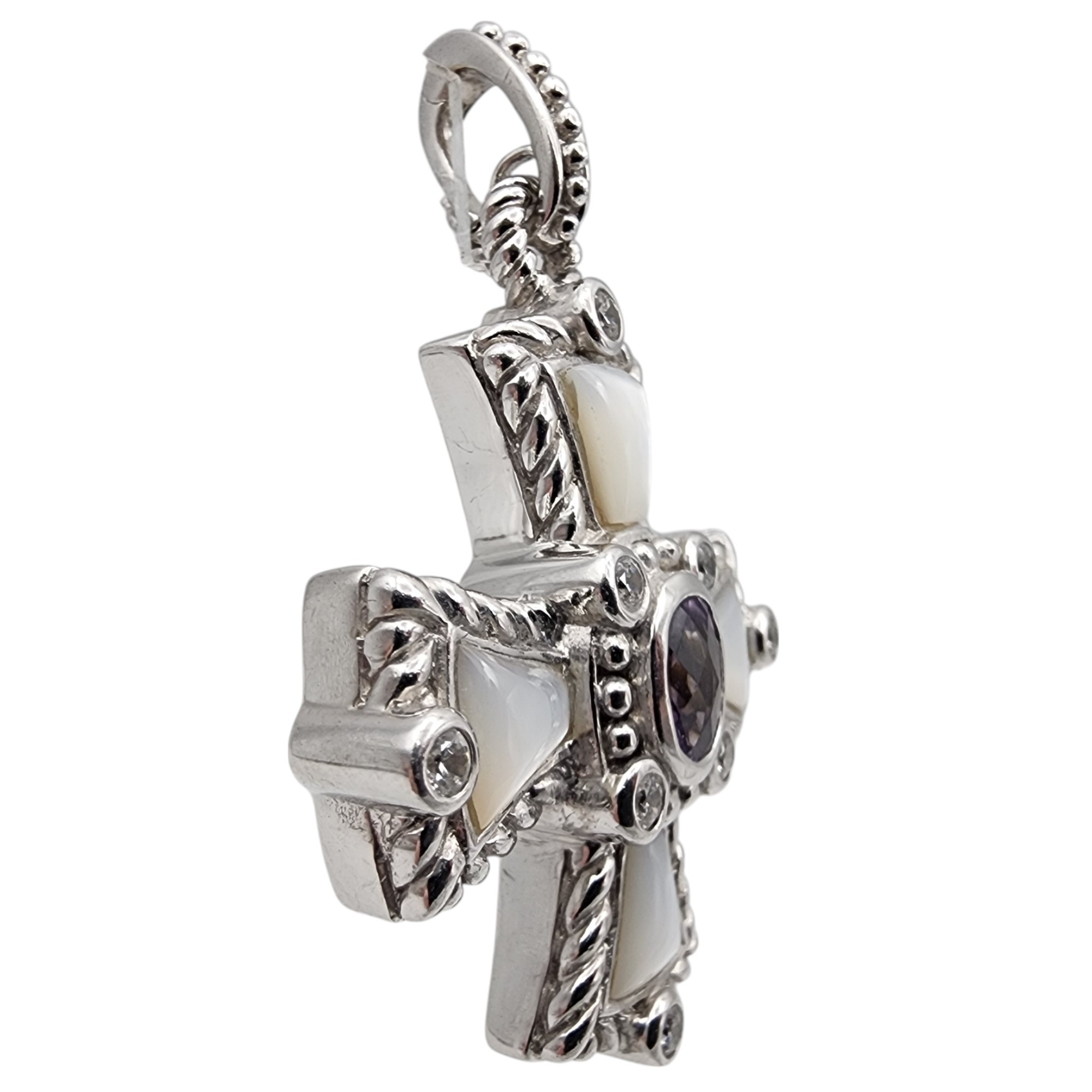 Judith Ripka Sterling Amethyst Mother of Pearl Diamonique Cross Pendant 20.4g