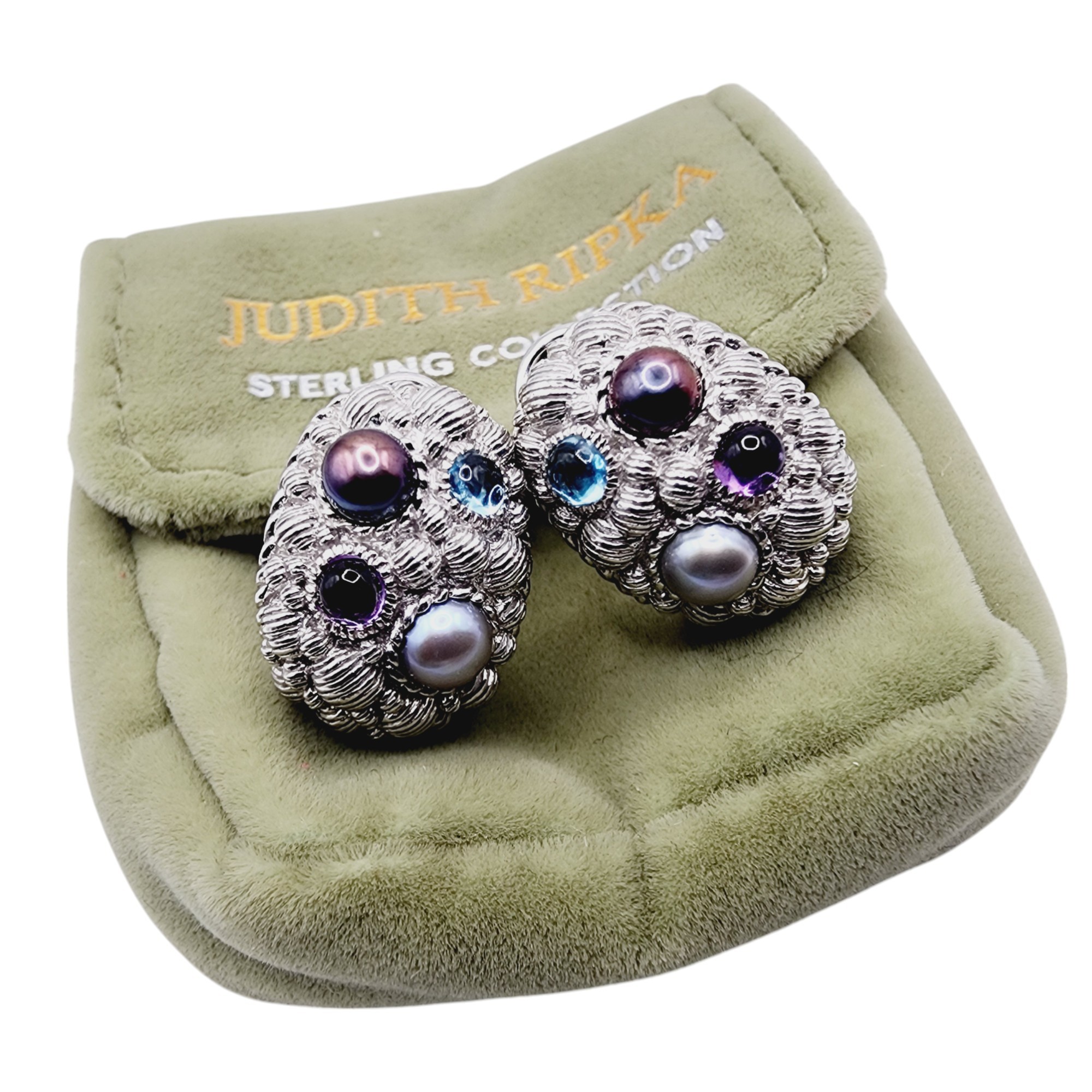 Judith Ripka Sterling Gemstone Pearl Cabachon Earrings 15.6g, with dust bag