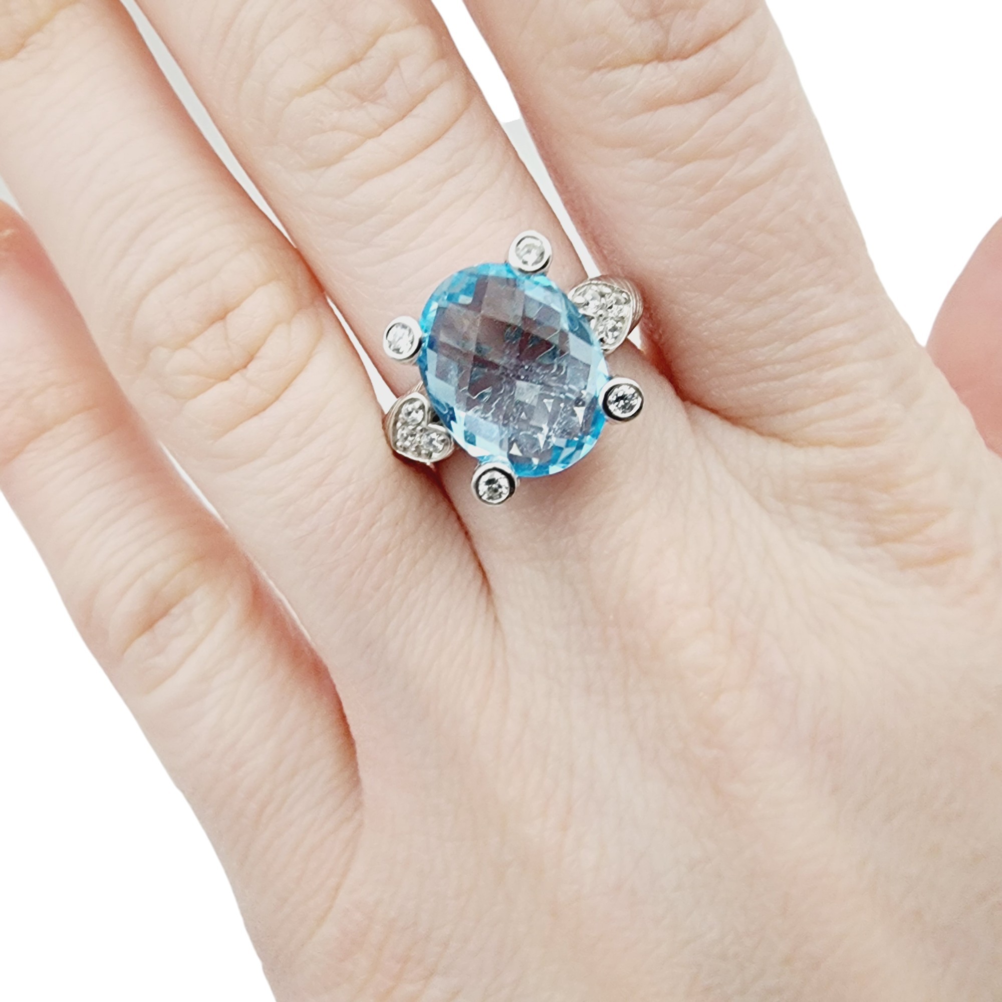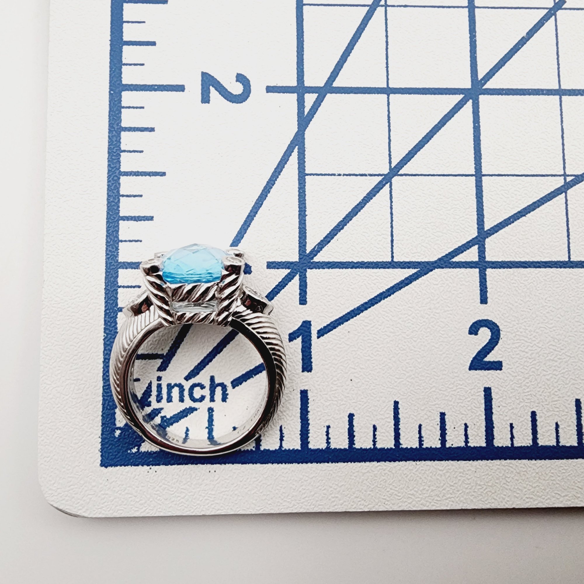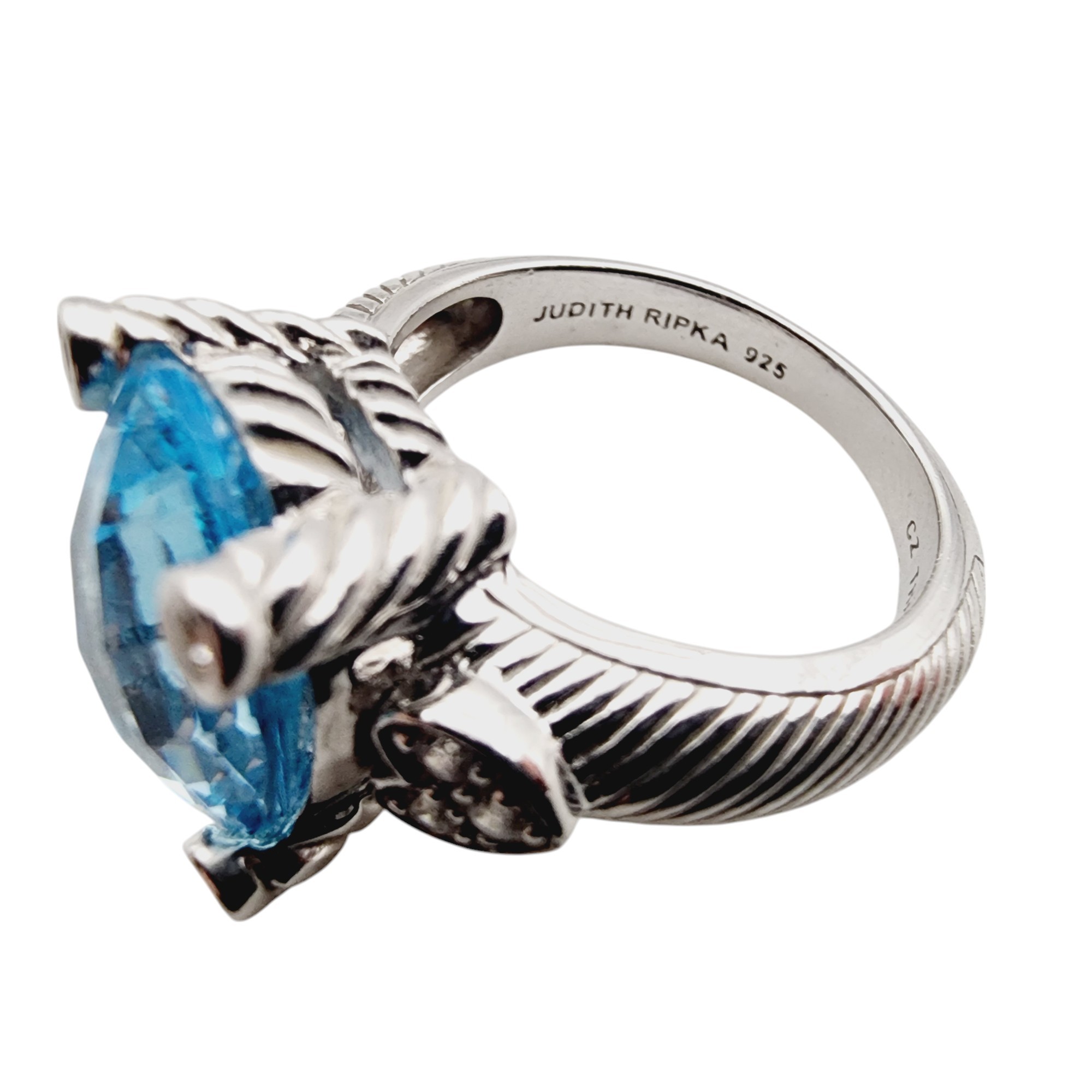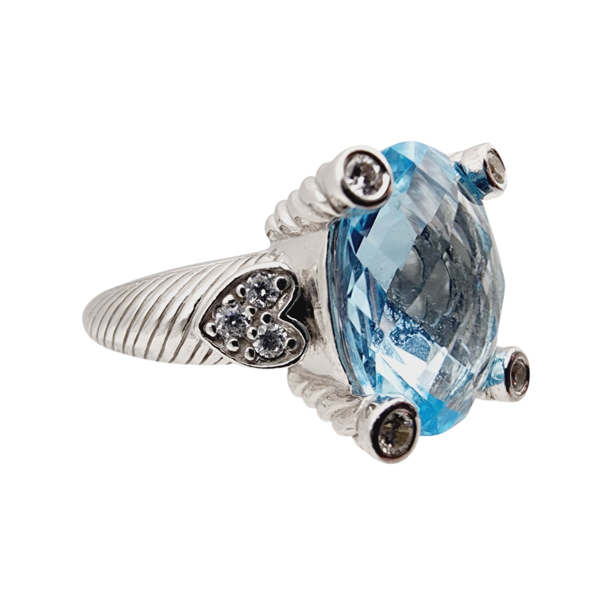 Judith Ripka Sterling Blue Topaz CZ Heart Ring Sz 7 8.3g, may possibly be a blue quartz or aquamarine stone.