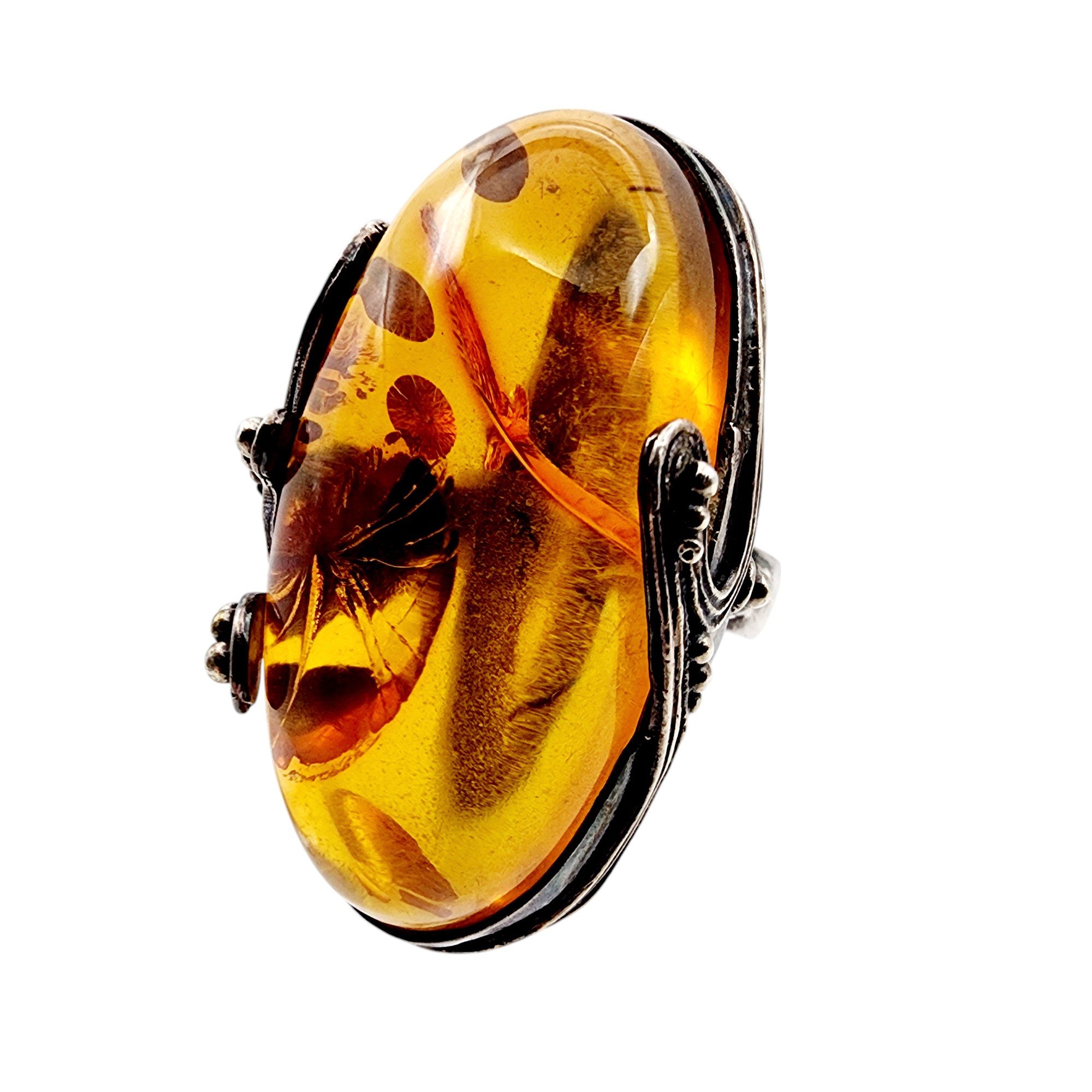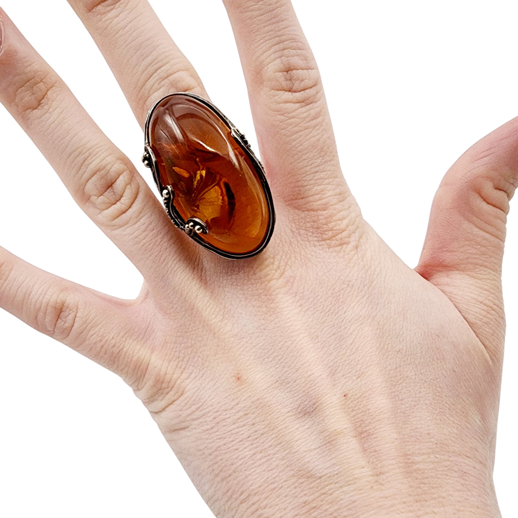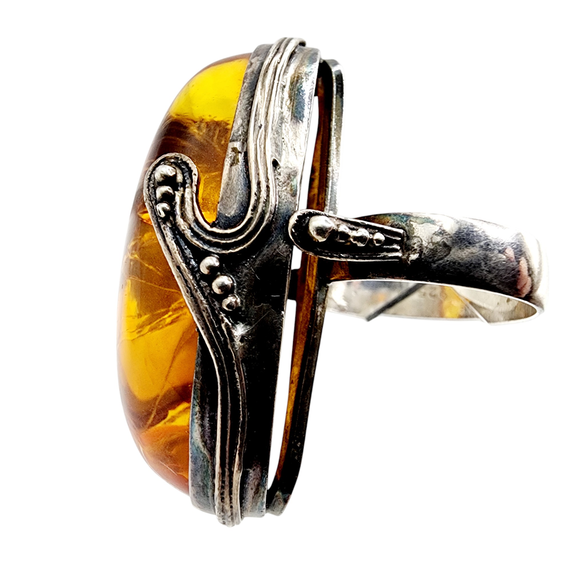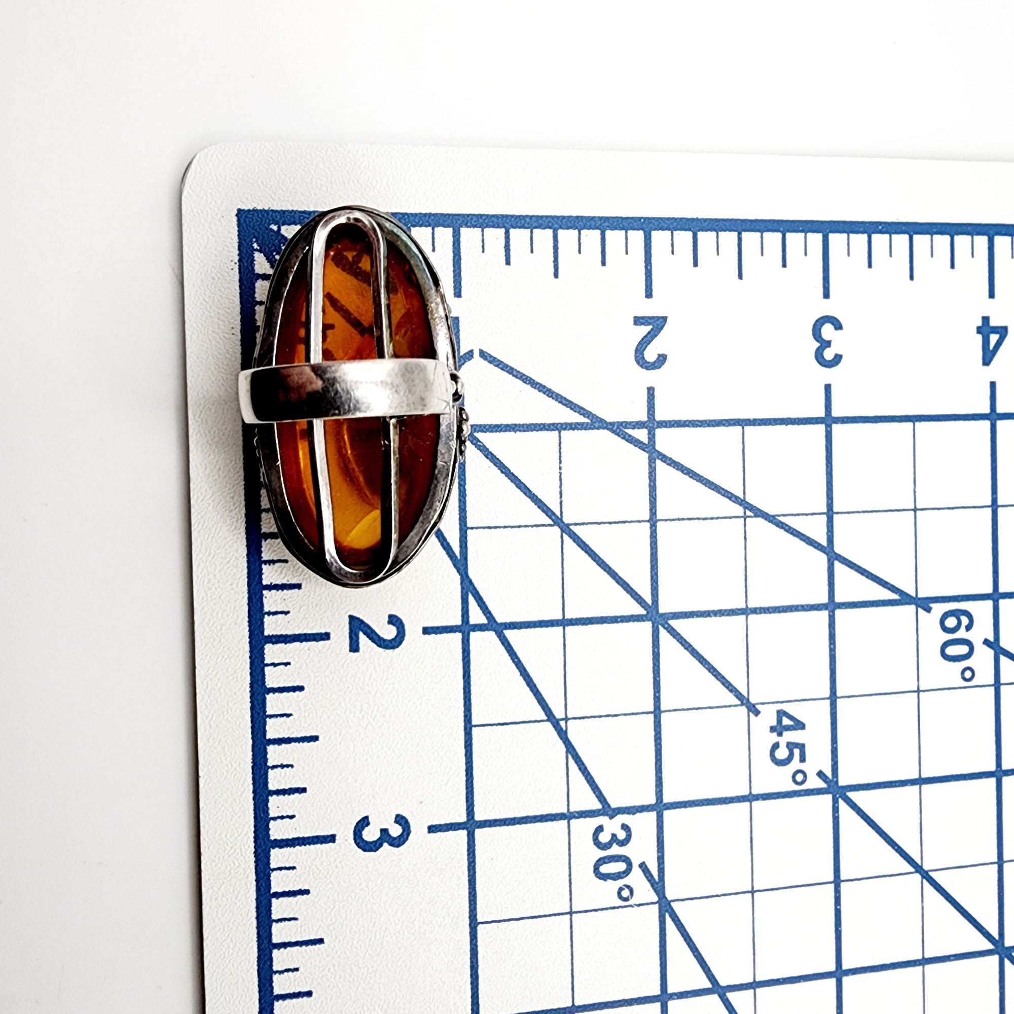 Huge Vintage Sterling Brutalist Amber Ring Sz 7 19.5g