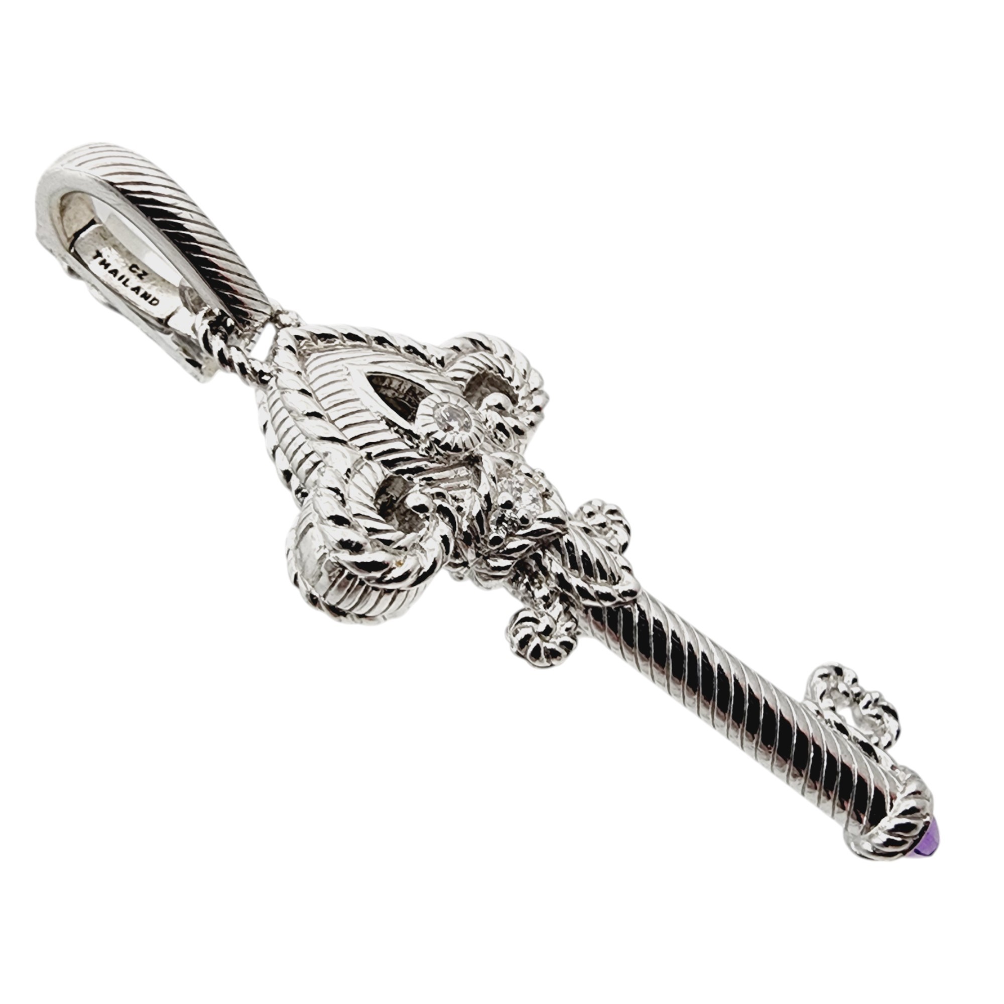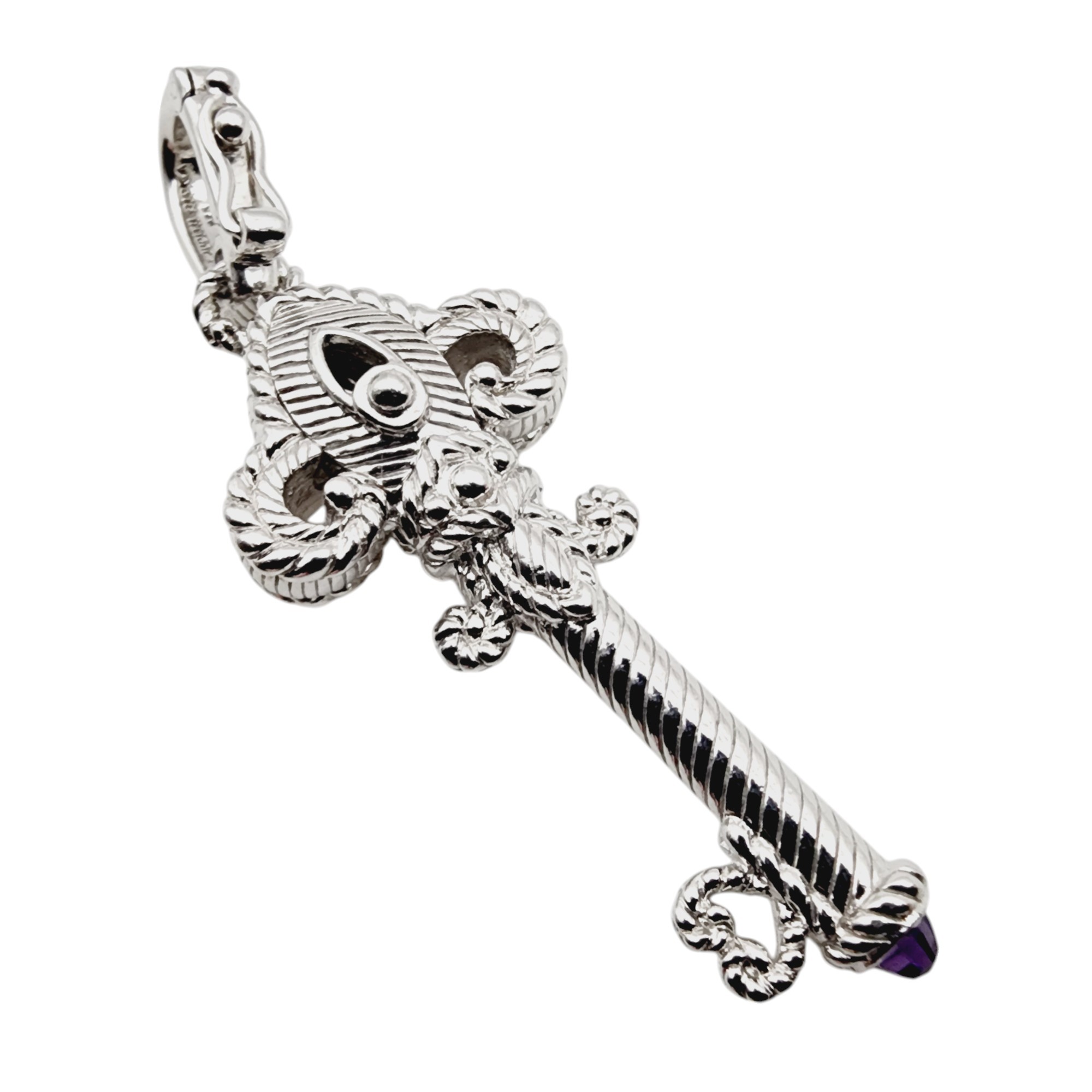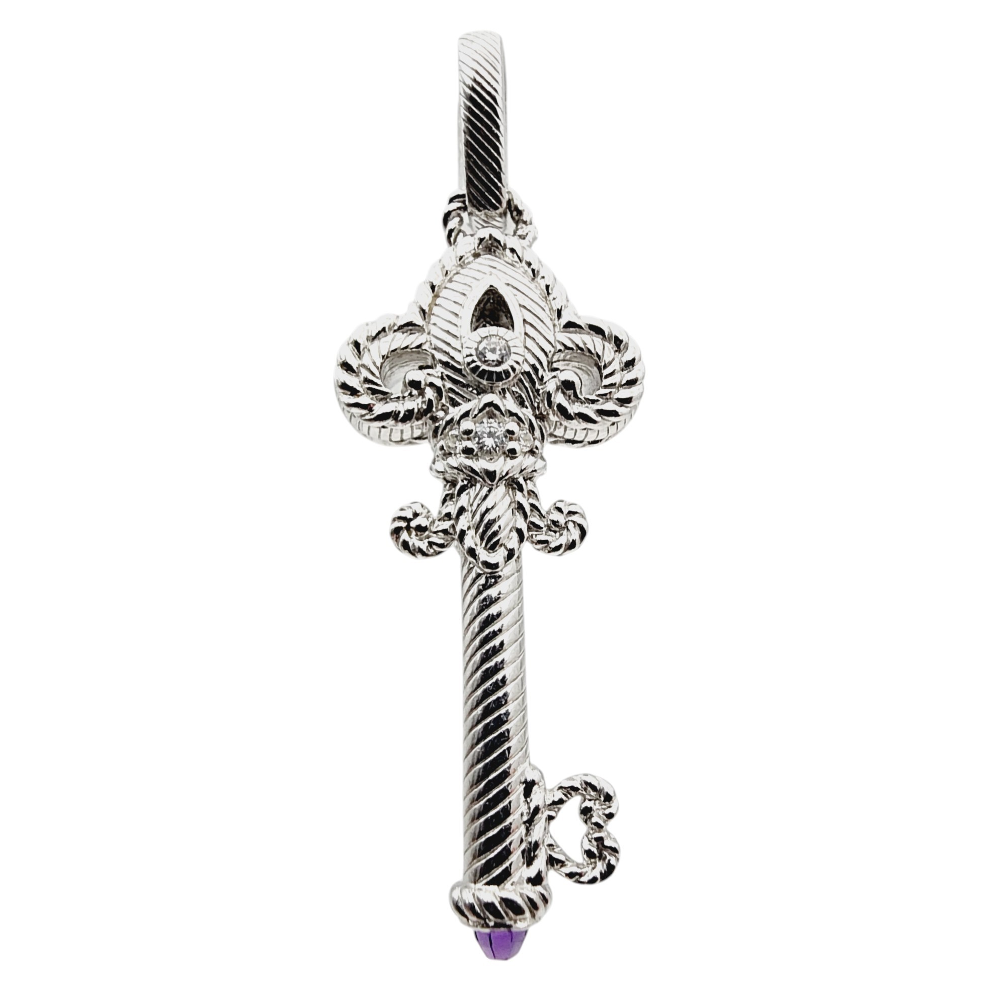 Judith Ripka Sterling Amethyst CZ Key Pendant 10.9g