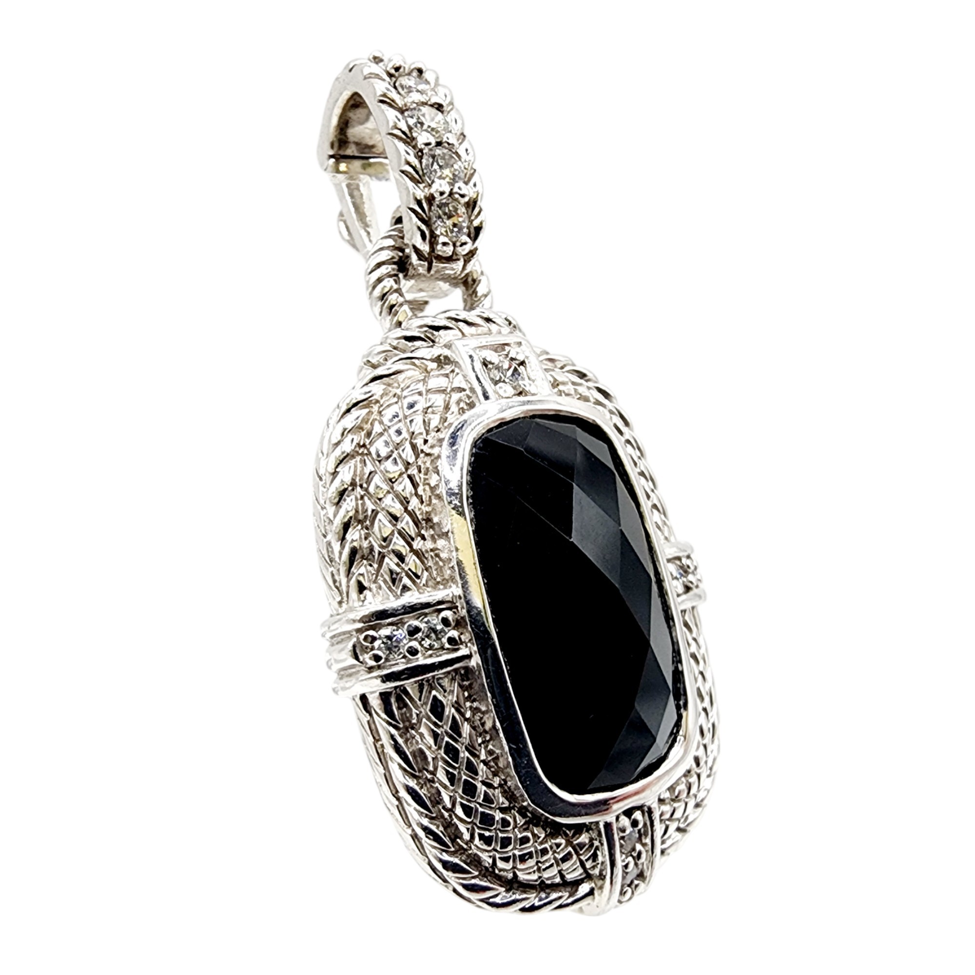 Judith Ripka Sterling Onyx CZ Faceted Pendant 10.8g