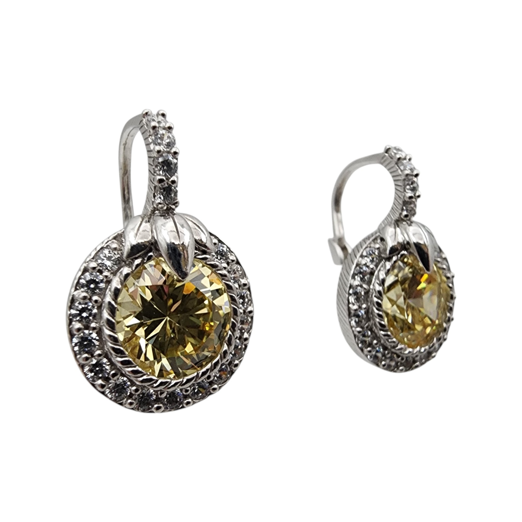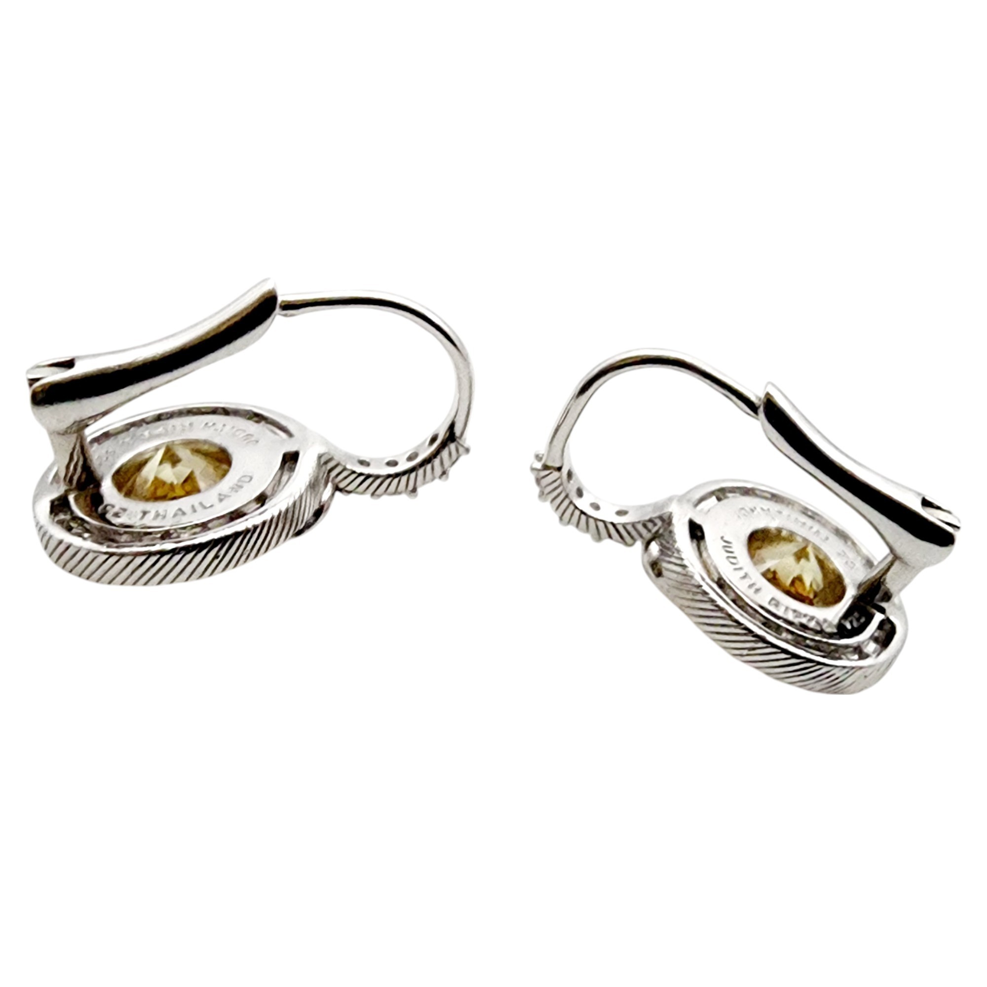 Judith Ripka Sterling Yellow and White Diamonique Lotus Earrings 9.6g