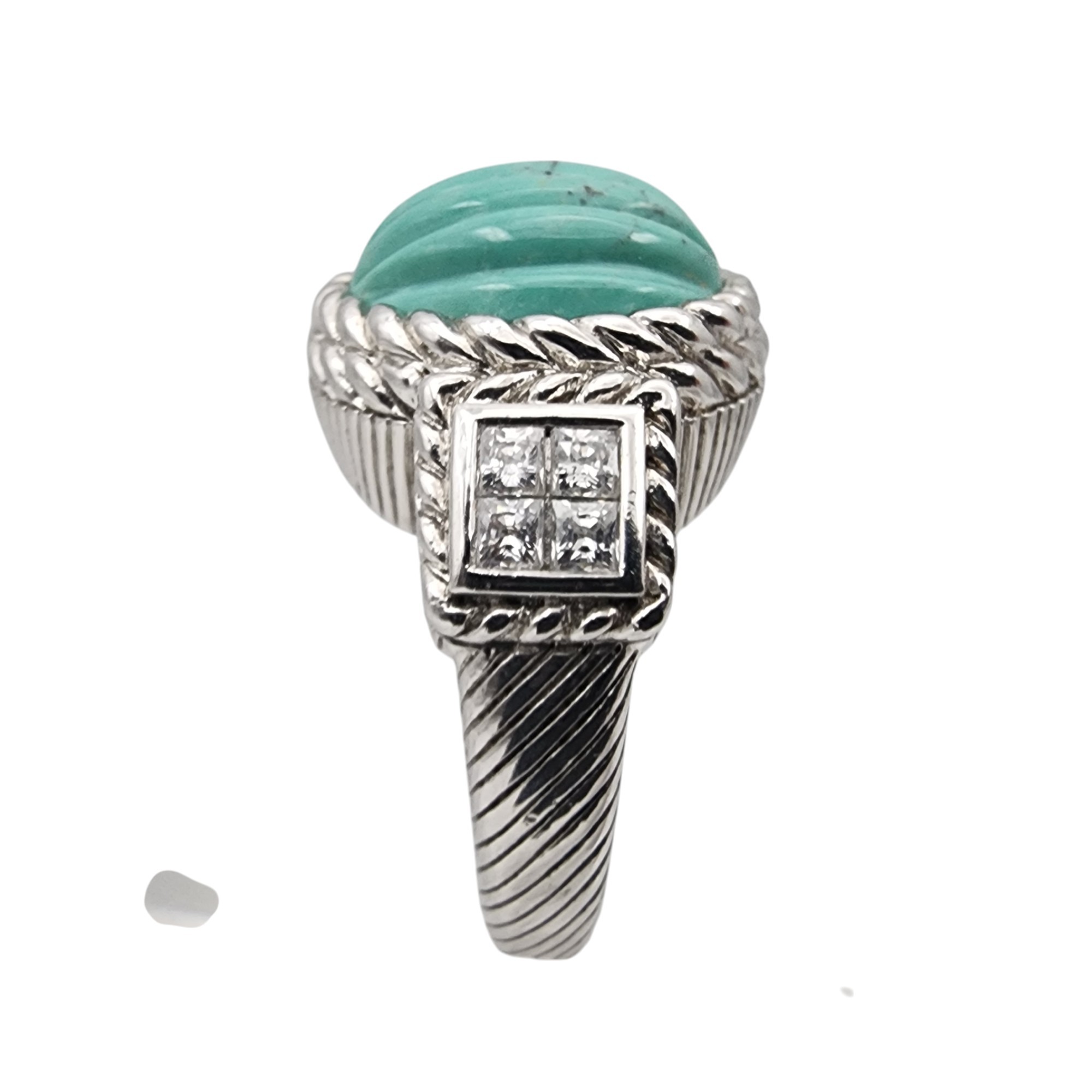 Judith Ripka Sterling Carved Turquoise CZ Ring Sz 8 11.5g
