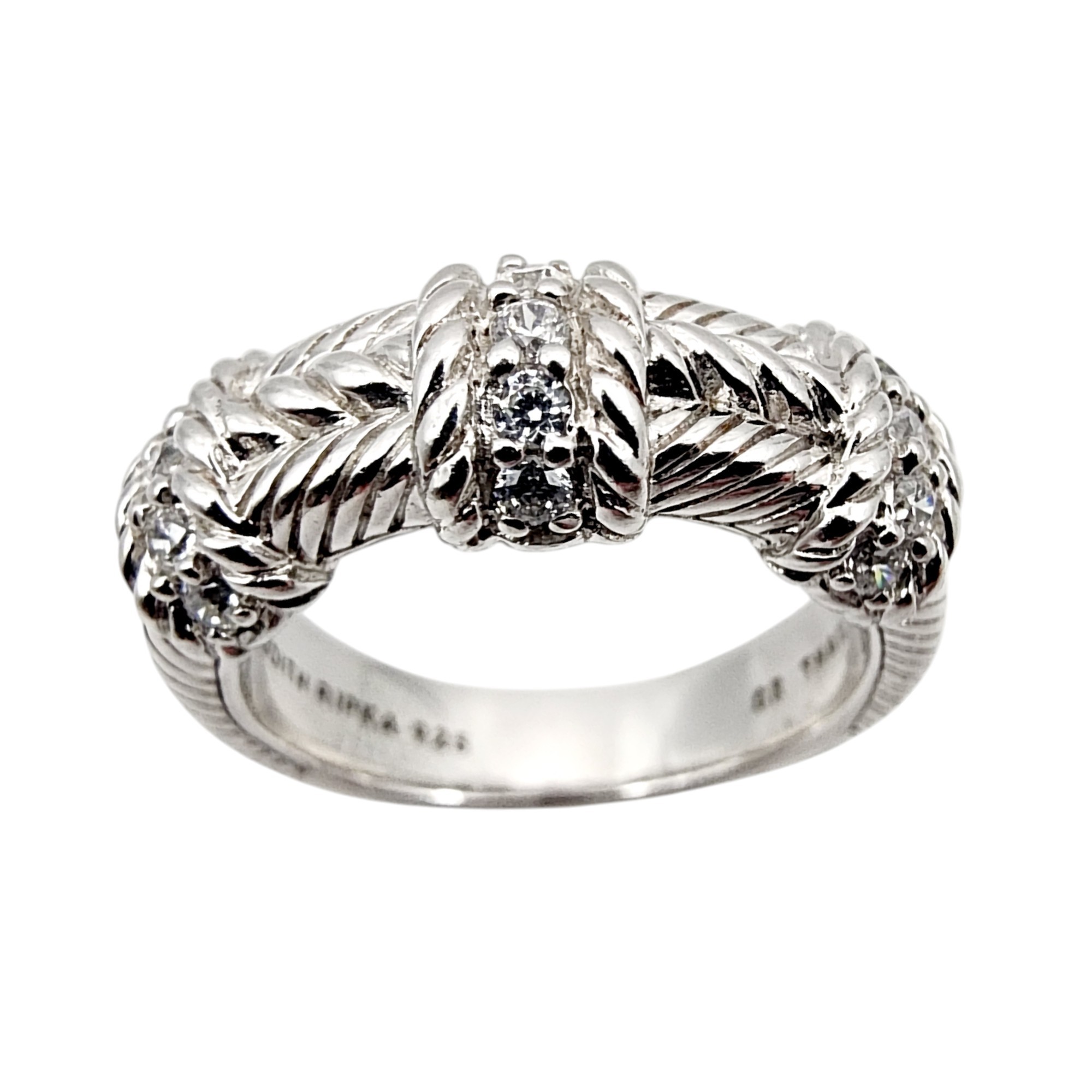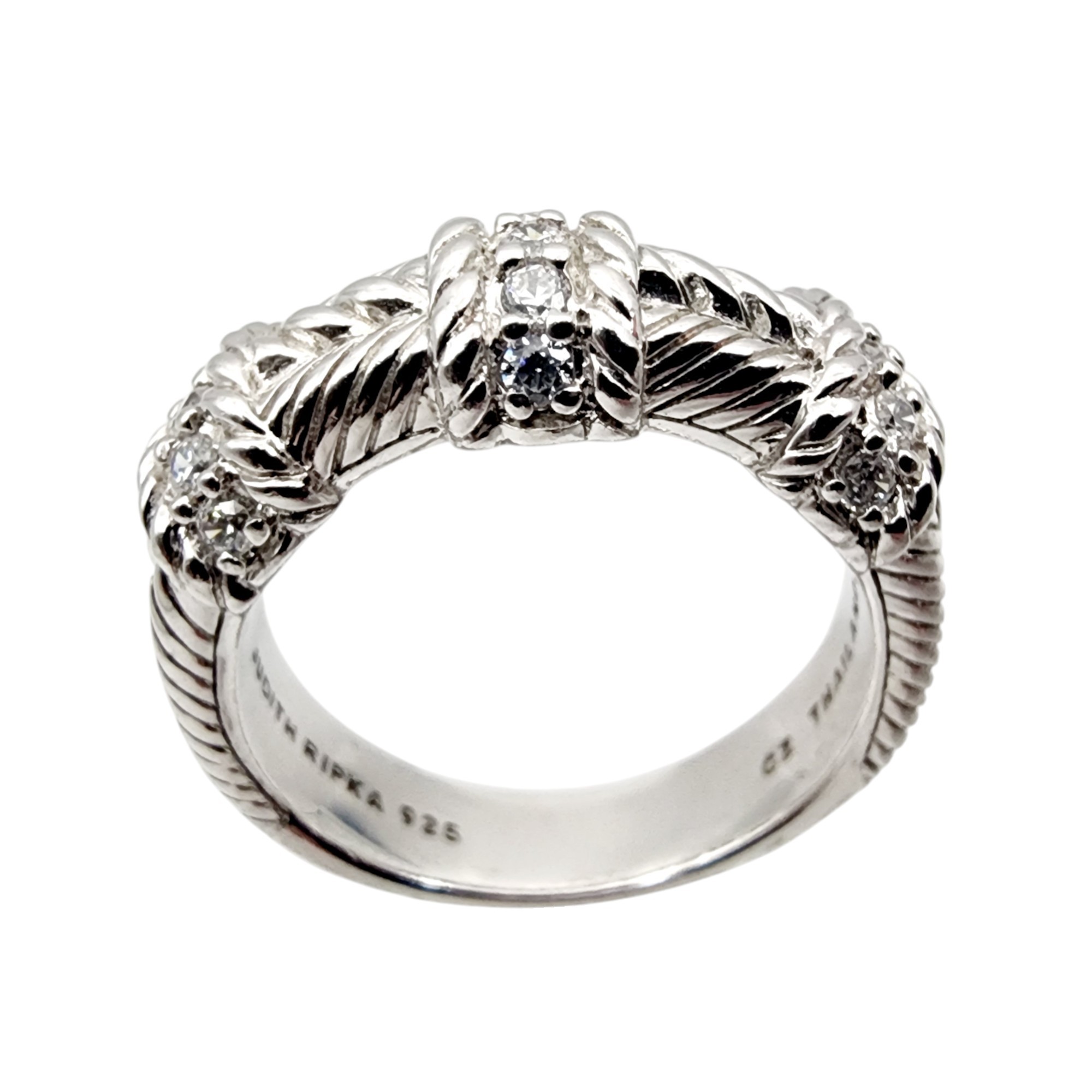 Judith Ripka Sterling CZ Rope Band Ring Sz 9 8.4g