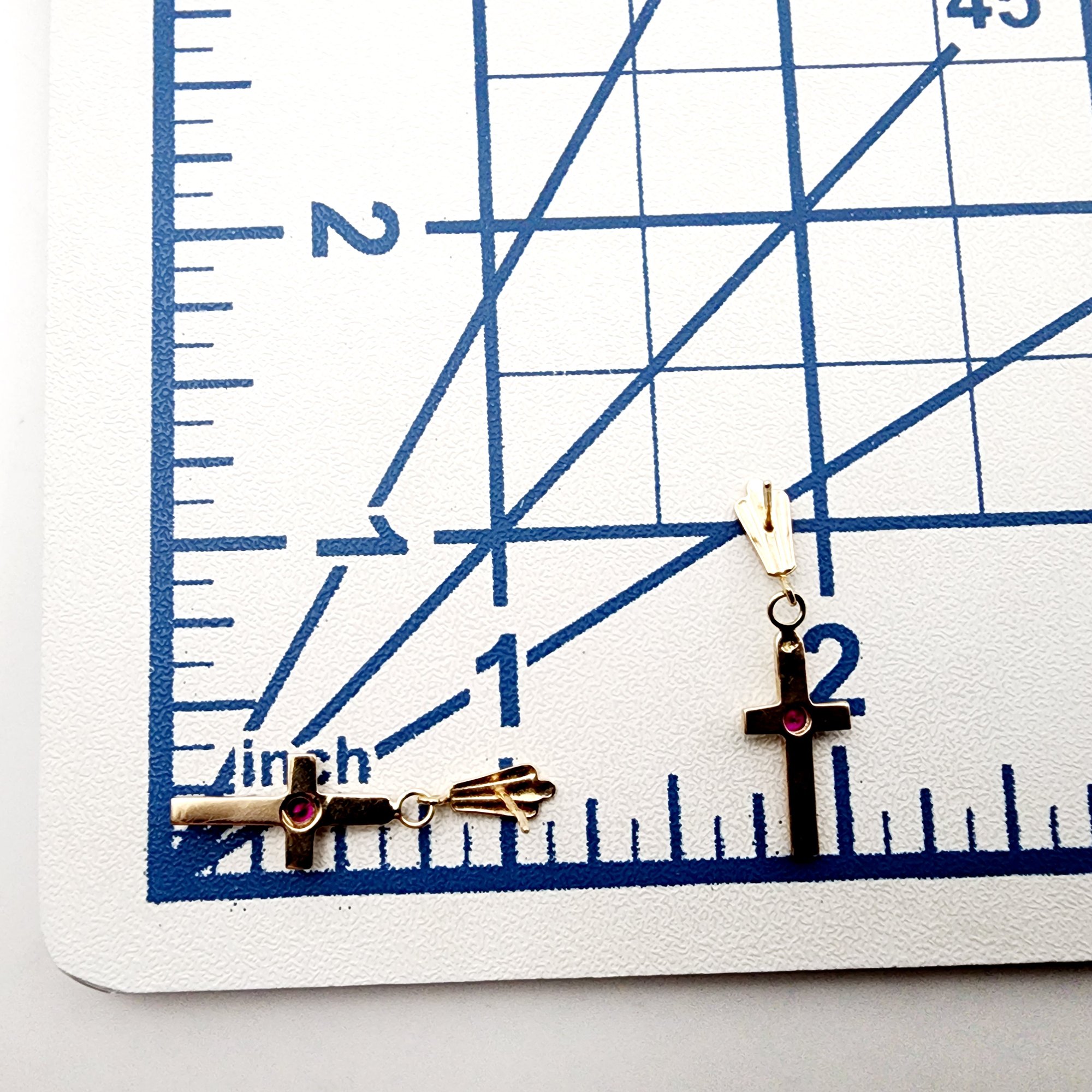 14k Gold Signed Ruby Cross Dangle Earrings 1.6g