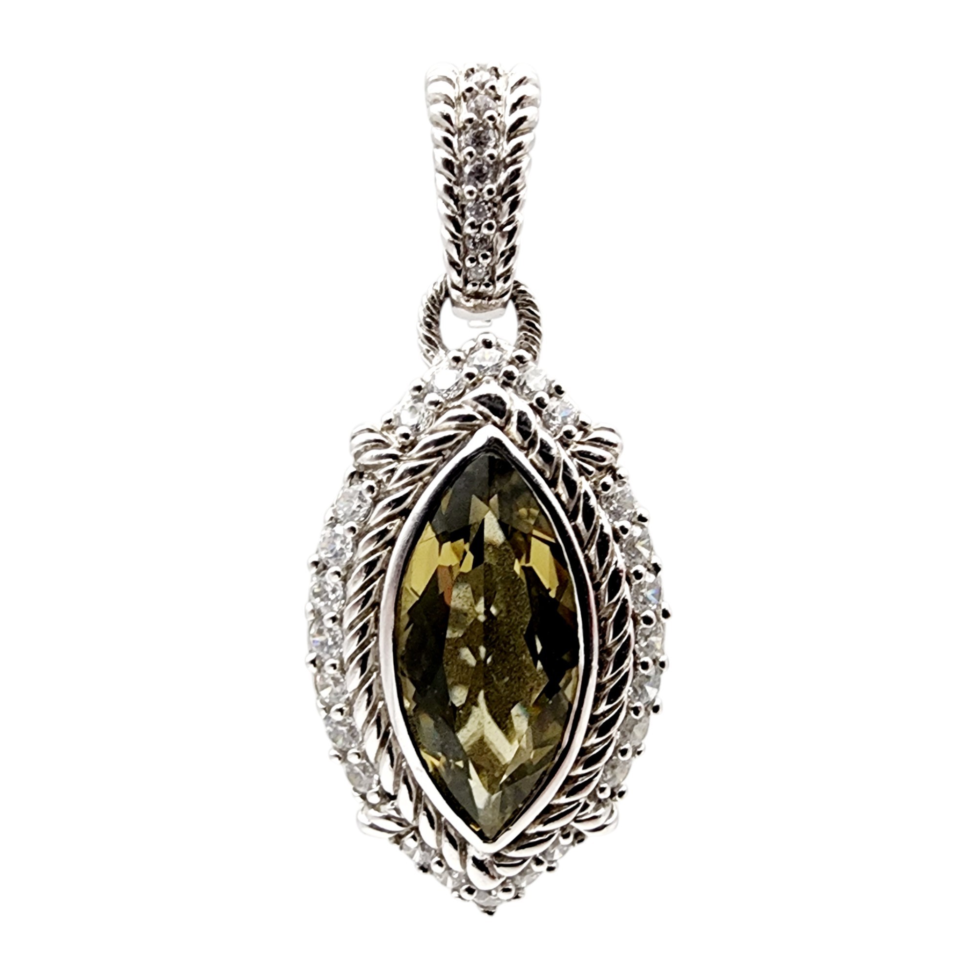 Judith Ripka Sterling Prasiolite CZ Marquise Pendant 12.1g