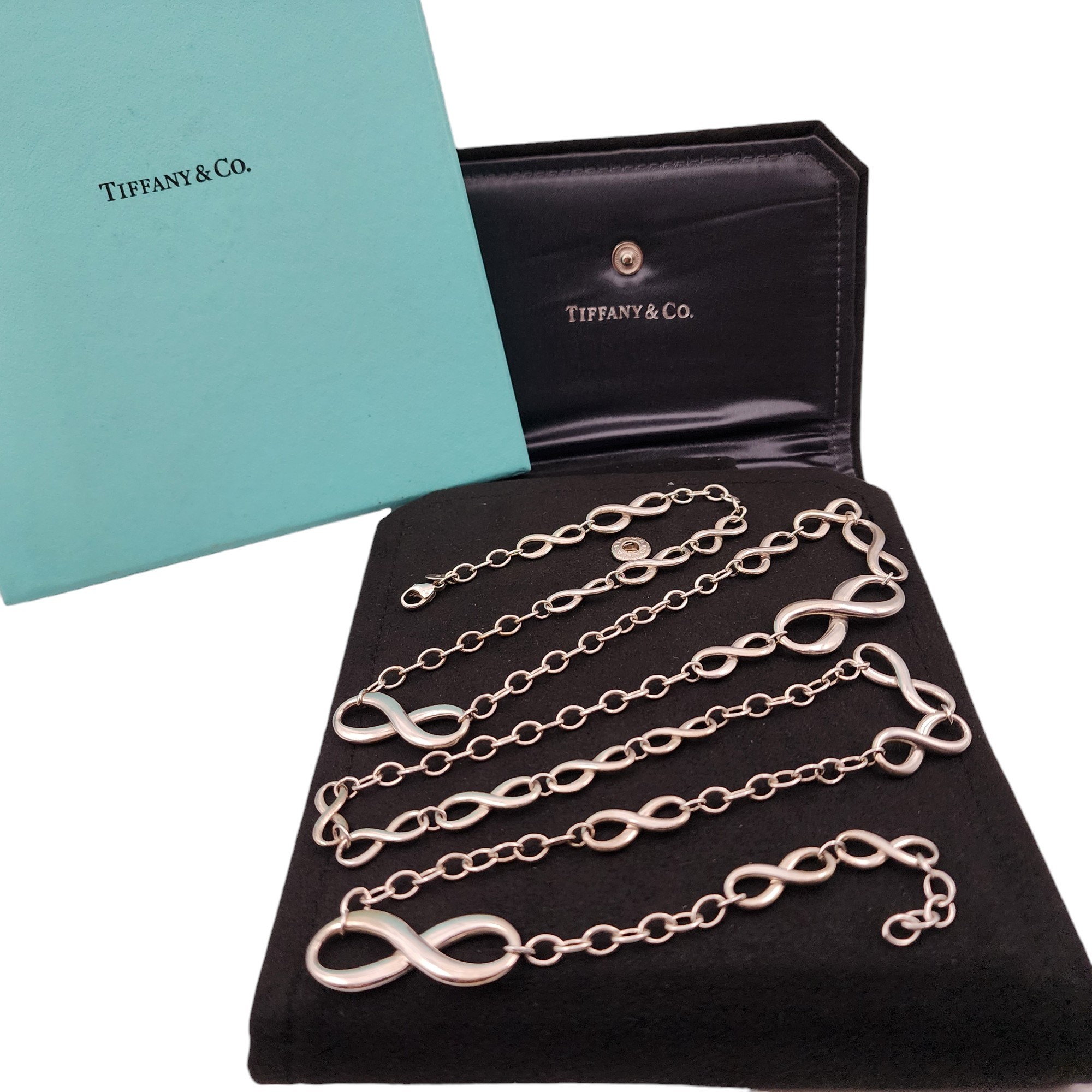 Rare Tiffany & Co. Sterling Endless Infinity Necklace 51.2g, comes with Tiffany box and black suede Tiffany & Co. folding storage case.
