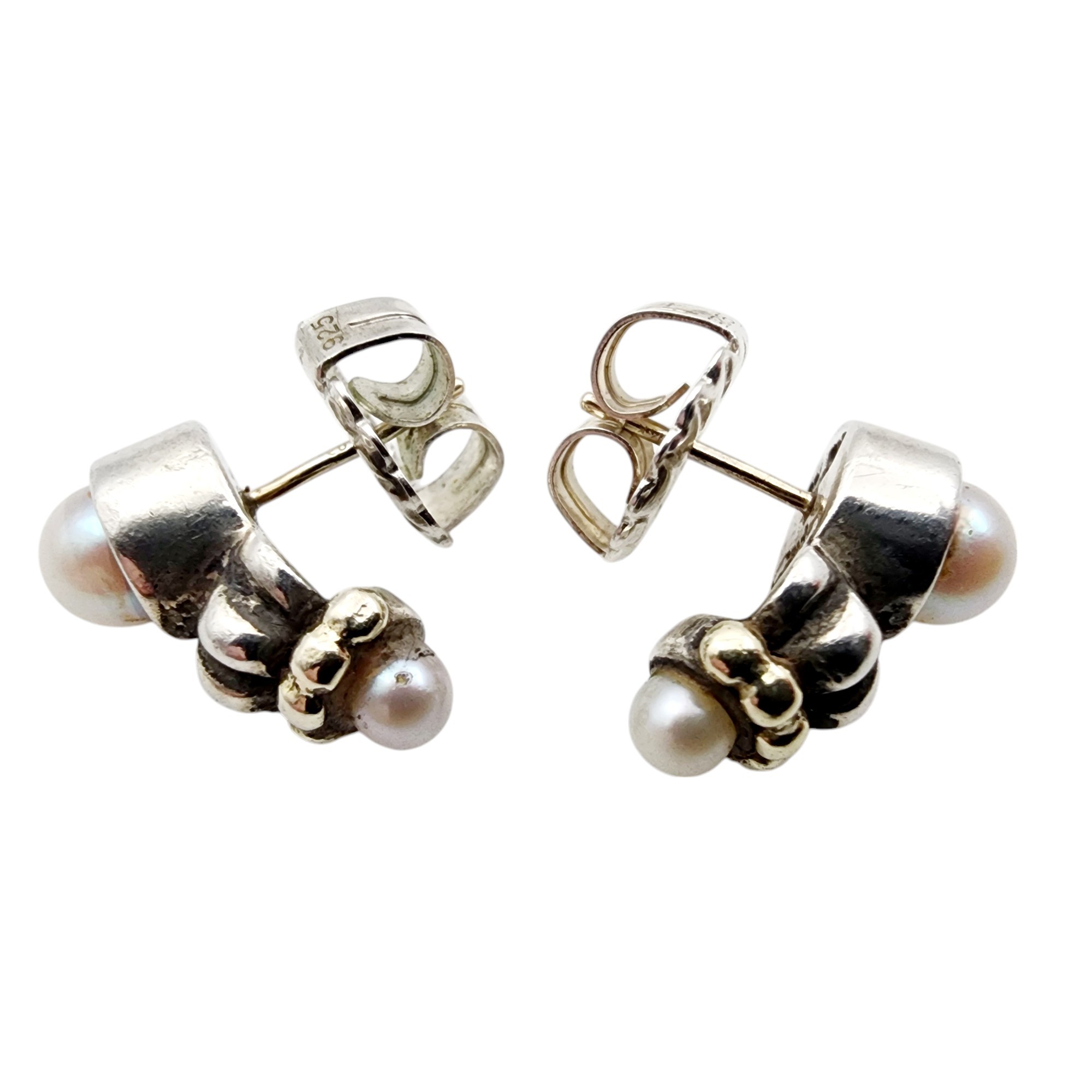 Lagos Caviar 18k Gold Sterling Pearl Earrings 5.5g