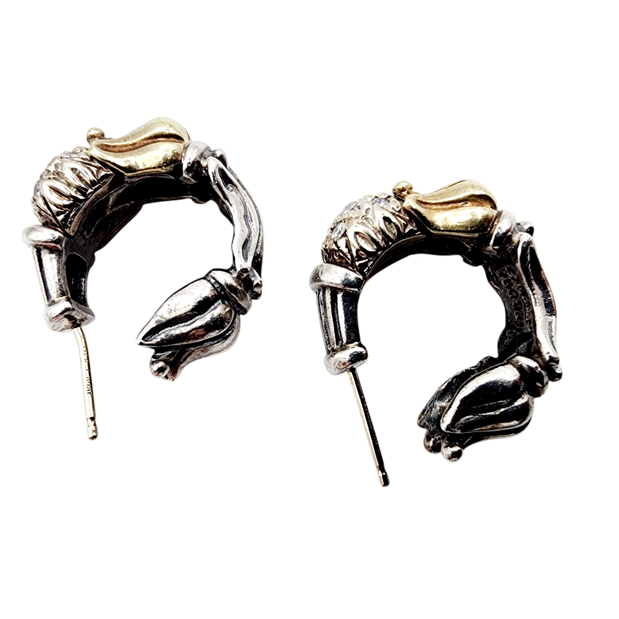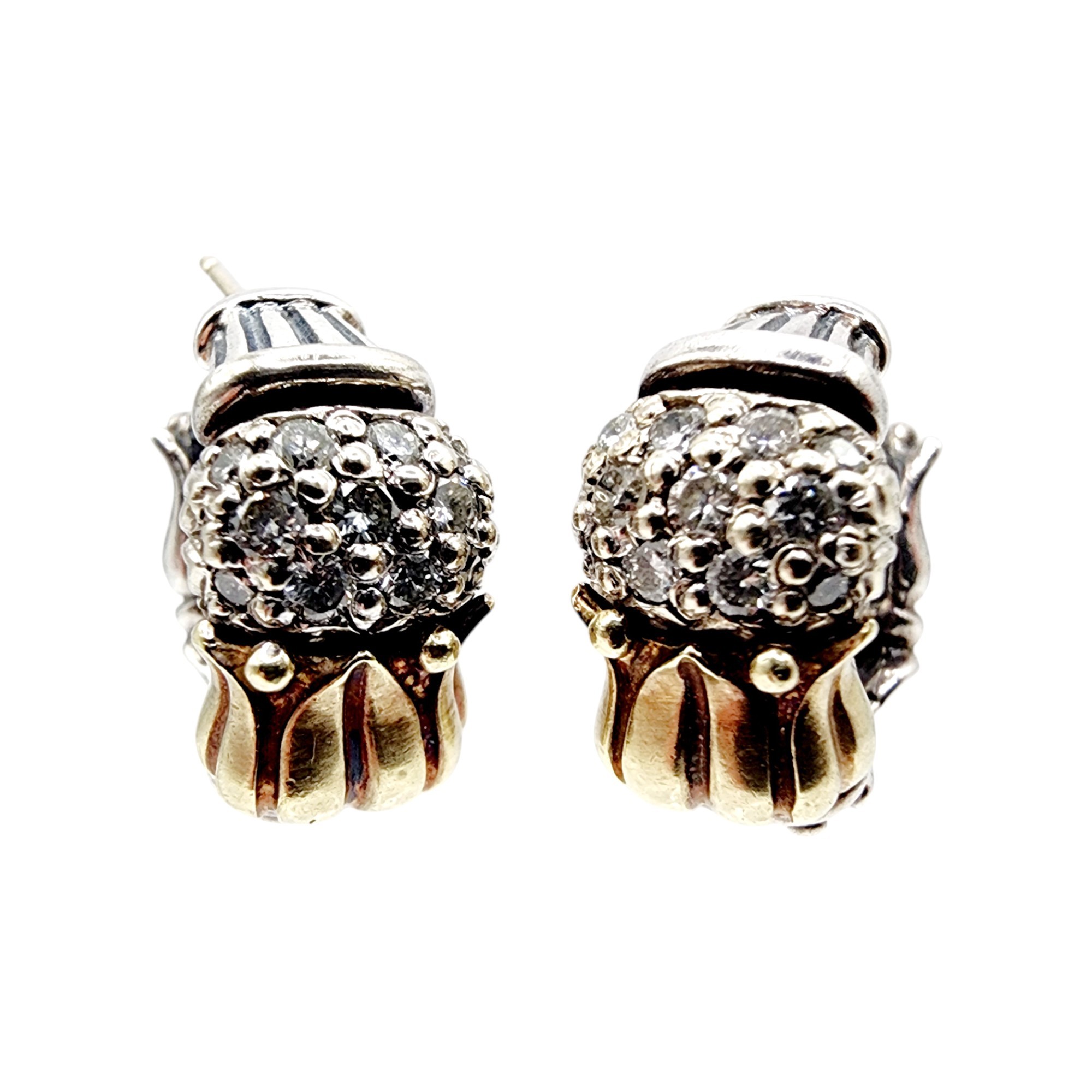 Lagos Caviar 18kt Gold and Sterling Arcadian Tulip Diamond Earrings 14.5g