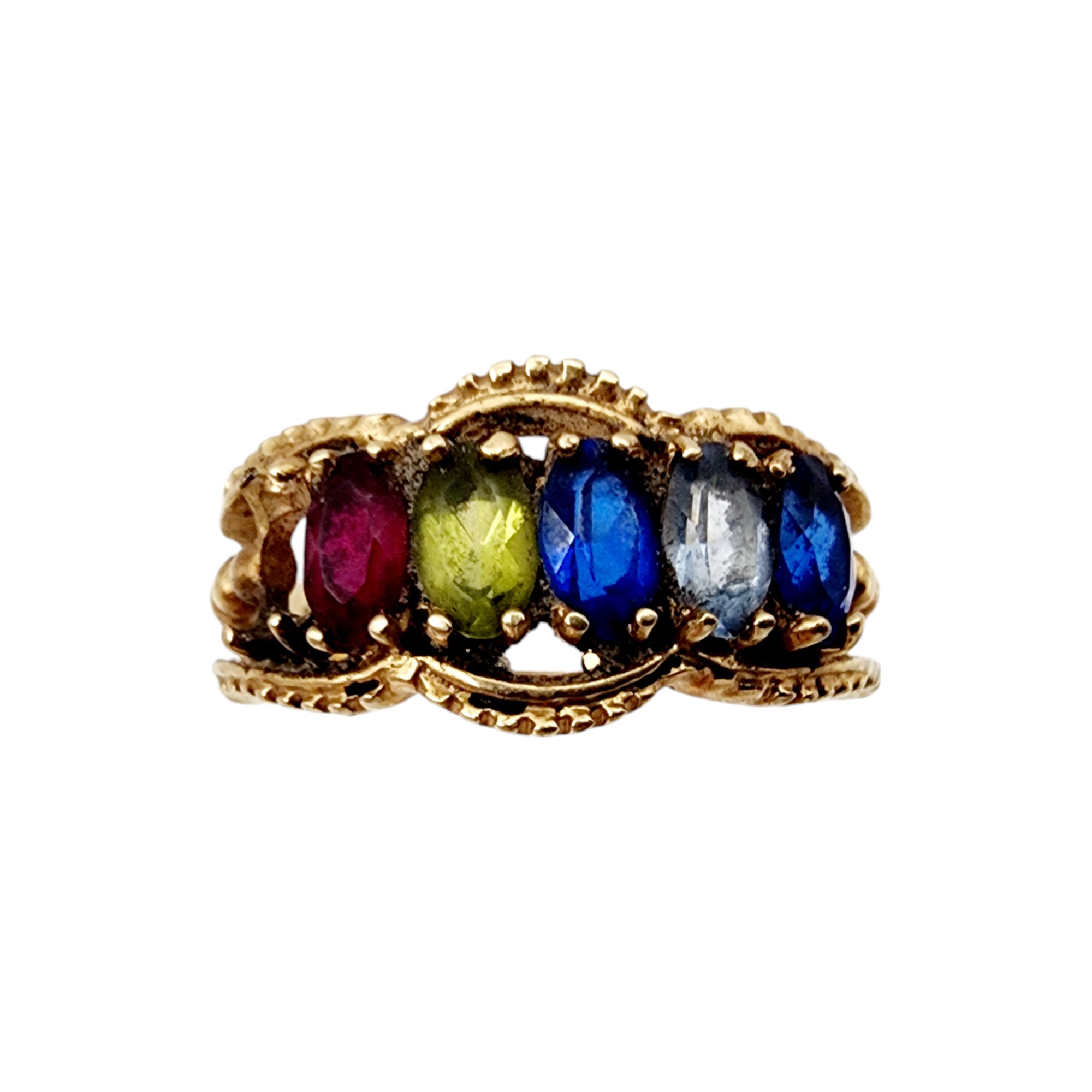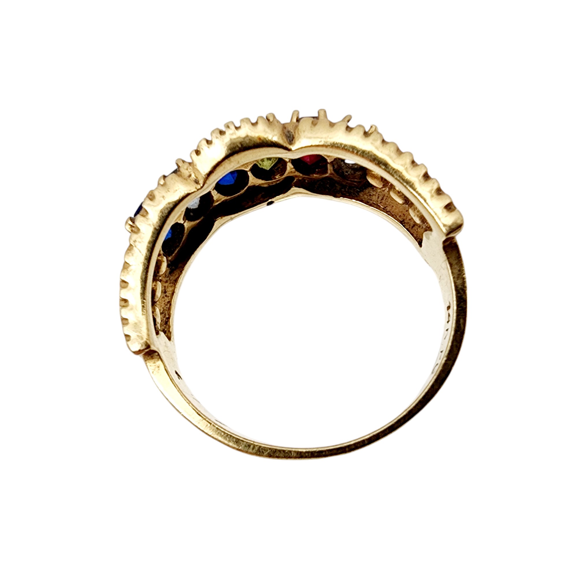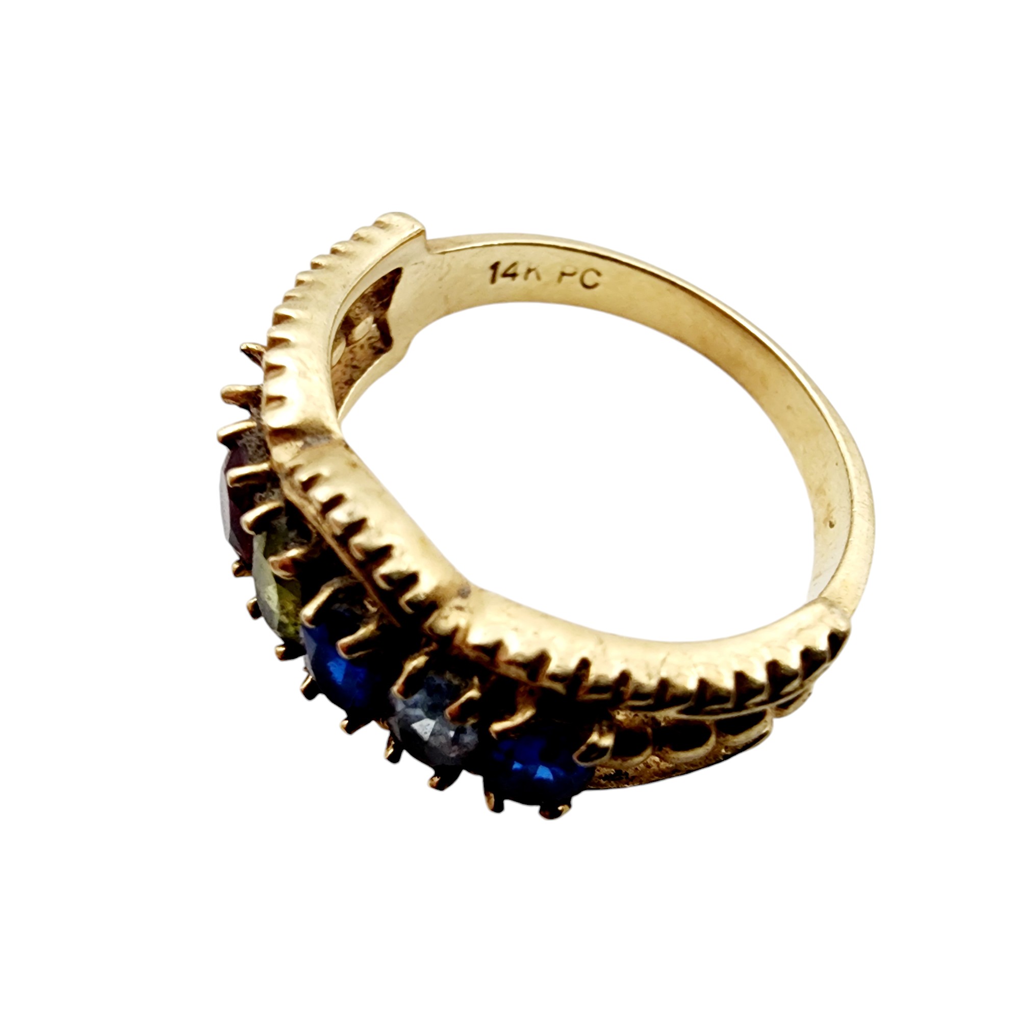 14k Gold Signed Multigemstone Ring Sz 6.5 4g, as is missing stone