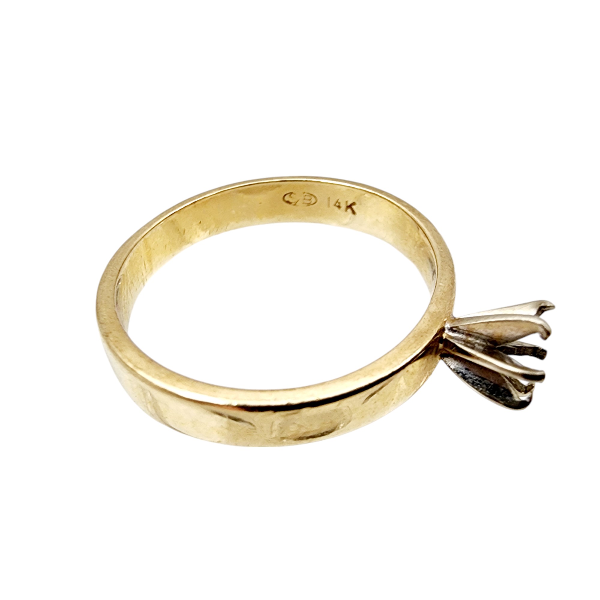 14k Gold Signed Ring Sz 5.5 2.3g, as is, missing stone