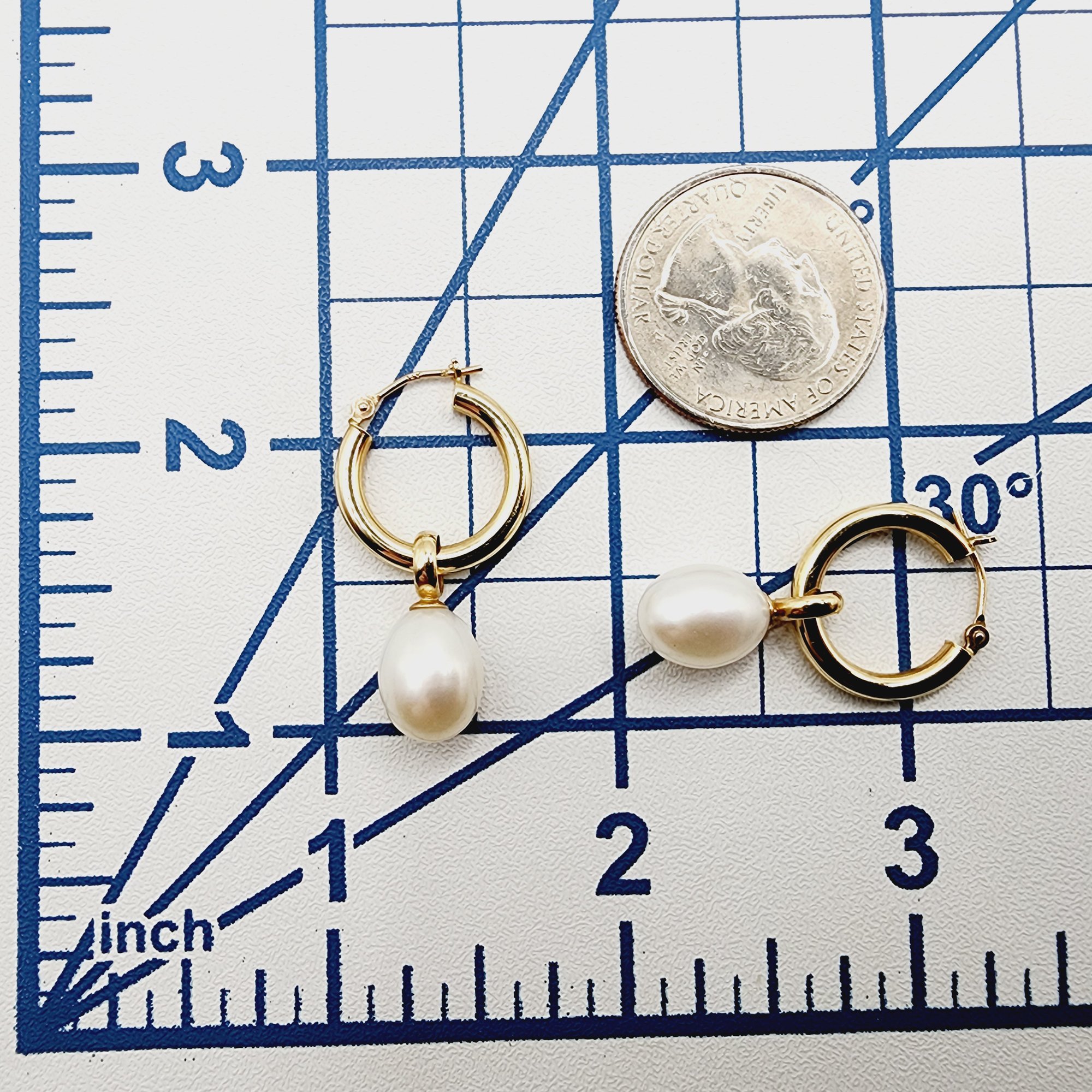 14k Gold Hoops W/ Pearl Charm Dangles Earrings 3.7g