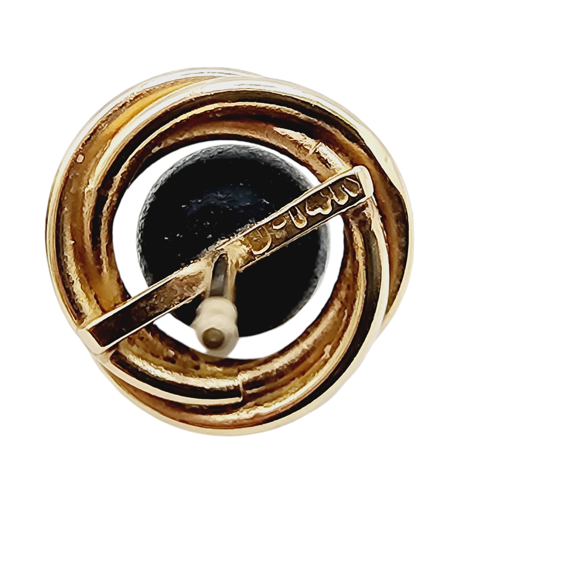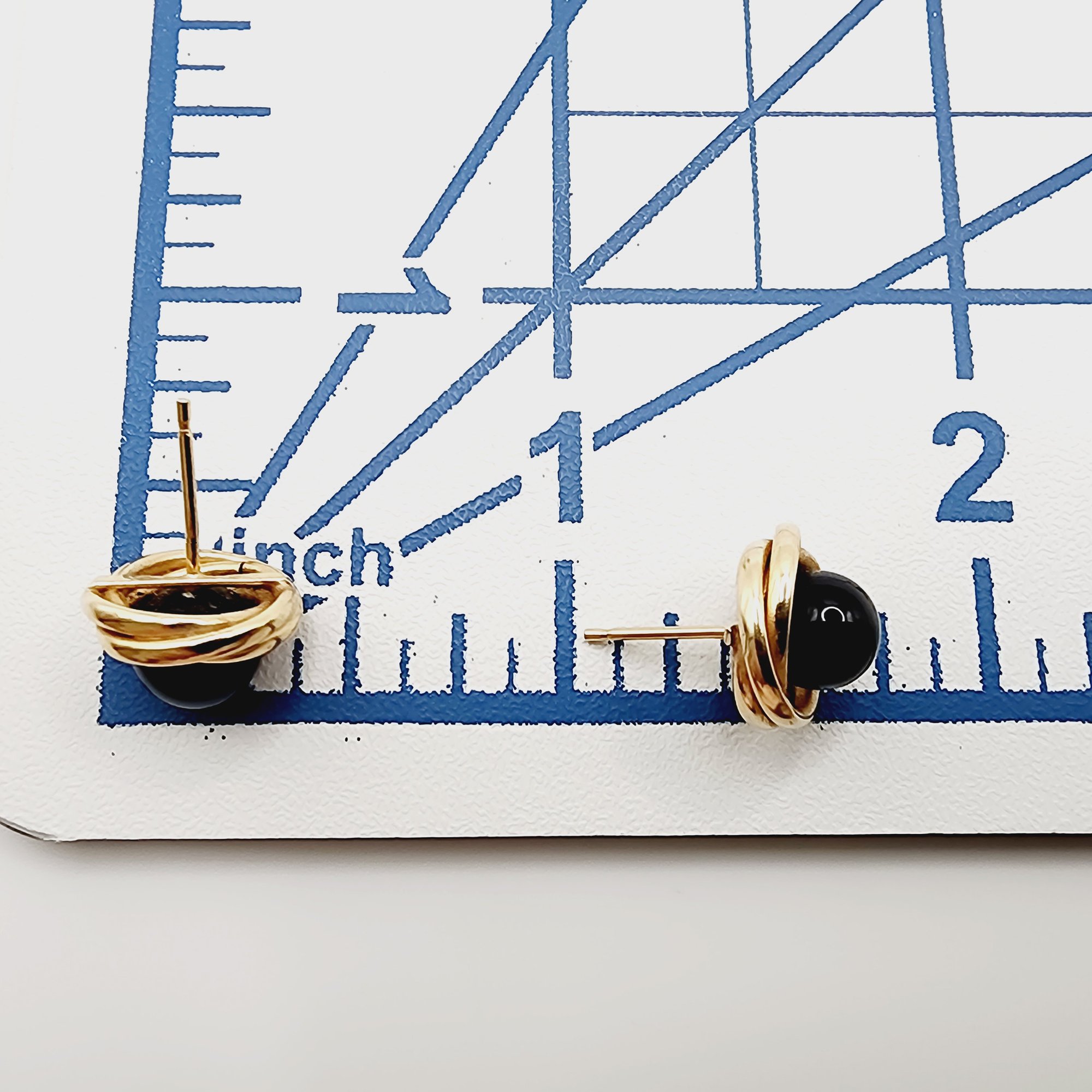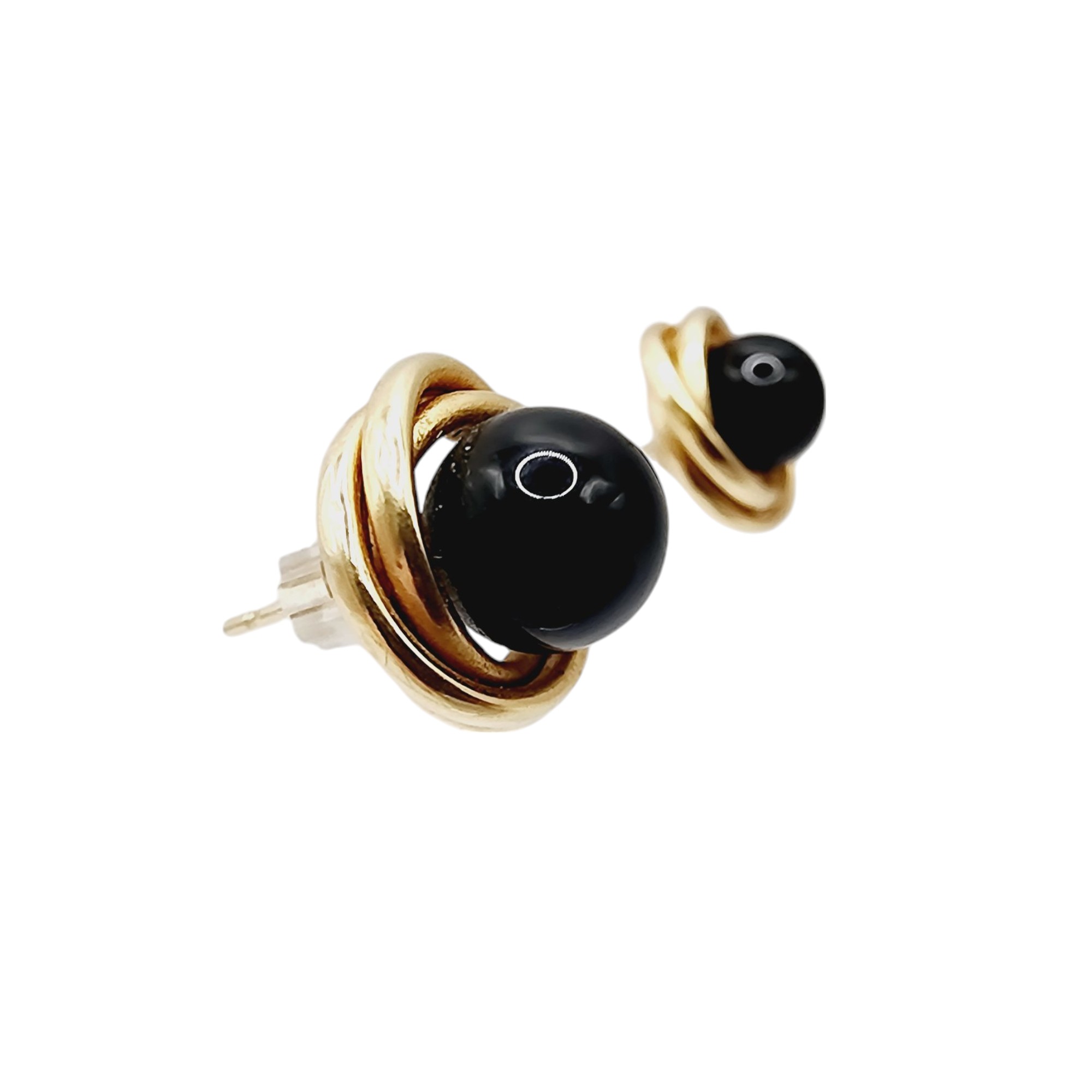 14k Gold Signed Onyx Orbit Stud Earrings No Backs 2.1g