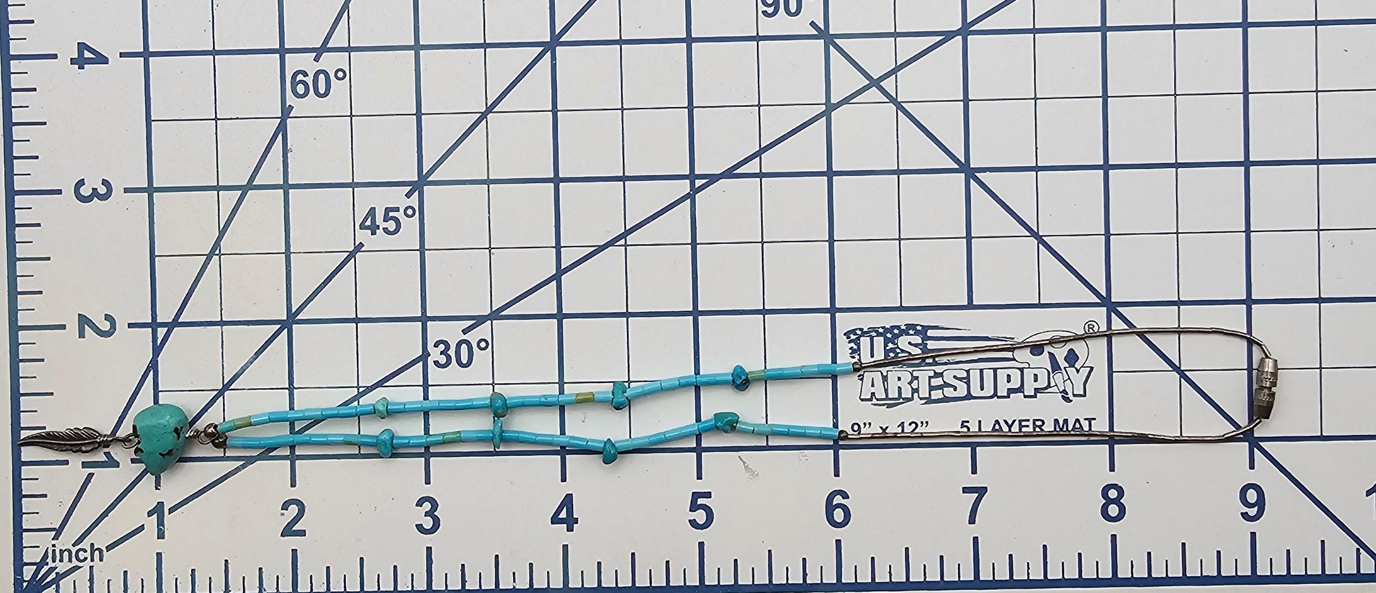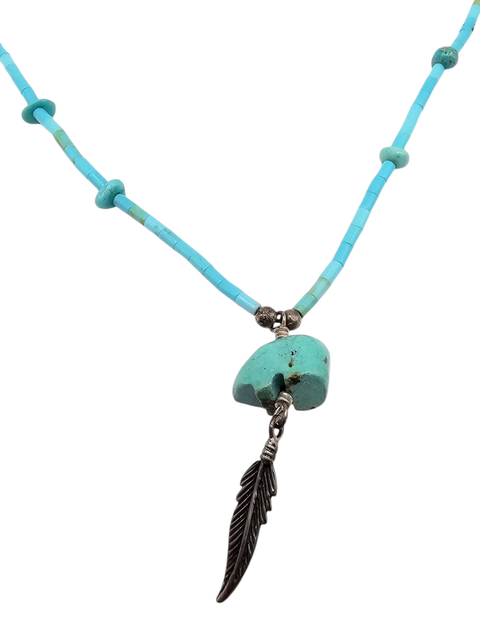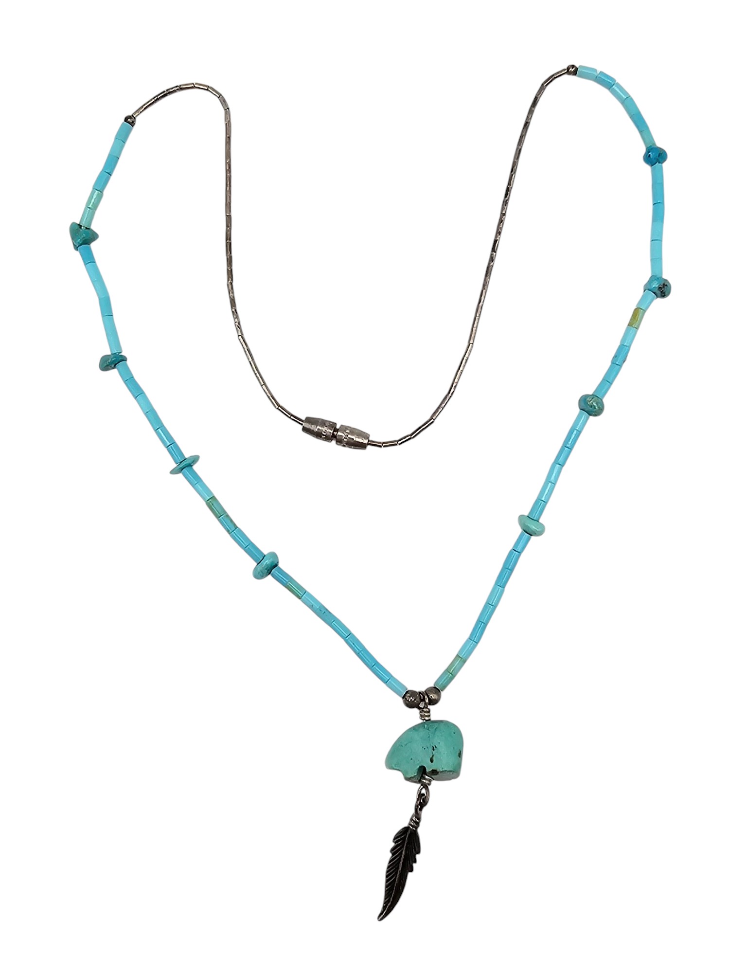 Vintage Navajo Carved Turquoise Bear Fetish Sterling Feather Liquid Sterling Necklace 4.5g