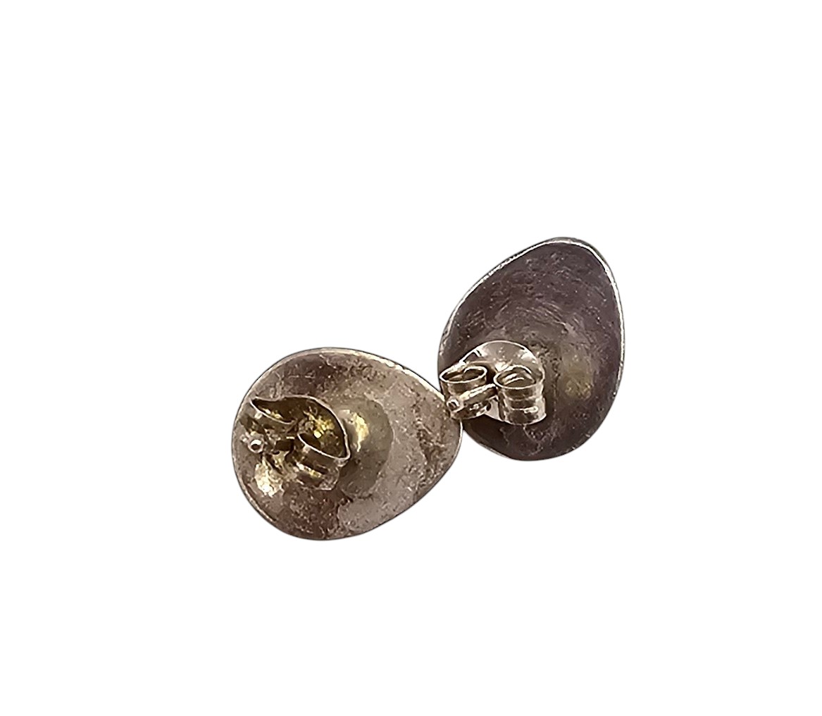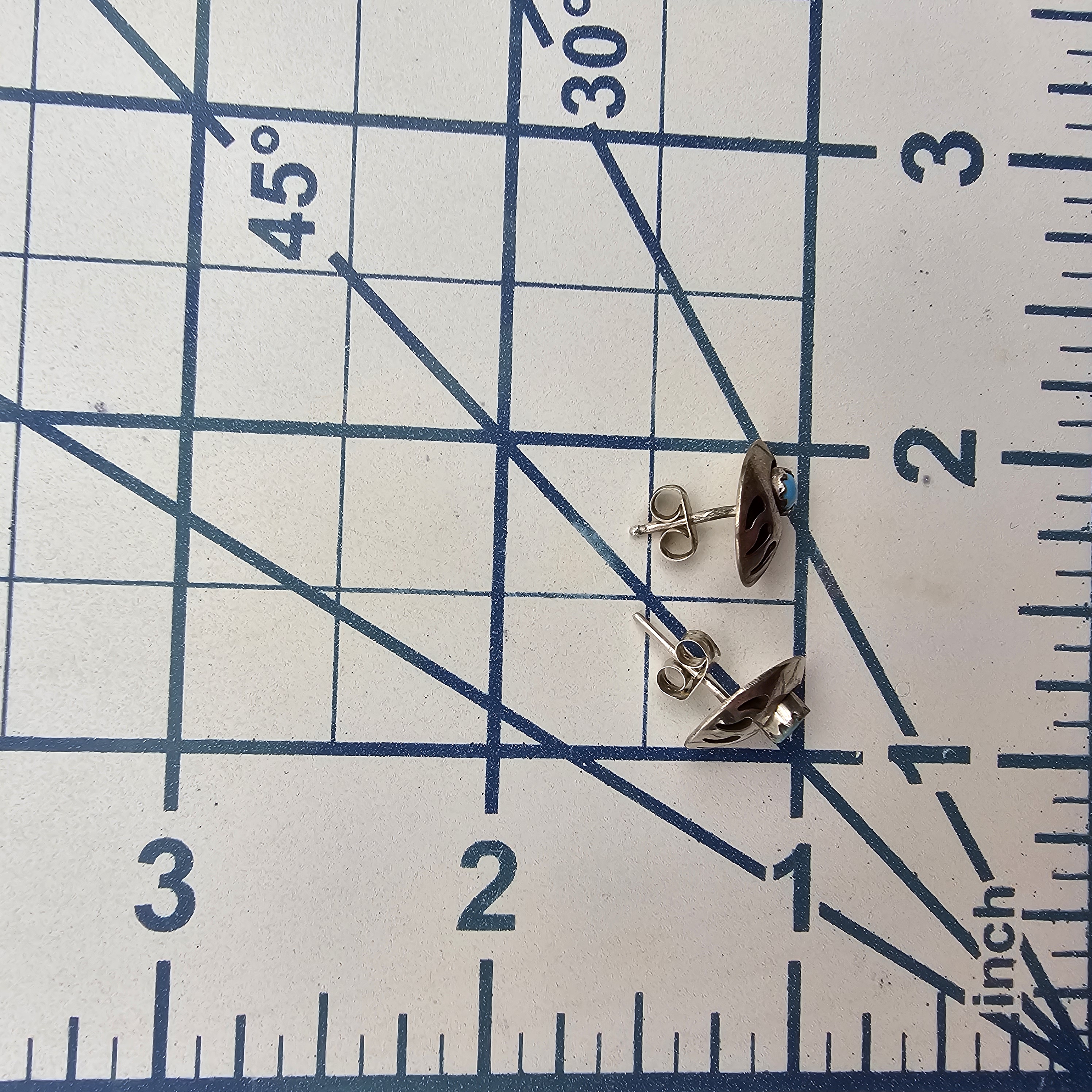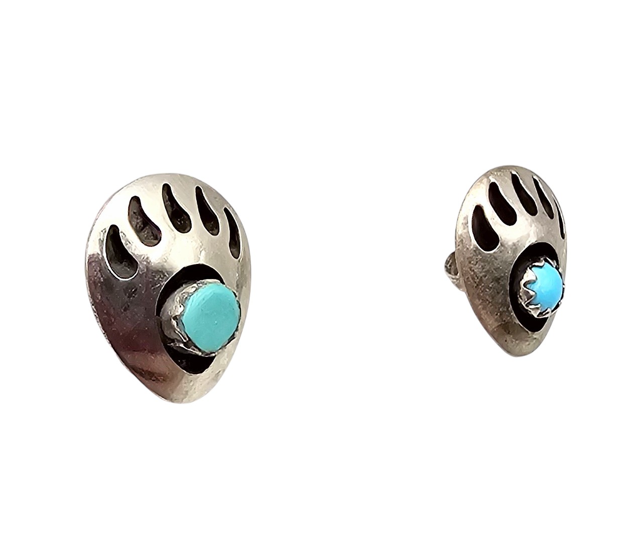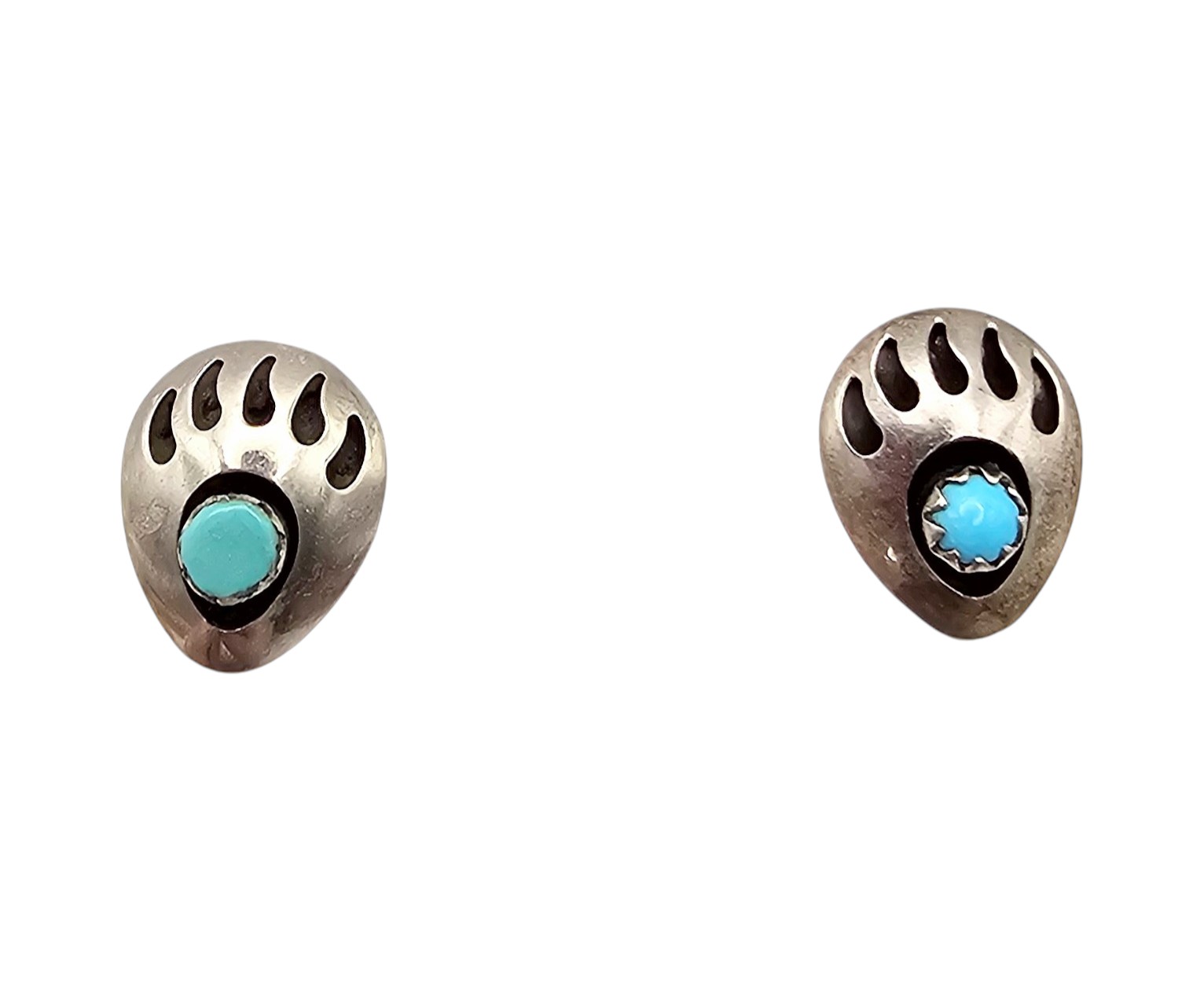 Vintage Navajo Turquoise Sterling Bear Paw Shadow Box Stud Earrings 1.5g