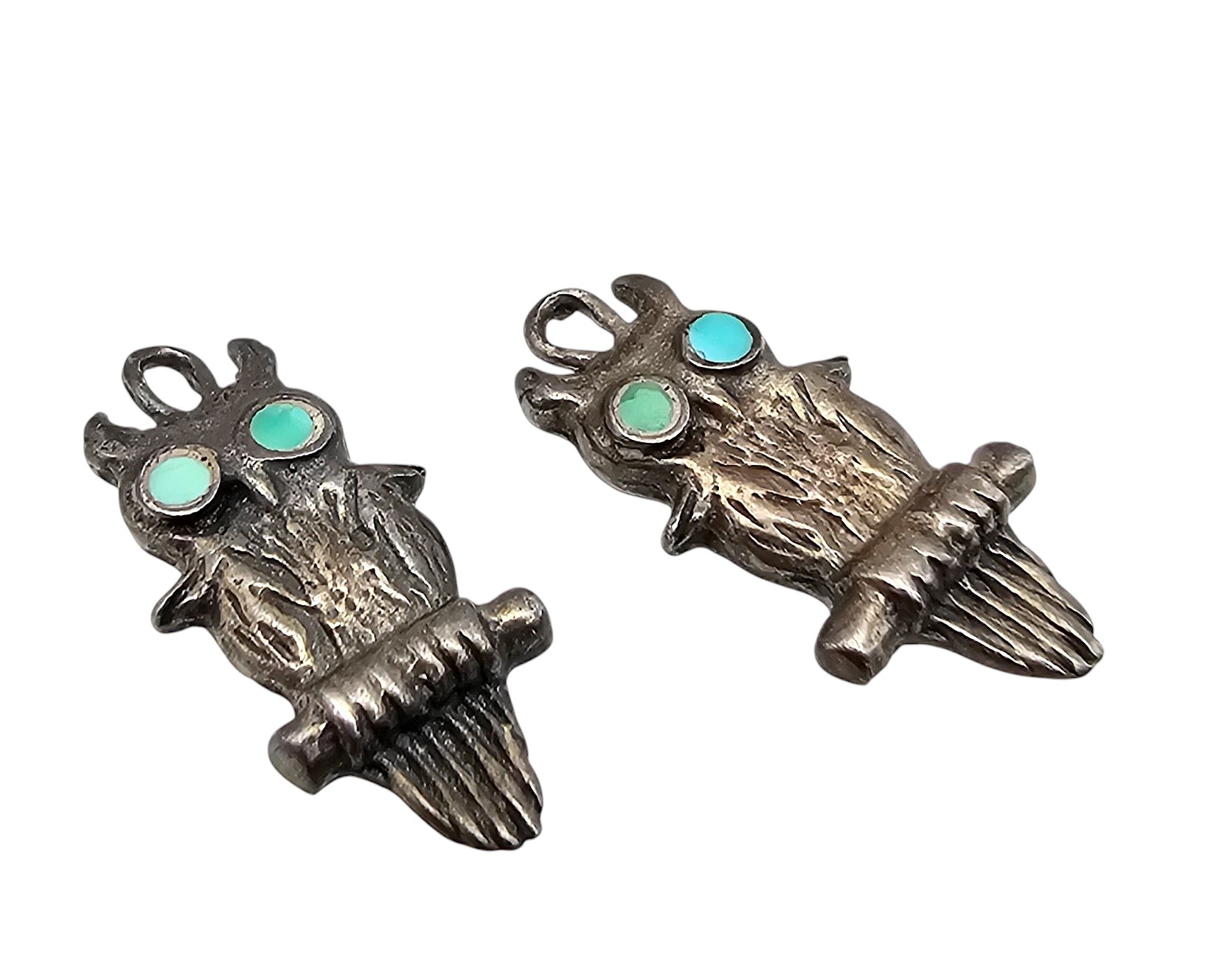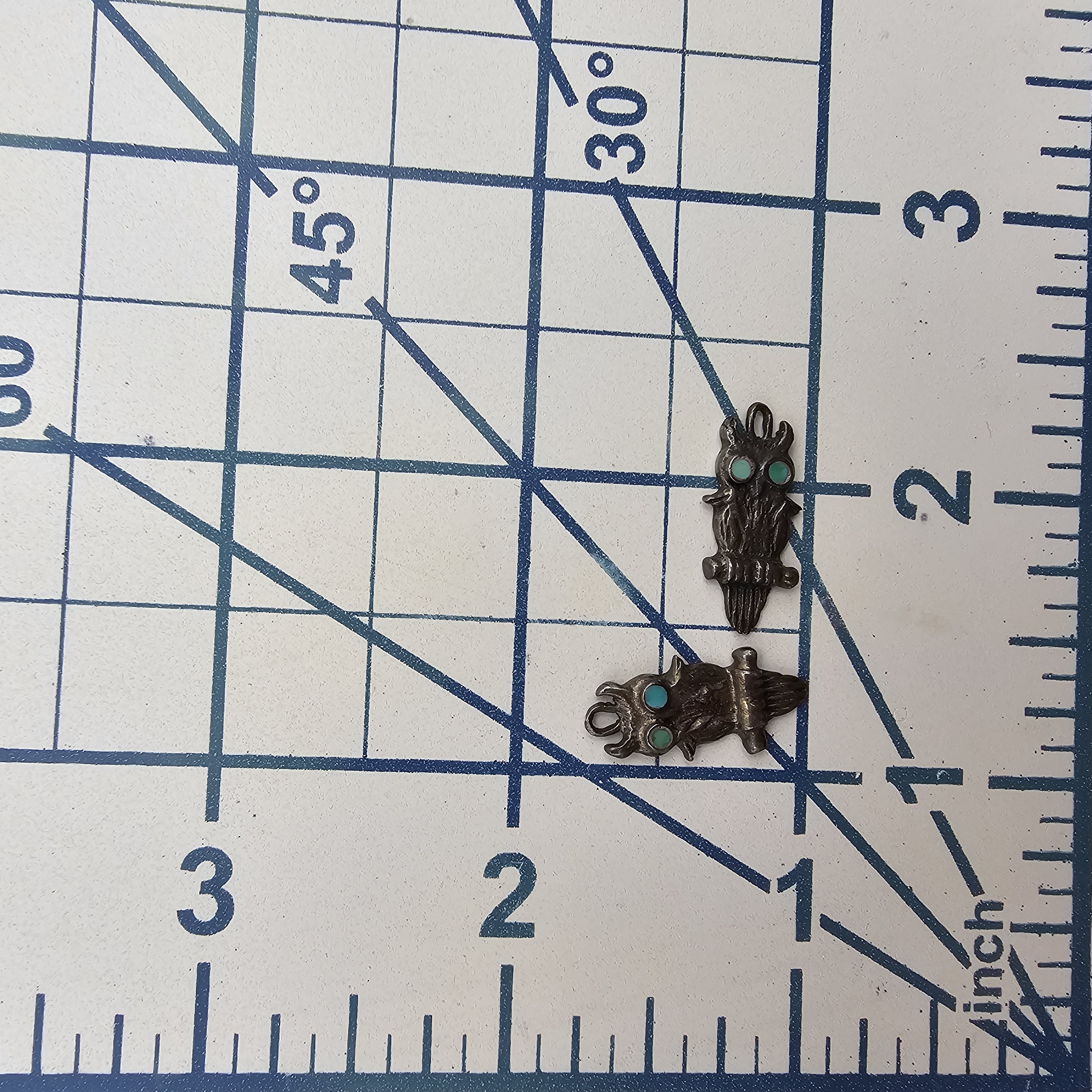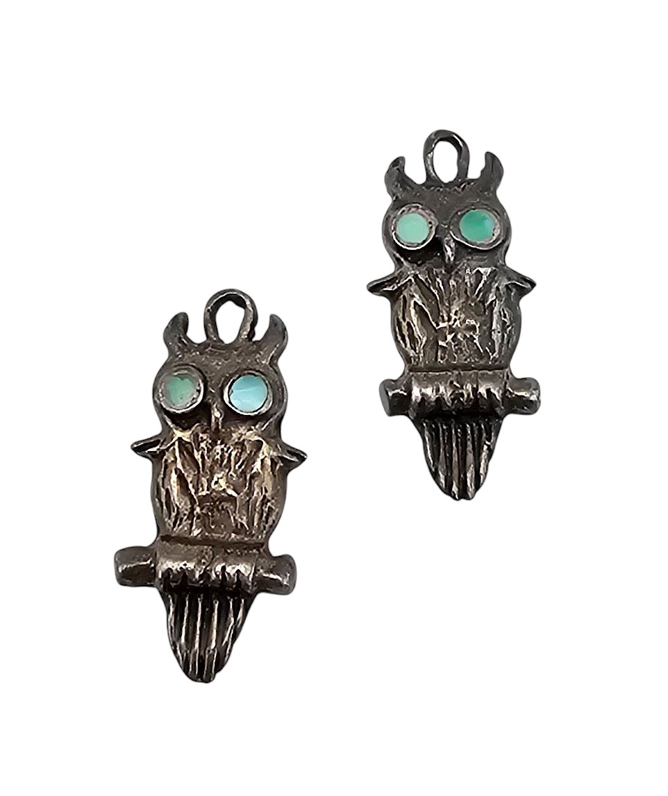 Vintage Zuni Turquoise Sterling Owl Dangle Earrings 3g