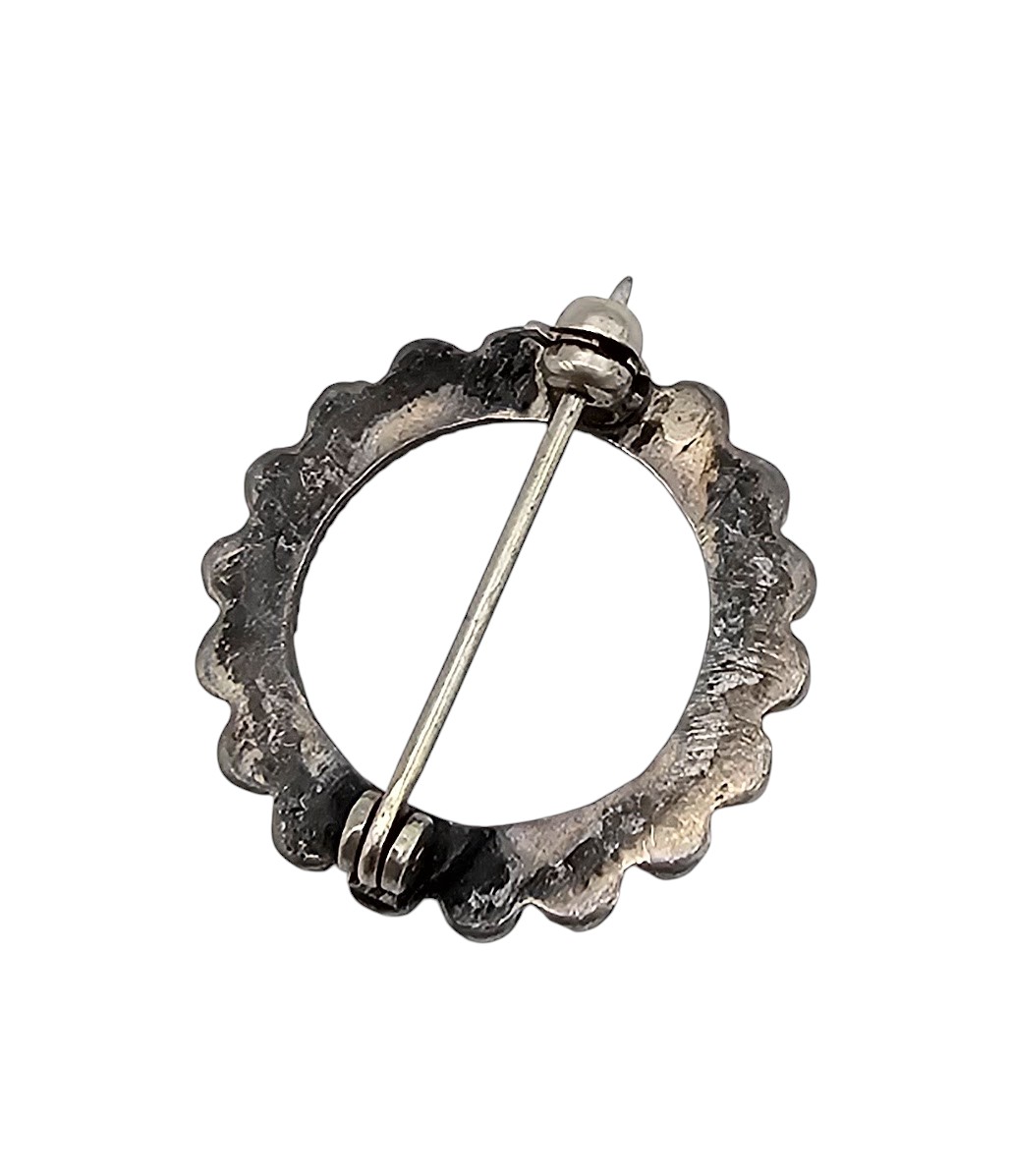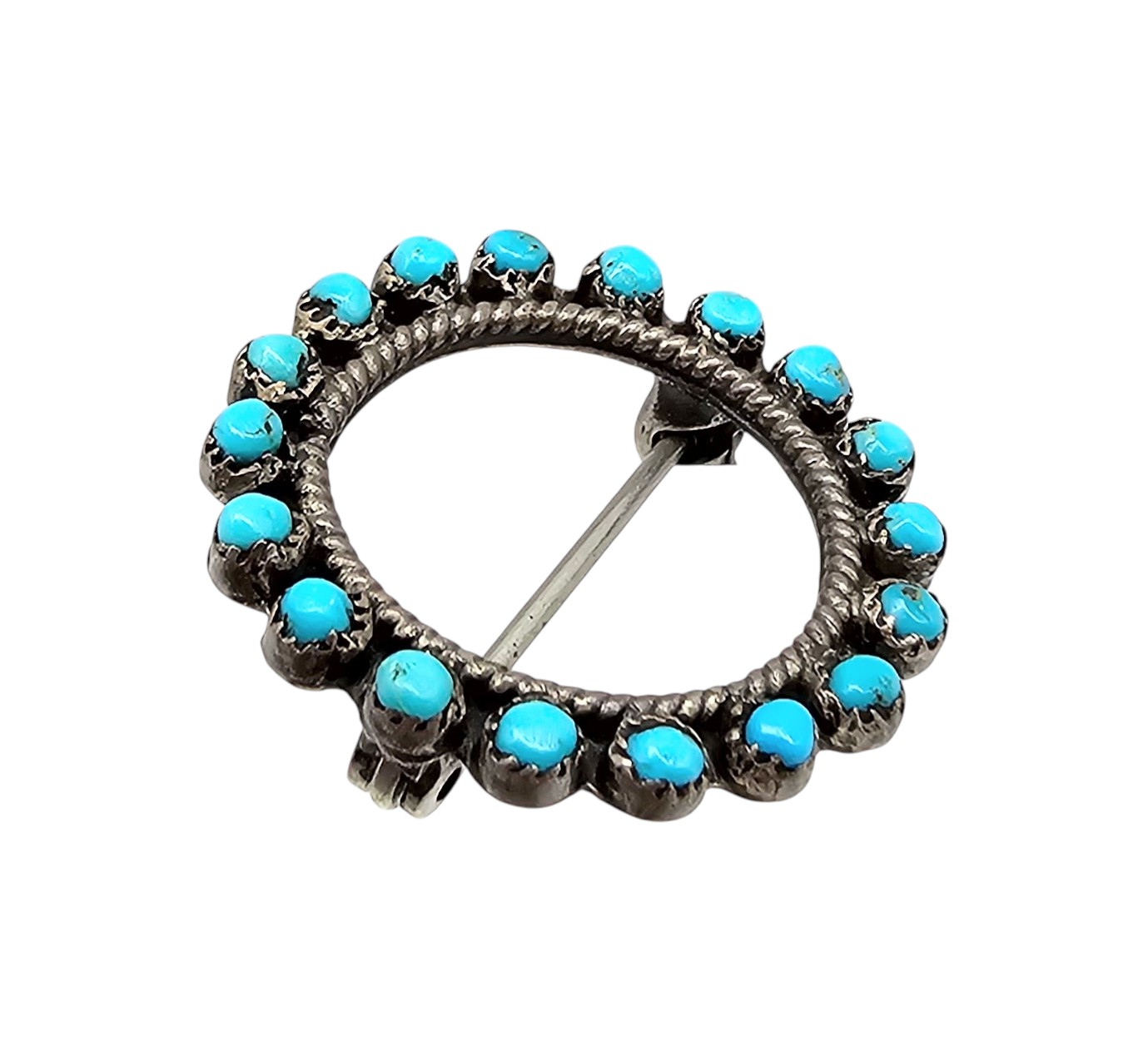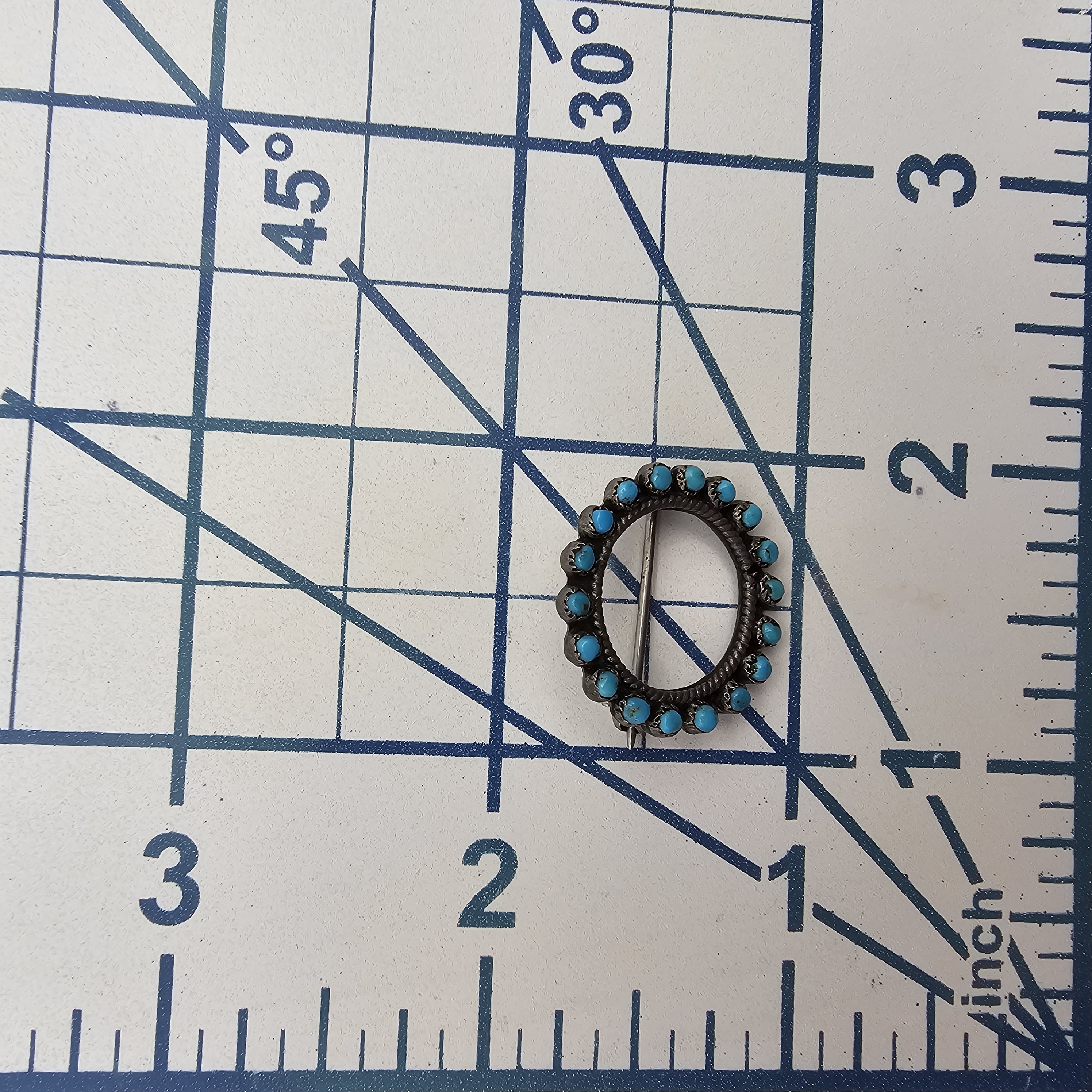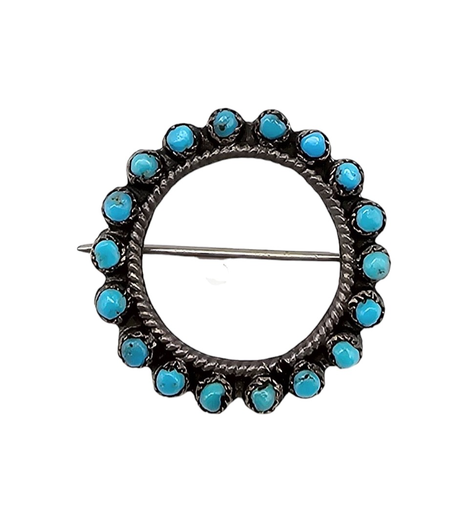 Vintage Zuni Snake Eye Turquoise Sterling Circle Brooch 2g