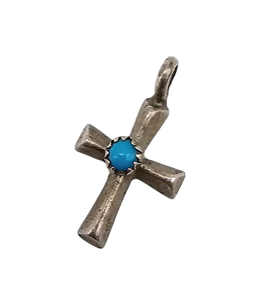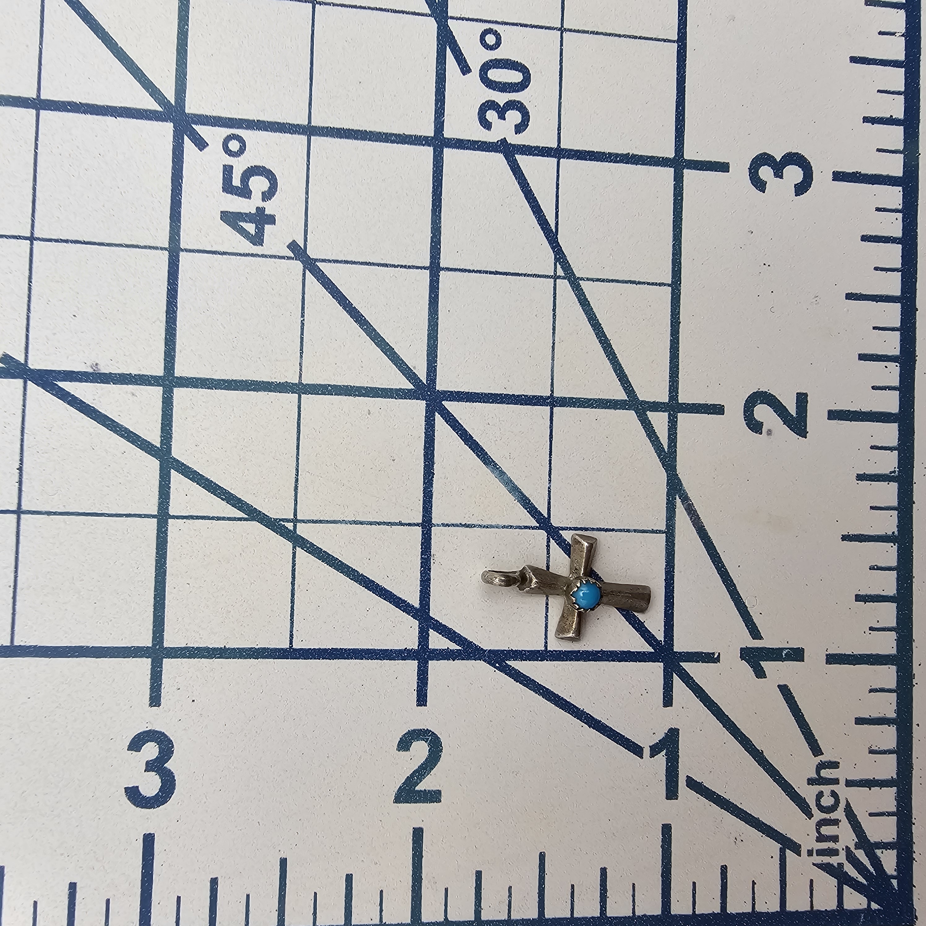 Vintage Navajo Turquoise Sandcast Sterling Cross Pendant 1g