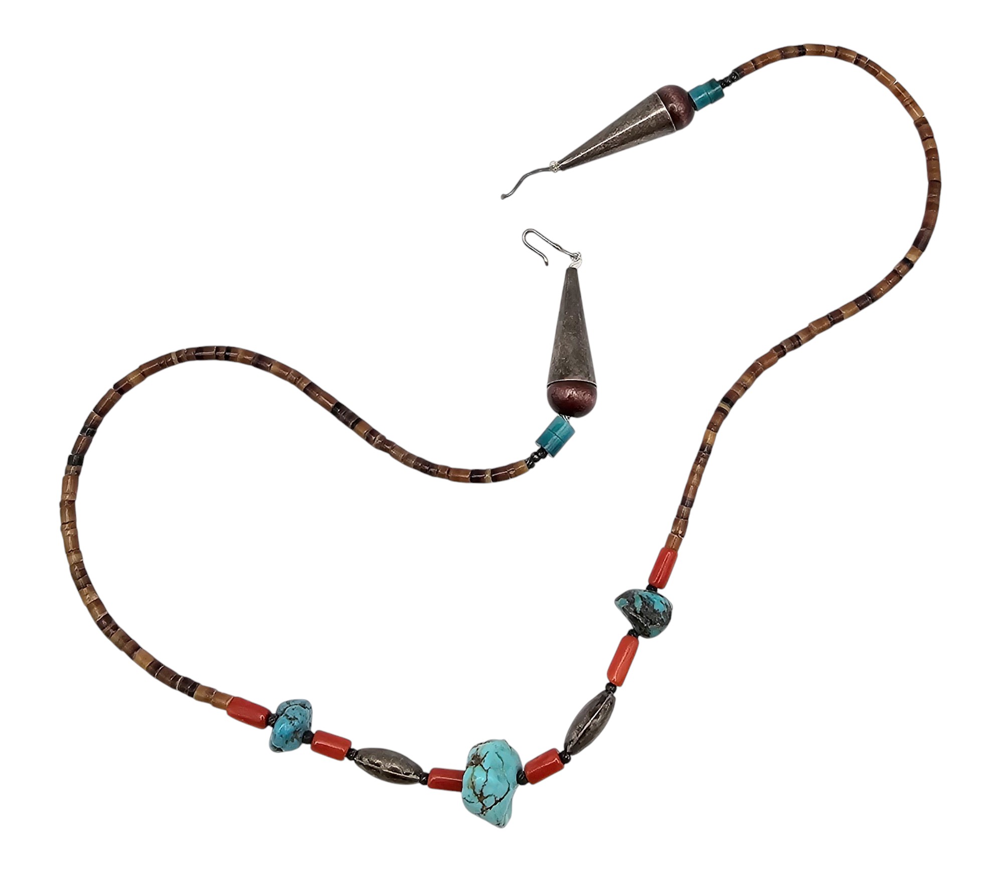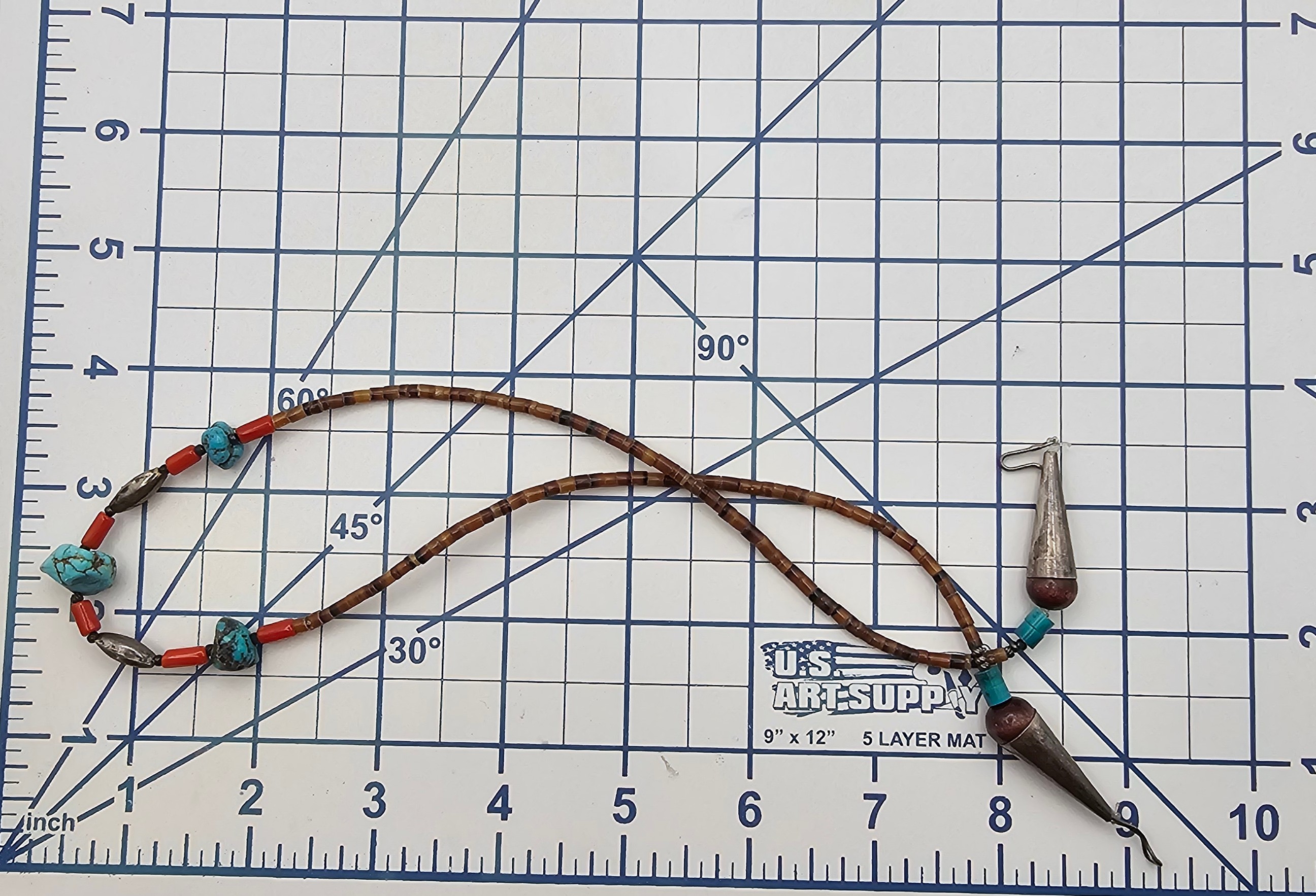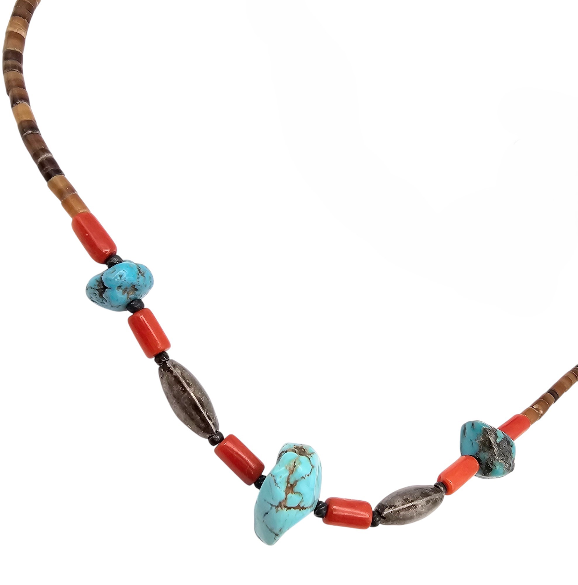 Vintage Santo Domingo Turquoise Coral Sterling Heishi Necklace 16g