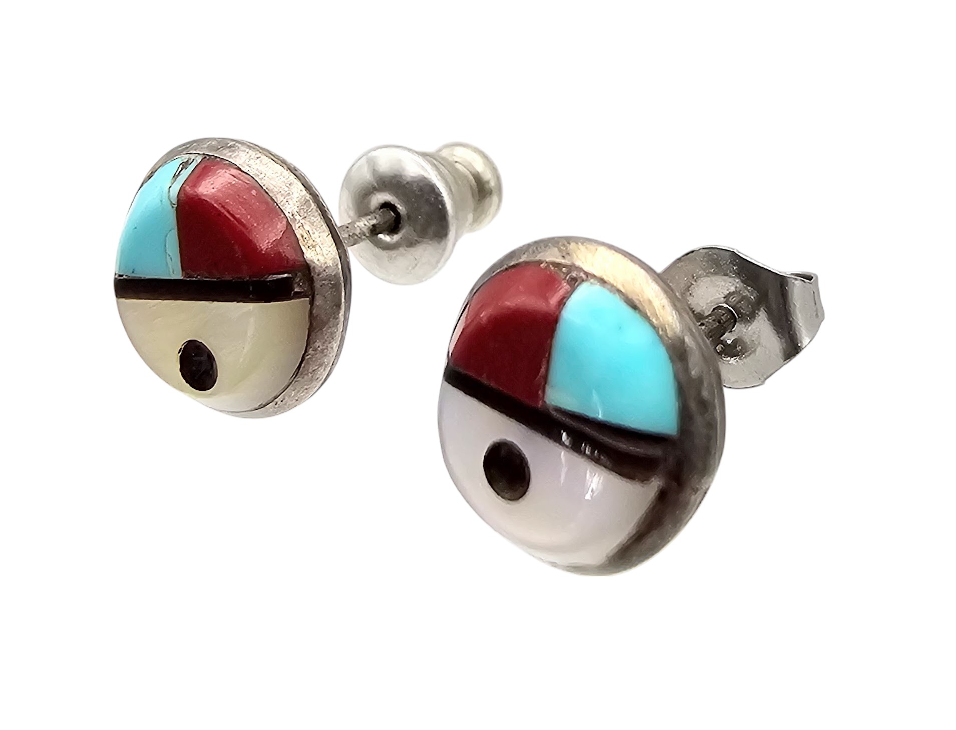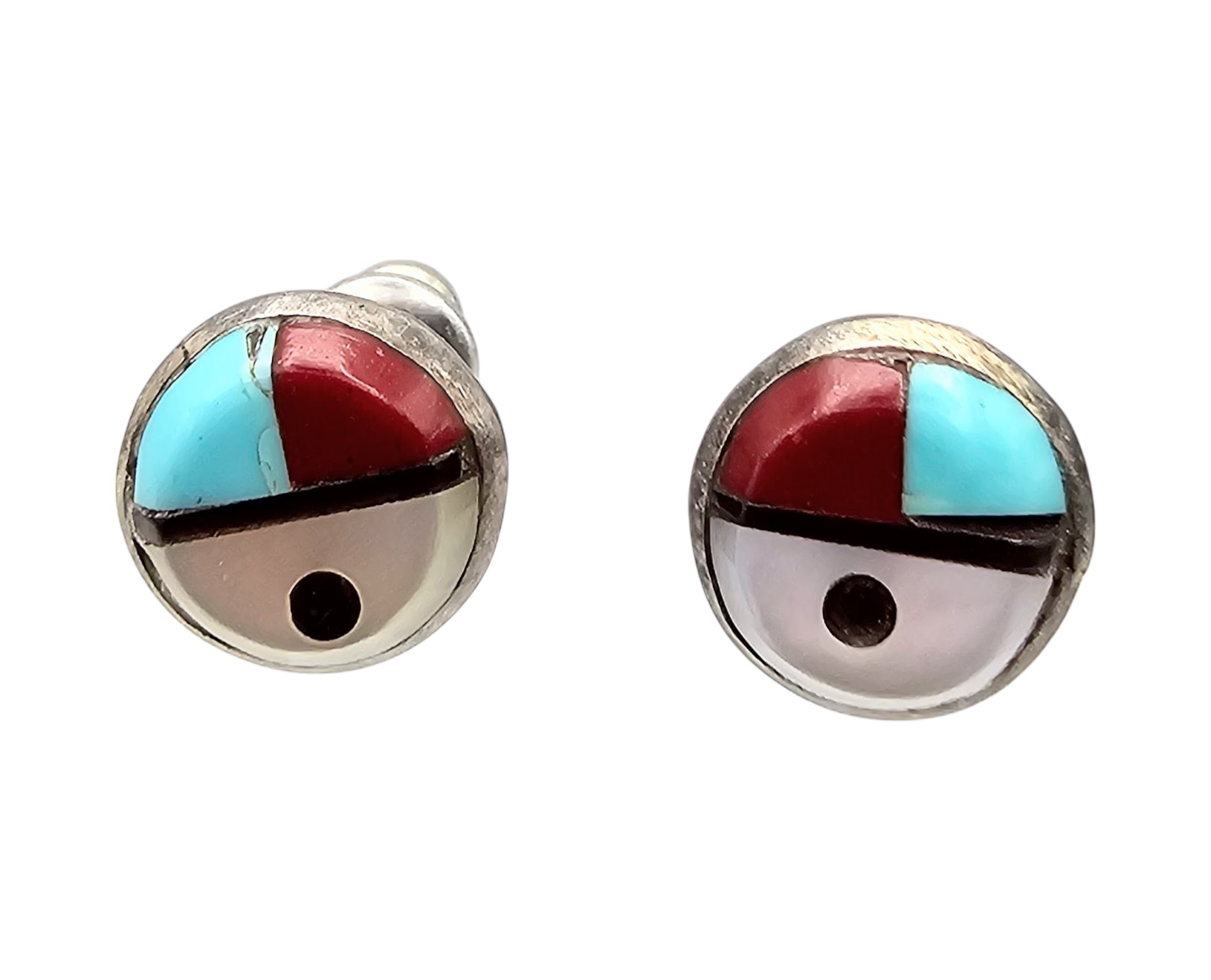 Vintage Zuni Sterling Inlay Sunface Stud Earrings 2g